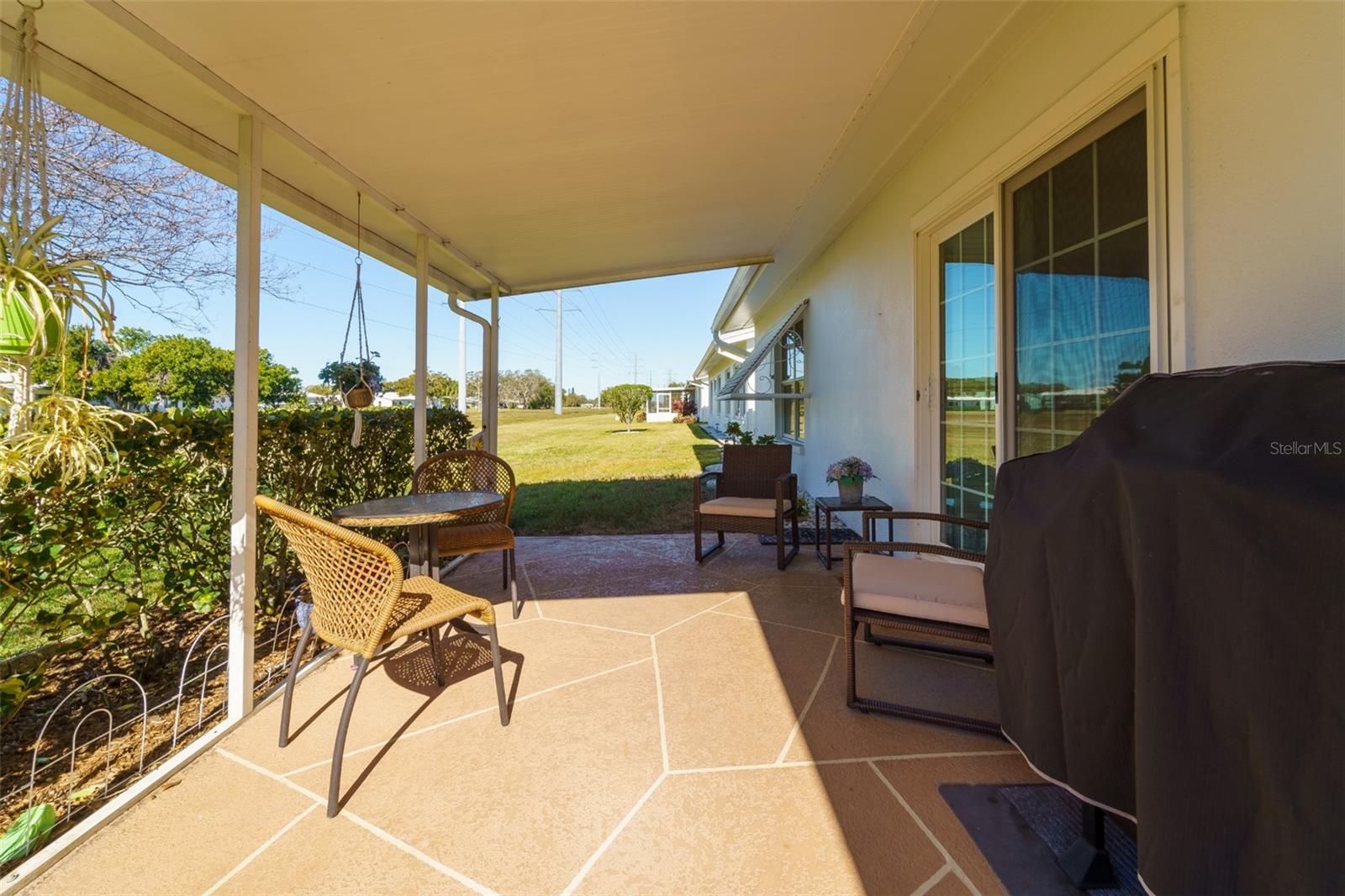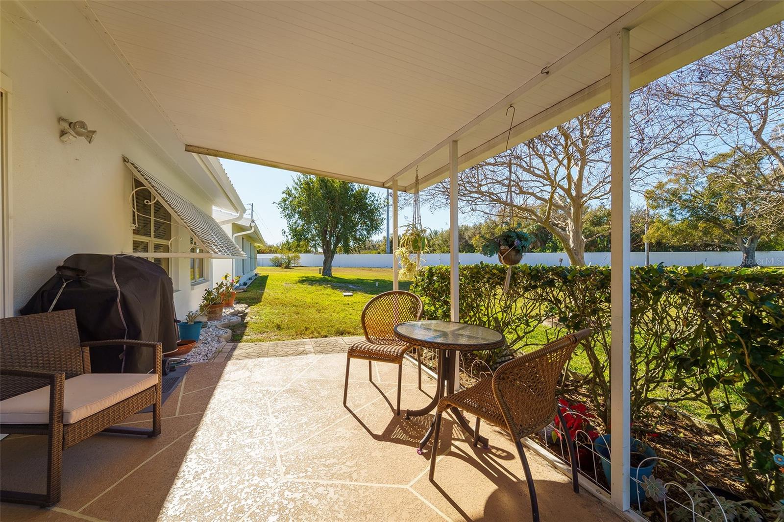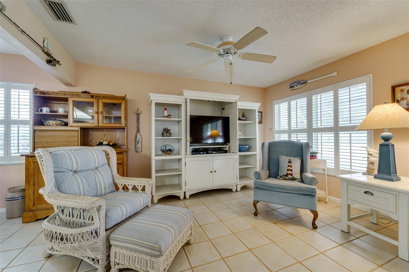 Enjoy relaxed Florida living in this 1794 Sq Ft home in the desirable 55+ Mainlands community. This split floor plan offers open concept living ideal for entertaining, with a welcoming front porch for beautiful sunrises and a covered back patio to enjoy evening sunsets. The eat-in kitchen features stainless steel appliances and opens to a spacious cozy family room. Recent updates include a brand new roof and electrical panel. Eat in kitchen with stainless appliances opens up to the large cozy family room. The oversized 2 car garage provides abundant storage, cabinetry and workbench, plus a separate office space for added flexibility. The spacious primary bedroom includes an en-suite and walk-in closet. Plantation shutters adorn all windows. Enjoy a private backyard setting with no rear neighbors. The low maintenance fee of only $415.00 a month includes cable, internet, lawn care, irrigation system, painting of the home, water, sewer and trash. Centrally located near beaches, airports, interstates, shopping and sports venues.