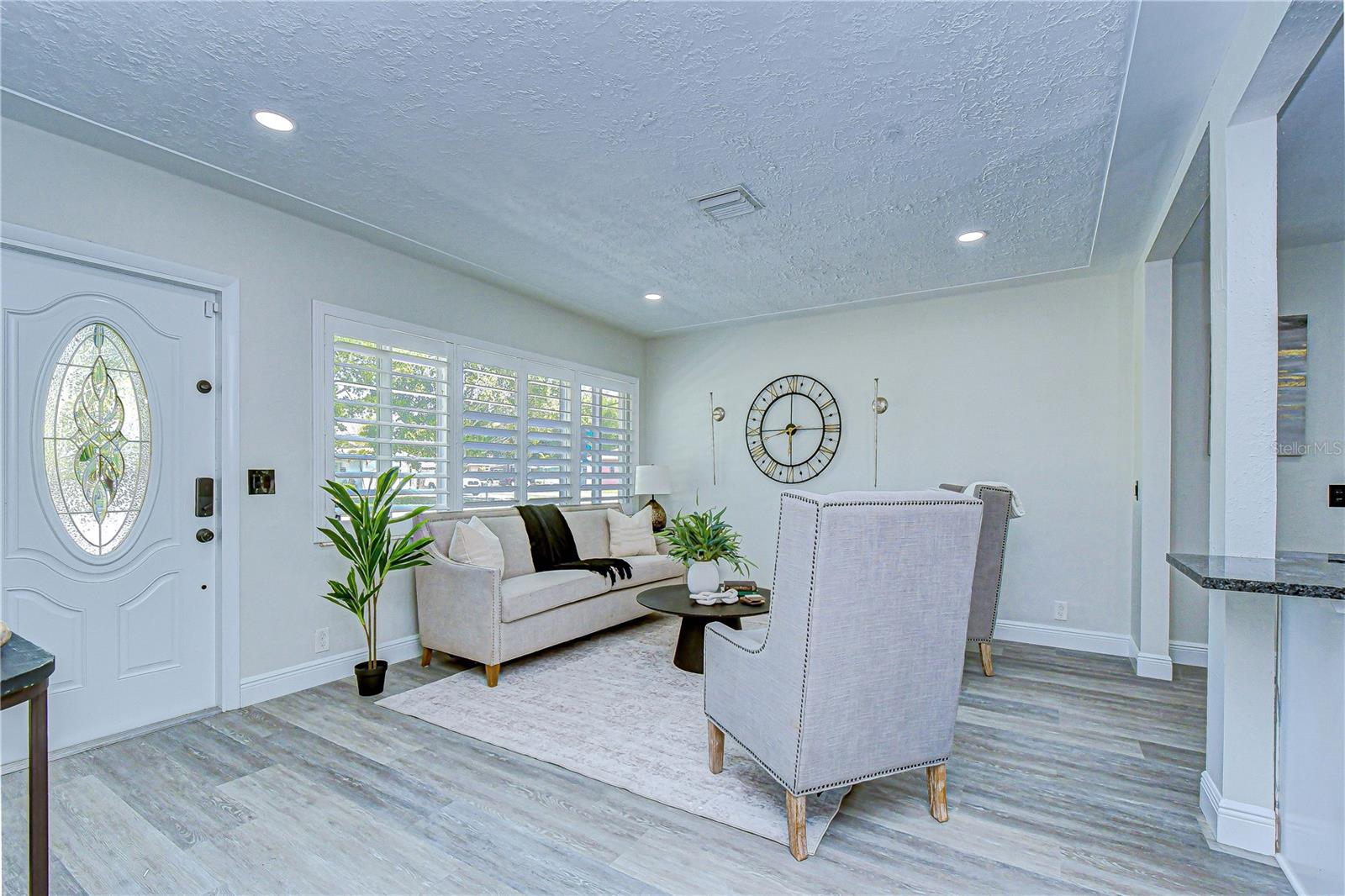 Welcome to a beautifully updated home that seamlessly blends modern style with everyday comfort—while offering the peace of mind today’s buyers are looking for. With a brand-new roof and updated electrical, the major systems have already been taken care of. Inside, you’ll find fresh interior and exterior paint paired with luxury vinyl plank flooring that flows throughout, delivering both durability and a high-end, cohesive look. Elegant plantation shutters add timeless charm, natural light control, and an elevated finish to the living spaces. The newly renovated kitchen is the heart of the home, featuring granite countertops, updated finishes, and a layout designed for both functionality and effortless entertaining. A light-filled sunroom offers the perfect flex space—ideal for relaxing, working from home, or hosting guests year-round. Step outside to a large backyard with endless potential for outdoor living, whether you envision a pool, garden, or entertaining retreat. The spacious shed provides excellent storage or workshop options, and the garage adds everyday convenience. Thoughtfully updated and completely move-in ready, this home delivers the perfect combination of style, space, and confidence for its next owner.