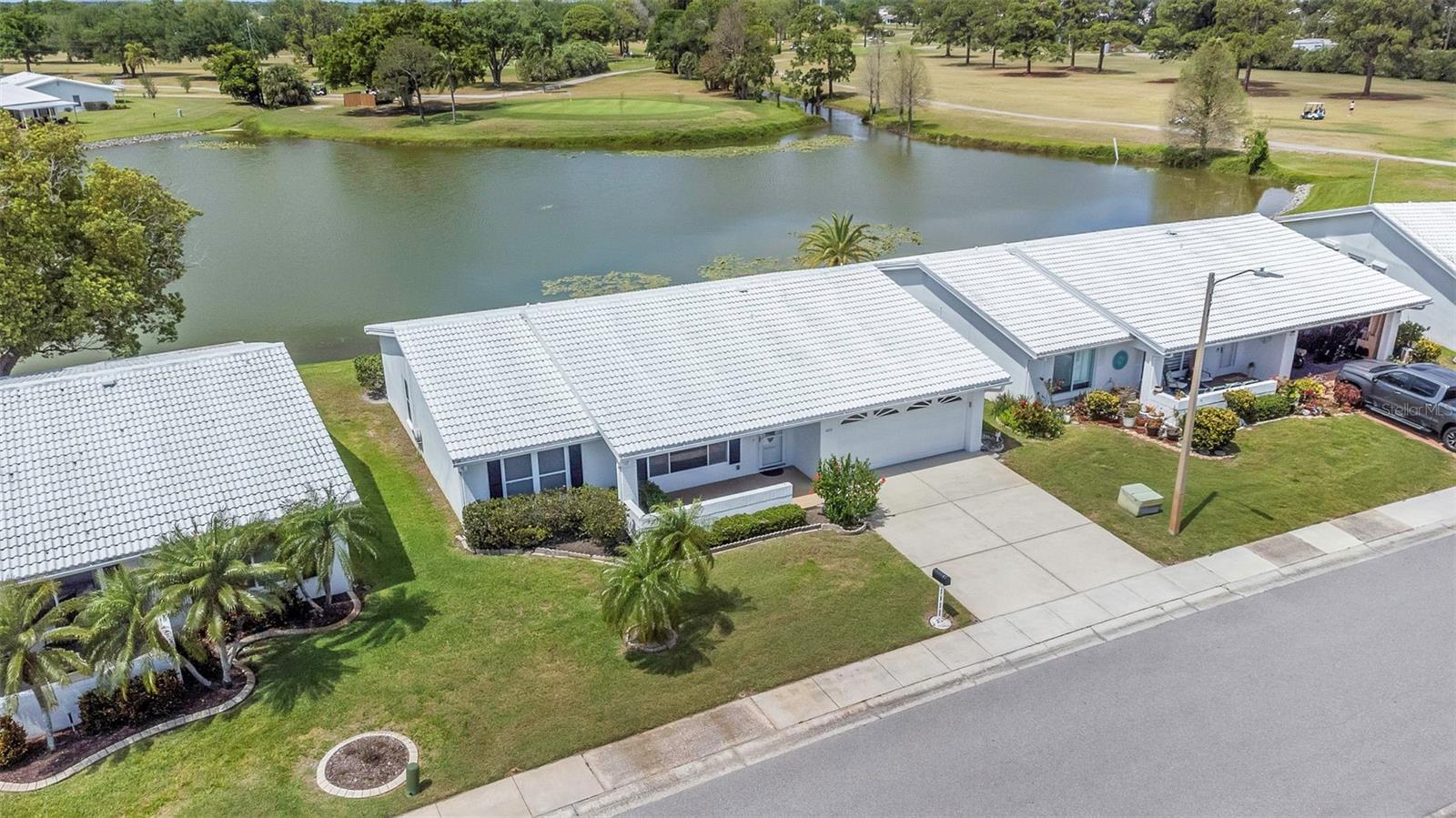 ENJOY ONE-OF-A-KIND WATER & GOLF COURSE VIEWS WITH PICTURE-PERFECT SUNSETS FROM YOUR PATIO!!! Move right into this beautifully updated single-family home located in the highly desirable 55+ active community of The Mainlands. Offering 2 bedrooms, 2 bathrooms, a 2-car garage, and 1,776 sq ft of living space, this solid block-constructed residence combines comfort, quality, and low-maintenance living. Inside, you’ll find an open, light-filled layout enhanced by NEW Traffic Master waterproof vinyl plank flooring (seamless finish), faux wood blinds, and freshly painted walls and woodwork throughout. The upgraded eat-in kitchen features lots of cabinetry for exceptional storage, decorative Formica countertops, and a convenient passthrough window to the oversized Florida Room. Both Bedrooms offer over-sized walk-in closets while both upgraded Bathrooms offer walk-in tiled showers, Shrock wood vanities, decorative Kohler sinks and Moen faucets. Major updates provide peace of mind, including double-paned windows, a 3-ton Rheem heat pump HVAC (9/24), and a 150 Watt Square D electrical panel. The garage is well-equipped with a Samsung washer, LG dryer, 50 gallon Bradford White HWH, a Chamberlain Wi-Fi garage door opener with keypad, a Raynor garage door, pull-down attic ladder for added storage, Plastpro fiberglass side door and Epoxy coated floor. The monthly maintenance fee of $342.59 covers water, sewer, trash, cable (HD box + DVR service), internet (modem and Wi-Fi router), exterior painting, lawn care, and irrigation with reclaimed water—making this an easy, maintenance-free lifestyle. The Mainlands is a vibrant 55+ community offering a clubhouse, heated in-ground pool, shuffleboard courts, and a full calendar of activities. It surrounds an 18-hole public golf course and sits adjacent to Freedom Lake Park, featuring scenic walking paths around 2 lakes, outdoor fitness areas, picnic pavilions, a dog park, playground, sailboat racing and 2 Bocce courts. It is conveniently located near shopping, dining, banking, sporting & cultural venues, medical facilities, airports, major highways, and our renown Gulf beaches! Pet-friendly -2 pets, 35 lb. max are welcome! Enjoy the best of maintenance-free Florida living—schedule your private showing today!