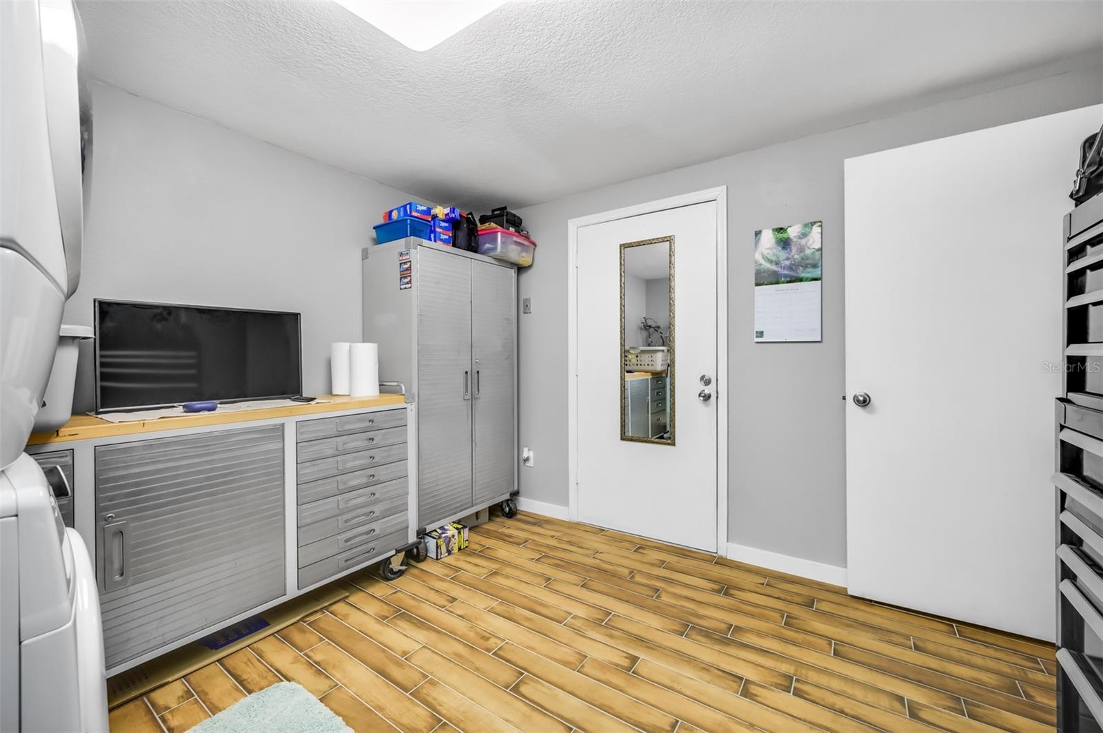 Welcome to your new home. NO DAMAGE during the most recent storms! This home is in one of the best locations in Forest Lakes with an amazingly, serene country view AND it's approved for VA financing! The kitchen features updated wood cabinets, stainless steel appliances and granite counter tops. Main level has wood look tile and the bedroom carpets are 1 year young. Both baths have been tastfully updated. The Kitchen is open to the living room featuring 1 year old skylights and sliding glass doors which out to an open patio/deck with stairs leading to an open greenspace. No condos behind you! The roof was replaced within the past year. Lake Forest is an all age community, is in the heart of Pinellas County's Equestrian area and across the street from Helen Howarth Park. Immediately off the 1 car garage is a largest laundry/storage area you're likely to ever see! Two pets are permissible with no weight restrictions (there are breed restrictions). The maintenance fee includes cable, internet, garbage, water, sewer, trash and much more!