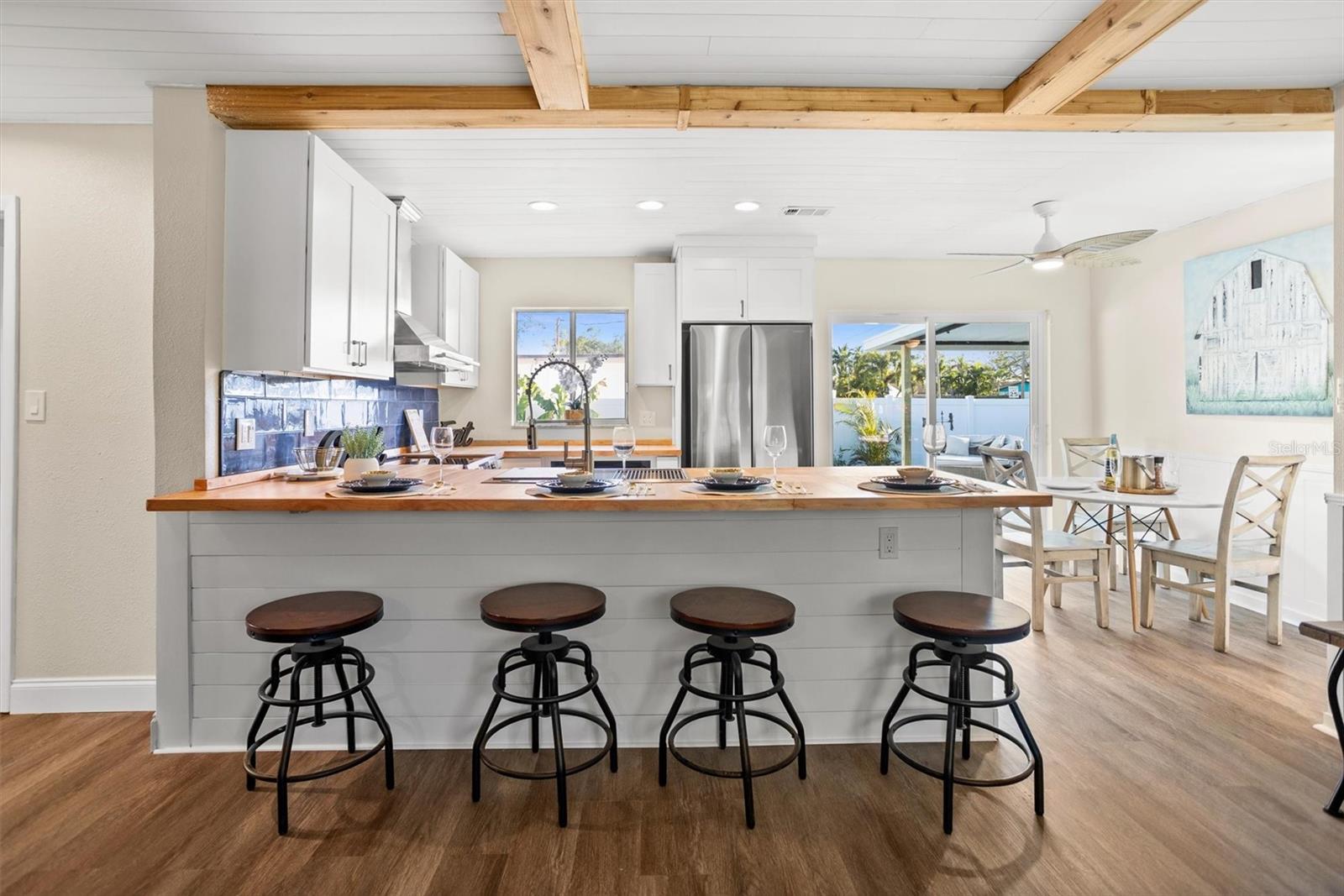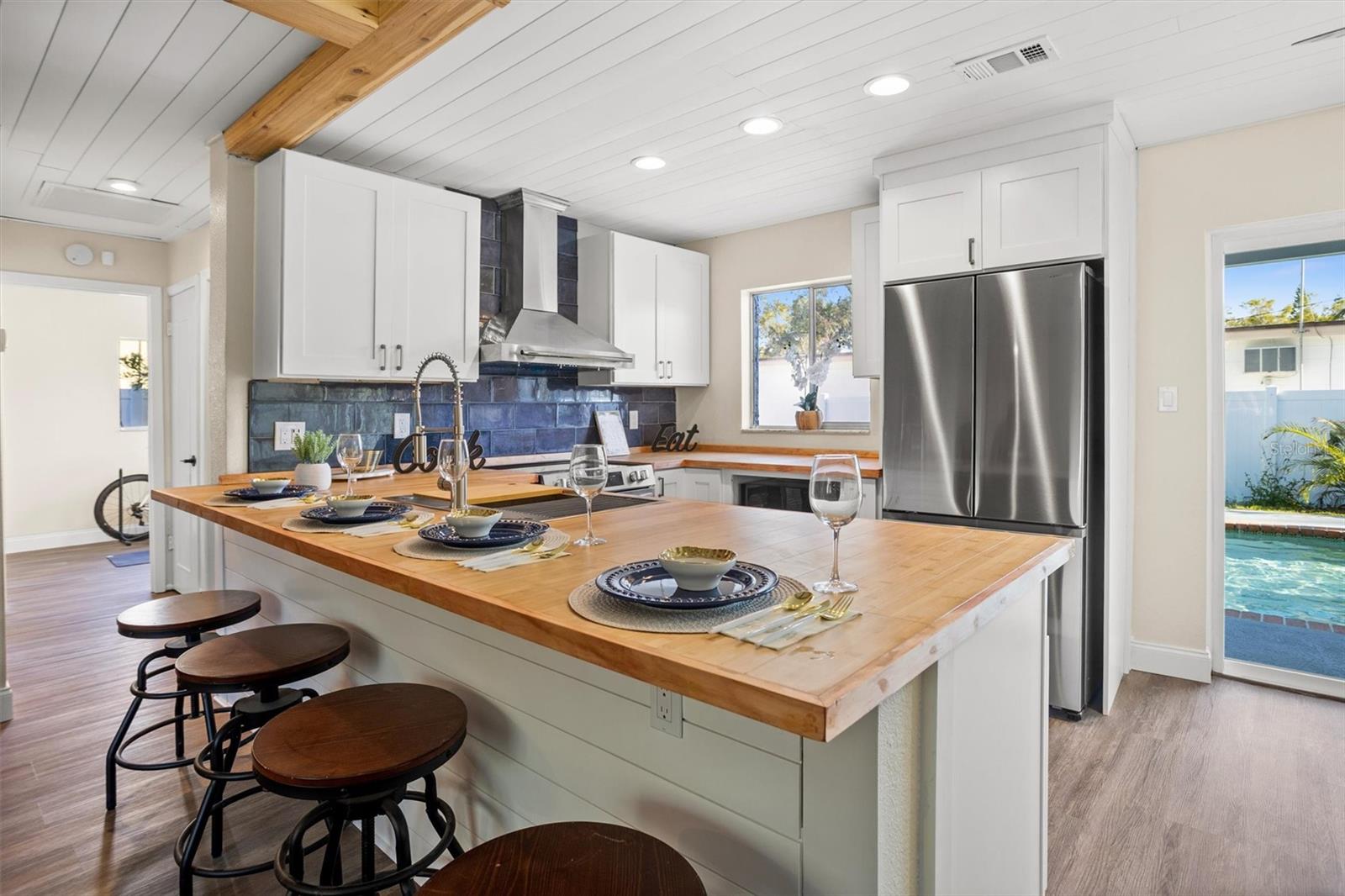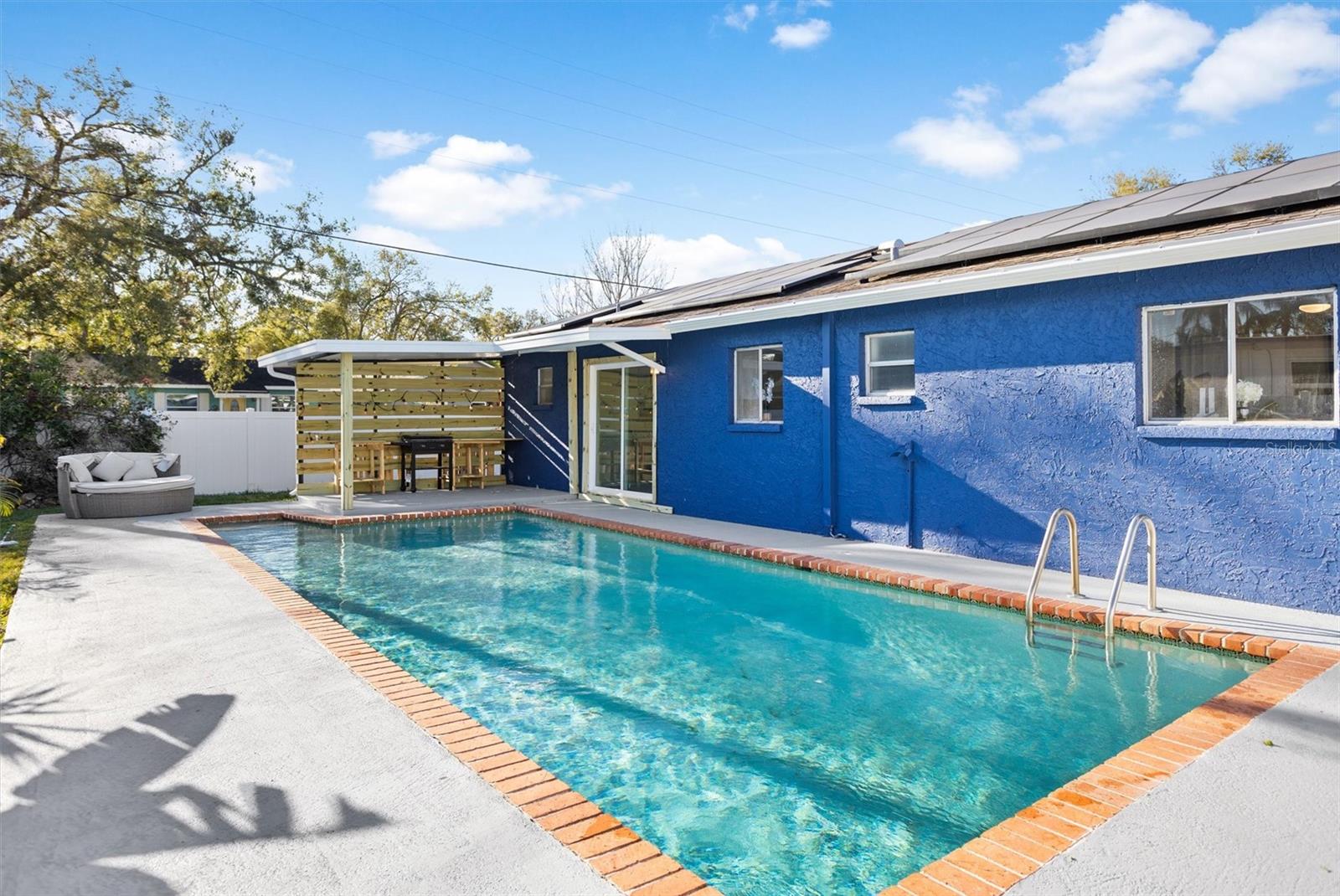 Charming 3-Bed, 2-Bath Pool Home in the Heart of Pinellas Park’s Art District! Welcome to your dream oasis located in the popular Art District of Pinellas Park, Florida! This beautifully remodeled 3-bedroom, 2-bathroom home is perfect for those who appreciate modern living with a touch of tropical flair. This home has been completely updated with brand new appliances and fixtures, new paint, new bathrooms, new luxury vinyl flooring and so much more, ensuring a contemporary and stylish ambiance throughout. Cook in luxury in the brand new spacious kitchen, featuring modern appliances, ample counter space, and beautiful cabinetry designed for culinary enthusiasts. Dive into relaxation in your very own private pool, surrounded by lush landscaping, perfect for entertaining or unwinding after a long day. Enjoy a tropical vibe right in your backyard with a stylish tiki bar—ideal for hosting gatherings or enjoying a quiet evening under the stars. Added features include energy-efficient solar panels to help reduce your utility costs while providing sustainable living options for the eco-conscious homeowner, as well as a two car garage and large driveway, providing ample storage and parking; even big enough to park a boat! Enjoy added privacy and space with this corner lot that offers plenty of outdoor room for gardening or leisure activities. Just a short drive to the beautiful Gulf Coast beaches, and just off the interstate for easy access to downtown St Pete or East to downtown Tampa, this home really is in such a convenient location! Don’t miss the chance to own this stunning home in a vibrant and artistic community! With no CDD fees and no HOA, keep more of your hard earned money and forgo the burdensome restrictions. Schedule a viewing today and experience all that this beautiful property has to showcase!
