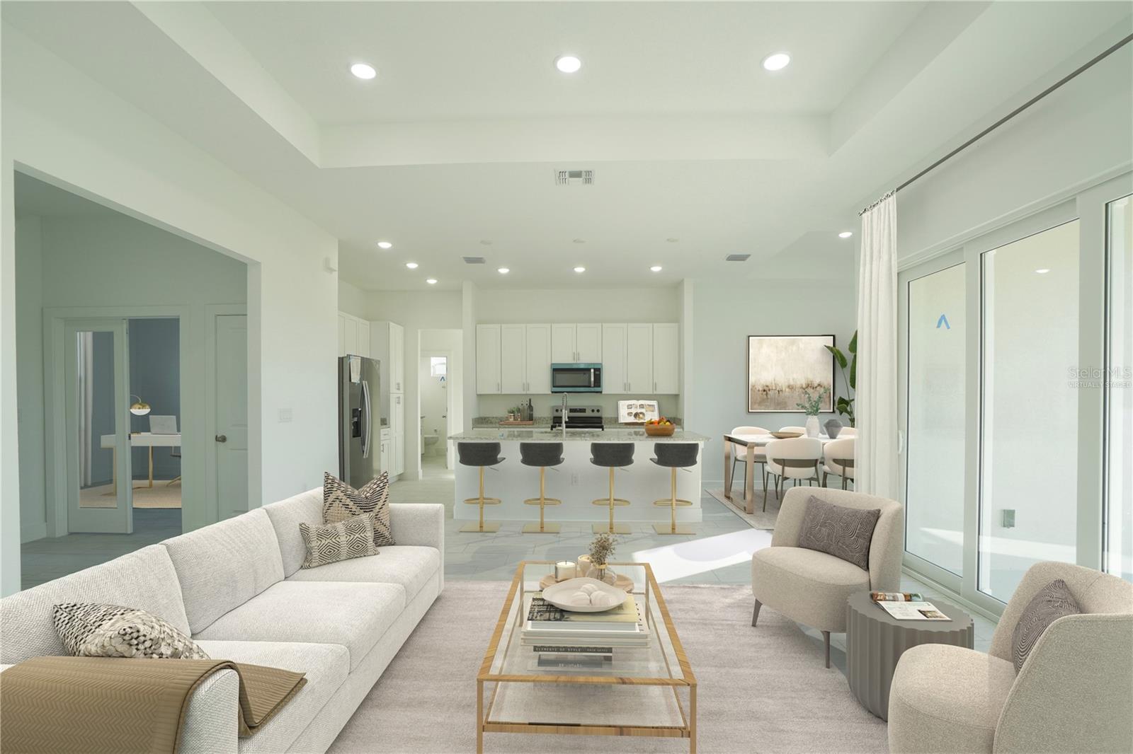 One or more photo(s) has been virtually staged. Welcome to your bright and airy dream home, filled with sunshine and warmth! This beautiful home features three grand bedrooms and a spacious office, perfect for work or an extra relaxation space. With two full baths, mornings will be easy and stress-free for everyone. As you walk through the foyer, you’ll be welcomed by an open living area with 10-foot heigh ceilings, making the space feel even larger and more hospitable. The kitchen offers plenty of storage cabinets and beautiful granite countertops, along with all the essential appliances needed. Imagine sipping your morning coffee in the lovely coffee nook right next to the refrigerator. The laundry room includes handy cabinets to keep everything tidy, and easy-to-clean tiles flow throughout the home. Impact windows ensure your comfort and safety. The master bath is a peaceful escape, featuring a stunning stand-alone tub, perfect for relaxing after a long day. Upgraded ceiling trays in the master bedroom and dining room add a touch of elegance to this wonderful home. The front of the house is beautifully enhanced with lovely accent rocks, adding to its charm. Situated on a quiet street surrounded by new homes, this house is just a short drive from the best beaches along the Gulf of America. Enjoy the Florida lifestyle, where sunshine, great weather, and fun activities like fishing, kayaking, and boating are all at your fingertips. This is more than just a house; it’s your new home sweet home!