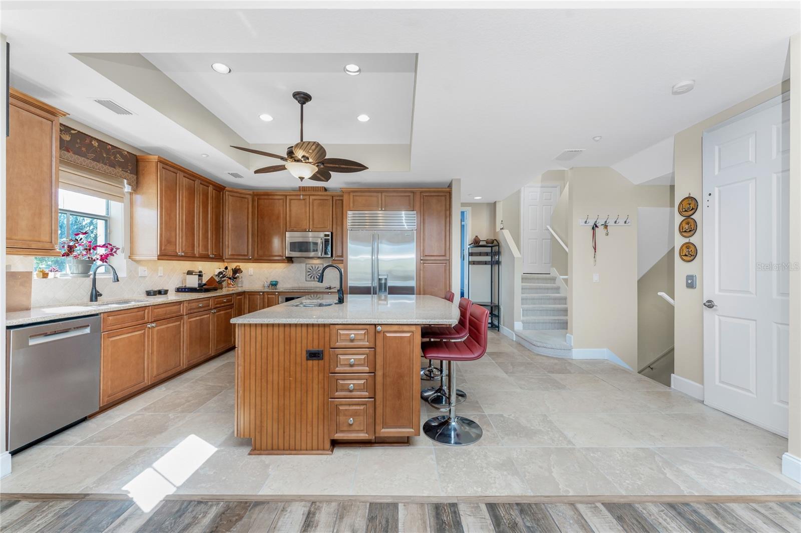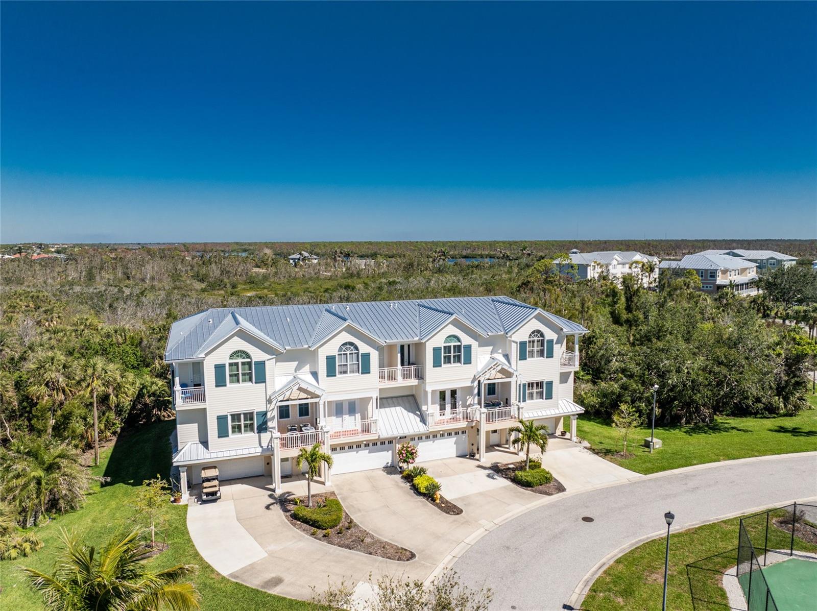 Welcome to The Landings at Coral Creek! This highly desirable, rare corner unit boasts 3 bedrooms and 3 bathrooms, including two master suites, each with its own private balcony. The private elevator provides seamless access to all three floors, starting from your massive three-car garage. Spanning an expansive 2,400 sq. ft. of impeccably maintained living space, this barely lived in townhome is filled with high end finishes and stunning details. The brand new 2023 metal roof, 2021 water heater, and 2017 AC provide peace of mind, while elegant crown molding enhances the spacious living room. The chef’s dream kitchen features a top of the line Sub-Zero refrigerator, sleek stainless steel appliances, walnut cabinetry, gleaming granite countertops, and an abundance of storage space. It also includes two sinks, both equipped with garbage disposals offering ultimate convenience for meal prep and cleanup. Custom Hunter Douglas window coverings adorn the main floors, and the corner unit design allows for additional windows, flooding the space with natural light and offering breathtaking views of the serene preserve from two private balconies. The master suite is a retreat with a massive walk-in closet, private lanai, dual-sink granite vanity, luxurious garden tub, and a separate walk-in shower. Secondary bedrooms also feature walk-in closets, and all bathrooms are upgraded with wood cabinetry and granite finishes. Nestled in the exclusive gated community of The Landings at Coral Creek, residents enjoy access to a heated pool and spa, a clubhouse with a fireplace, tennis courts, and more. Located just minutes from pristine beaches and the world renowned tarpon fishing of Boca Grande, this is Florida luxury living at its finest!