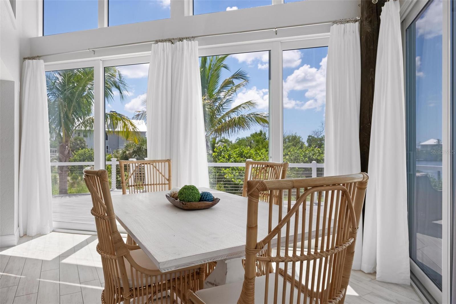 Welcome to Palm Island - Where Old Florida Charm Meets Waterfront Elegance. Discover a timeless coastal haven on Palm Island, where the gentle rhythm of the waves and the salty breeze create a serene backdrop for everyday living. This fully furnished elevated retreat captures the essence of the Florida lifestyle with quiet, shell-lined beaches, abundant wildlife, world-class fishing, and direct boating access from your private dock, featuring a 10,000-pound lift and a cozy seating area just outside your back door. With no bridges between you and the Intracoastal Waterway or the Gulf of Mexico, your boating adventures begin effortlessly. Inside, the home offers 3 spacious bedrooms, 3 full baths, and a versatile loft ideal for a home office or den. The downstairs guest suite includes a private ensuite bath, while the second level reveals a sunlit loft with sweeping water views. The primary suite is a tranquil retreat with its own generous bath, and an additional guest bedroom is conveniently located near a full bath. Step outside to the expansive lanai, where multiple seating areas and umbrellas invite you to relax and take in the breathtaking vistas of historic Bocilla Pass. Vaulted ceilings with exposed beams and floor-to-ceiling glass doors fill the open-concept living space with natural light, creating a seamless indoor-outdoor flow perfect for entertaining or quiet reflection. Below the home, a shaded gathering space offers yet another venue for hosting friends and family. With impact-resistant glass, hurricane shutters, and a host of thoughtful upgrades, including a new metal roof installed in 2021, this home blends durability with coastal sophistication.