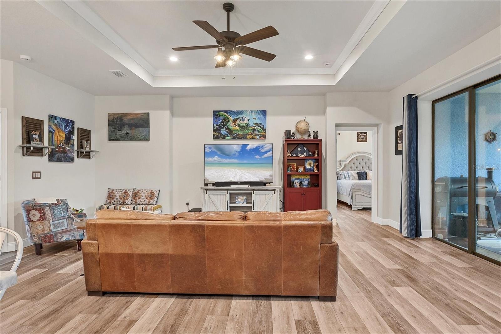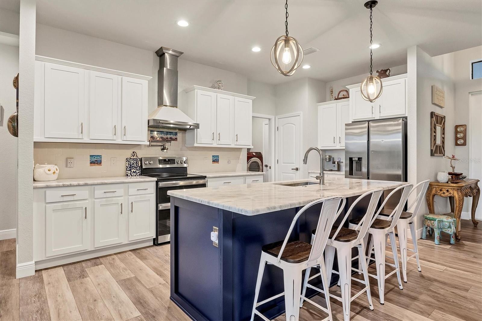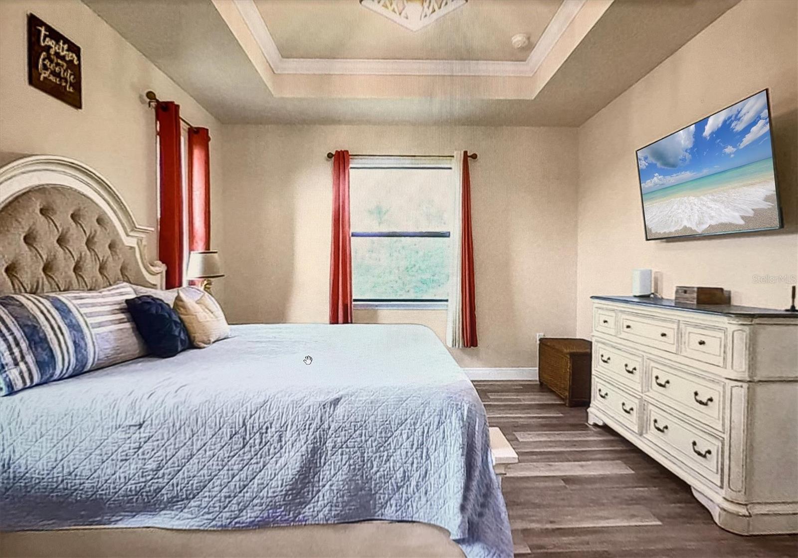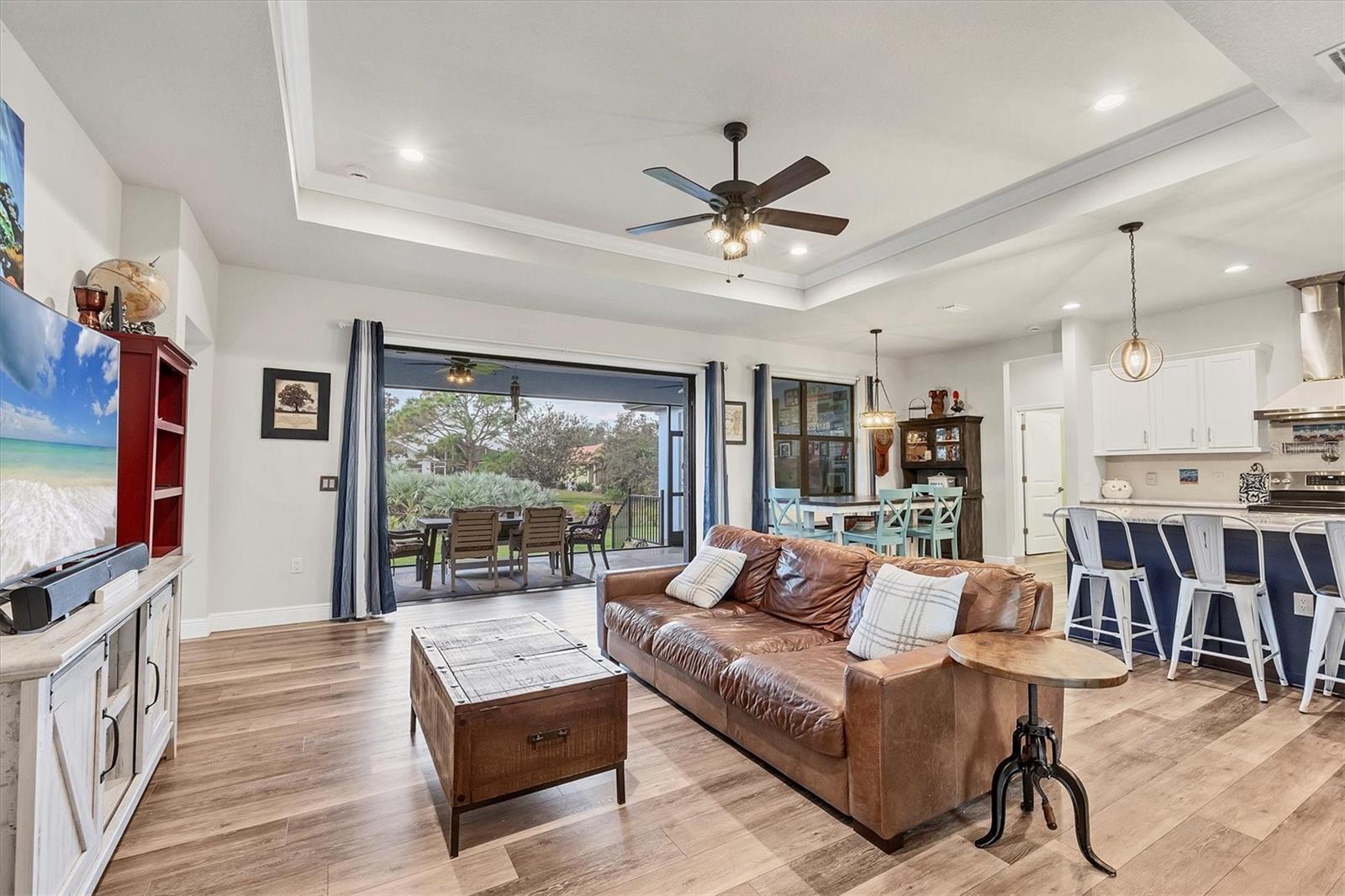 Sellers just approved a New Price Improvement on this beautiful Home! Welcome to this exceptional, newly constructed 4 Bedroom home in the highly sought-after Cape Haze Windward community! With a focus on luxury, comfort, and functionality, this property is packed with impressive upgrades and custom details. As you enter, you'll be greeted by luxury vinyl flooring throughout, ensuring both style and durability. The home boasts coffered ceilings in the primary bedroom and living room, adding an elegant touch to the spacious living areas. Upgraded lighting fixtures throughout illuminate every room, creating a warm and inviting atmosphere. The heart of the home is the chef-inspired kitchen, featuring stainless steel appliances, including a double convection oven and deluxe range hood. The hand-painted accent tiles in the backsplash bring a unique charm to the space, while soft-close cabinets and doors add an extra layer of convenience and refinement. A stainless farmhouse sink and upgraded granite countertops complete this beautiful kitchen, offering both style and functionality. The master bath features a curbless shower, providing a sleek, modern aesthetic, along with added accessibility. Additional luxury touches include an upgraded 50-gallon quick-fill water heater for continuous comfort, polycarbonate hurricane shutters for peace of mind, and built-in Ring security cameras for enhanced security. The lanai is perfect for relaxing or entertaining, with an infinity screen offering an unobstructed view of the lush surroundings. This home truly has it all: comfort, elegance, and modern amenities. Don’t miss the opportunity to call this gorgeous property yours. Schedule a showing today and experience the lifestyle that awaits at 4220 Cape Haze Drive!
