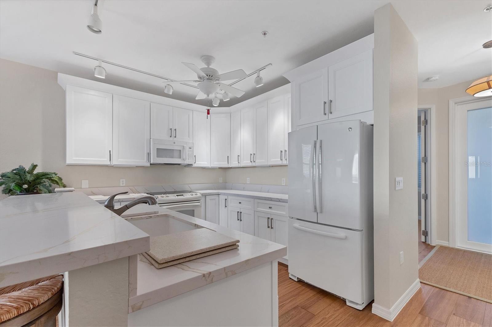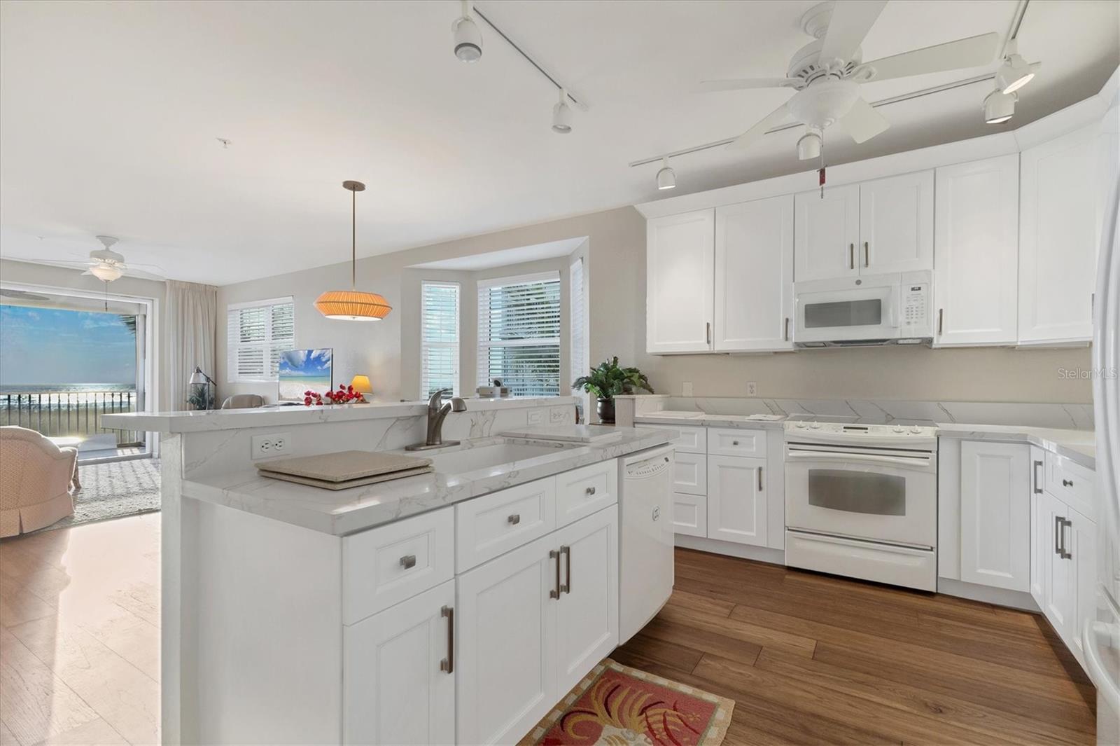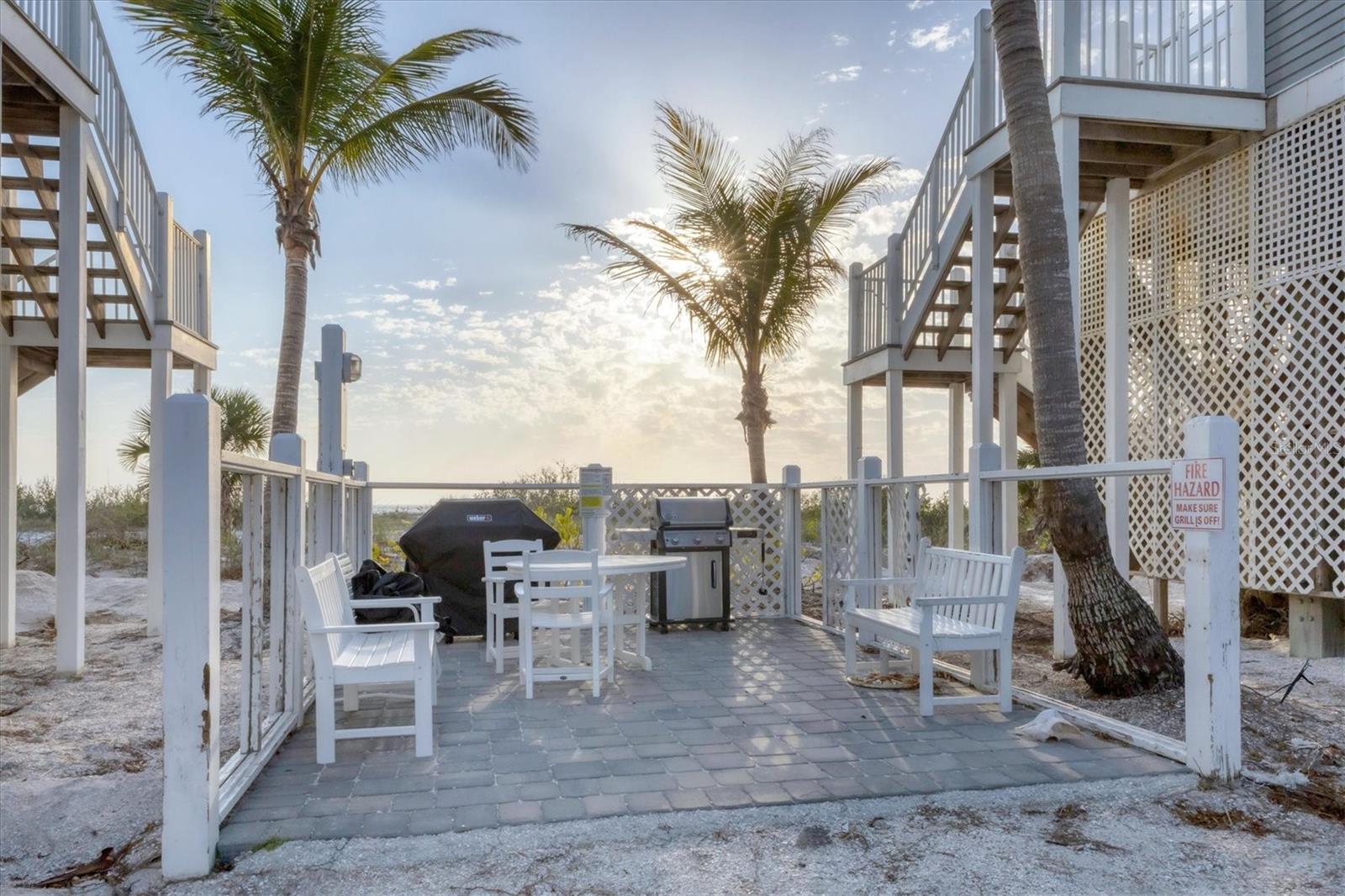 BEACHFRONT LUXURY IN PALM ISLAND RESORT! Built in 2006, this beautifully updated 3-bedroom, 2.5-bath condo meets current flood and hurricane codes, offering peace of mind along with spectacular views of Gulf of America. Step inside to find new engineered wood flooring throughout the bedrooms and living areas, an open-concept kitchen with sleek quartz countertops, and a spacious screened lanai where you can relax and take in the breathtaking coastal scenery. An elevator, laundry room, and storage room below the building add extra convenience. Enjoy world-class resort amenities, including tennis & pickleball courts, dockage, a beautiful pool & spa, BBQ area, fitness center, and the island hang-out; Rum Bay Restaurant. Explore miles of pristine, quiet beaches filled with shells, shorebirds, and sharks’ teeth, all just steps from your door. Travel throughout the resort by golf cart or bicycle, fully embracing the laid-back island lifestyle. This is coastal living at its finest!
