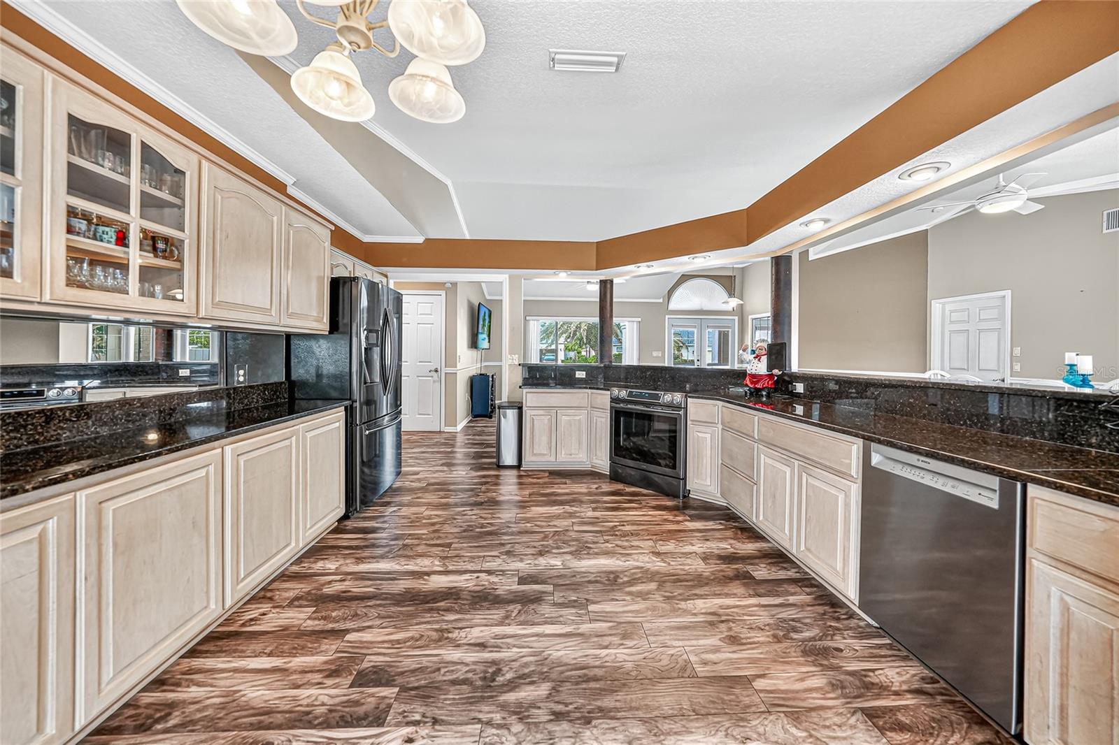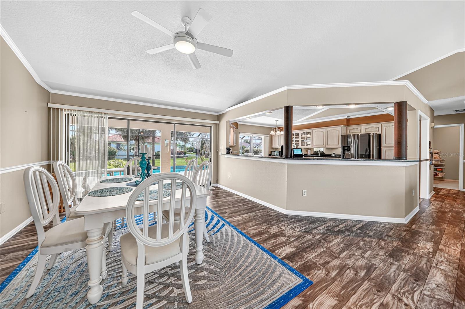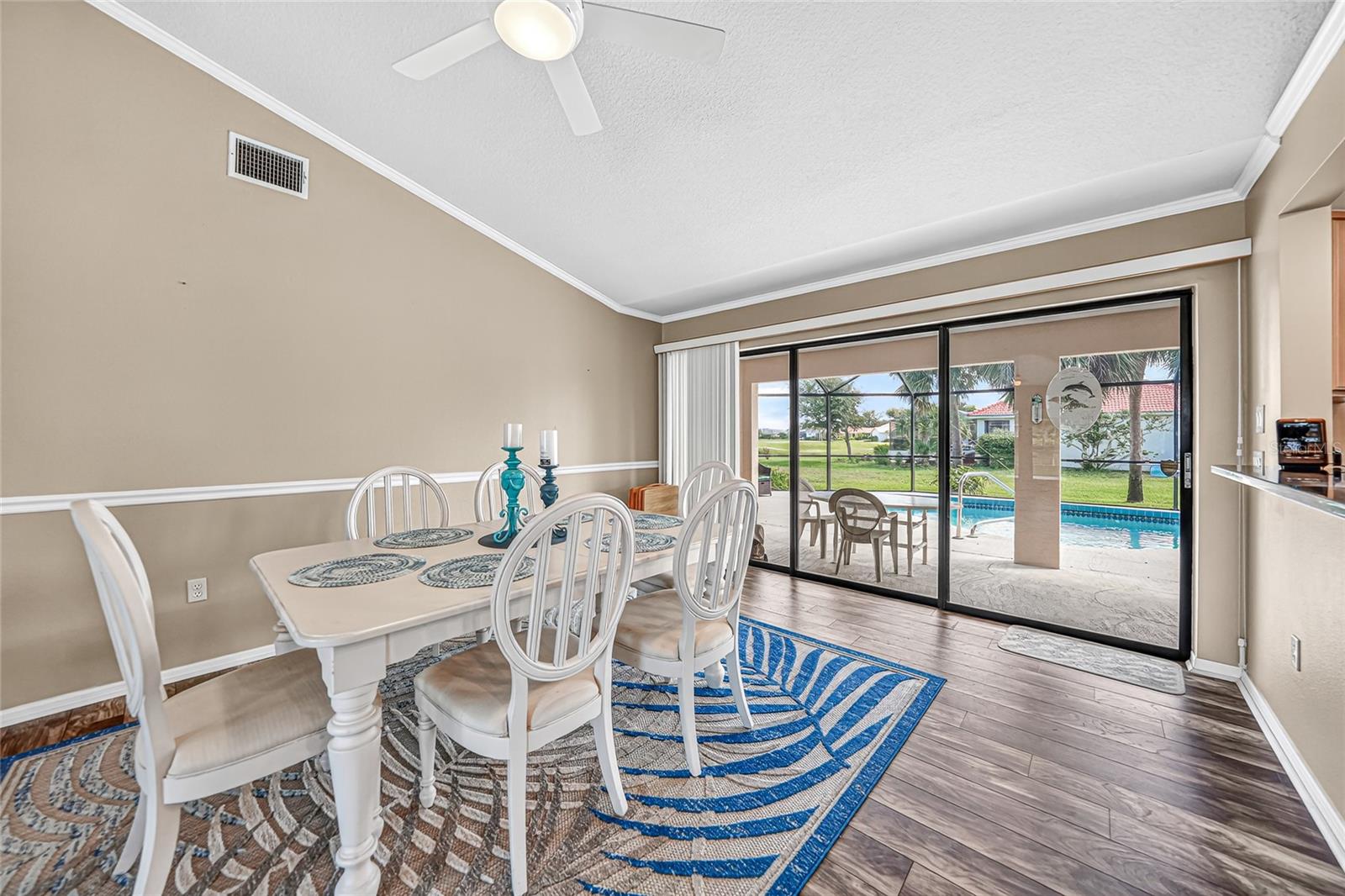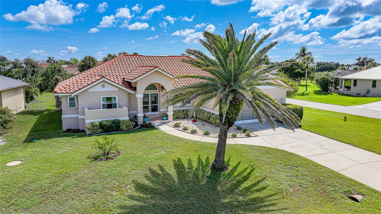 BONUS PERK: Seller pays your first year of lawn care and pool maintenance — move in and relax! Stunning HEATED & COOLED POOL home on an oversized corner lot in the highly sought after Cape Haze Windward community. This beautifully updated 2-bedroom, 2 bath residence with a bonus room—ideal as an OFFICE or THIRD BEDROOM—offers the perfect balance of elegance, comfort, and Florida lifestyle. Enjoy tranquil peek-a-boo views of the pond and golf course in a home designed for both relaxation and entertaining. The double door entry welcomes you into a bright open concept great room with soaring 11.5 ft vaulted ceilings, crown and chair rail molding, and neutral coastal tones. Four pocketing sliding glass doors open seamlessly to the expansive screened lanai, where a heated and cooled pool, covered seating areas, and a 64 foot enclosure create a private resort style retreat. The designer kitchen is a centerpiece, featuring granite countertops, rich wood cabinetry, FINGERPRINT RESISTANT stainless appliances (2019), a breakfast bar, and a cozy dining nook overlooking the pool. A convenient pass through window enhances outdoor dining and entertaining. The primary suite is a peaceful retreat with a large walk-in closet, additional built in storage, and a sitting area or work out equipment area with direct pool access. The ensuite bath offers dual vanities, a makeup station, soaking tub, and walk-in shower with FLOOR TO CEILING tile. The guest suite includes a walk-in closet, private sitting area, and access to the pool, with the guest bath also serving as a convenient pool bath. Additional highlights include HURRICANE IMPACT WONDOWS (2018), laminate flooring in main living areas, an interior laundry room with utility sink, and an oversized two-car garage with sliding screen panels. Located minutes from The Links Golf Course, Don Pedro Island State Park, grocery stores, and restaurants. Residents enjoy quick access to beaches, boating, and world-class fishing at Boca Grande. Boca Grande Causeway is approximately 3 miles away, and Englewood Beach is less than 10 miles. This home offers a rare combination of quality, comfort, and location—ideal for year-round living, a seasonal retreat, or a luxury investment property.