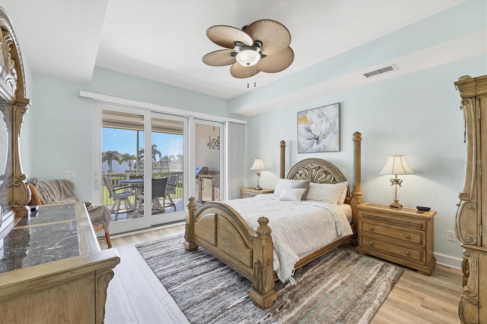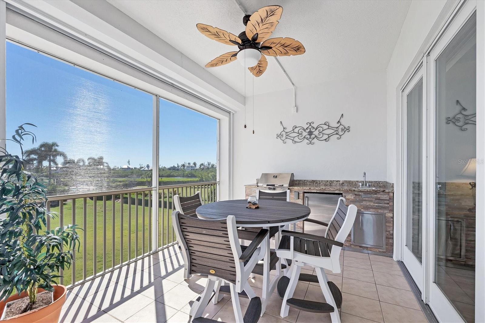 Experience refined coastal living in this beautifully remodeled 3-bedroom, 2.5-bath corner unit in the coveted southern-facing Building "C" of Hacienda Del Mar. Bathed in natural light from numerous east-facing windows, this mint-condition property showcases a fresh coastal design with brand-new wide plank flooring throughout the living and bedroom areas, fresh interior paint, and tile backsplash. The open-concept floor plan seamlessly blends the expansive kitchen, dining, and living spaces, all anchored by elegant stone countertops, creating an inviting and impressive setting for everyday living and entertaining. Step outside to enjoy truly exceptional outdoor living. The immense screened lanai features a stunning built-in outdoor kitchen, while a private terrace off the guest bedrooms offers a peaceful retreat. Built to the highest standards, this residence boasts Andersen impact-resistant windows and sliders, storm shutters, a richly stained Thermatru front door, soaring 10-foot ceilings, and 8-foot solid core interior doors. Enjoy picturesque views of the Intracoastal Waterway and convenient access to two resort-style swimming pools, a luxurious waterfront clubhouse, spa, tennis and pickleball courts, day dockage, and Palm Harbour Marina. Ideally located near top-tier shopping, fine dining, public and private golf courses, world-class fishing and boating, and the charm of historic Boca Grande. Most of the nearly-new furnishings are negotiable, move in and start enjoying paradise today.