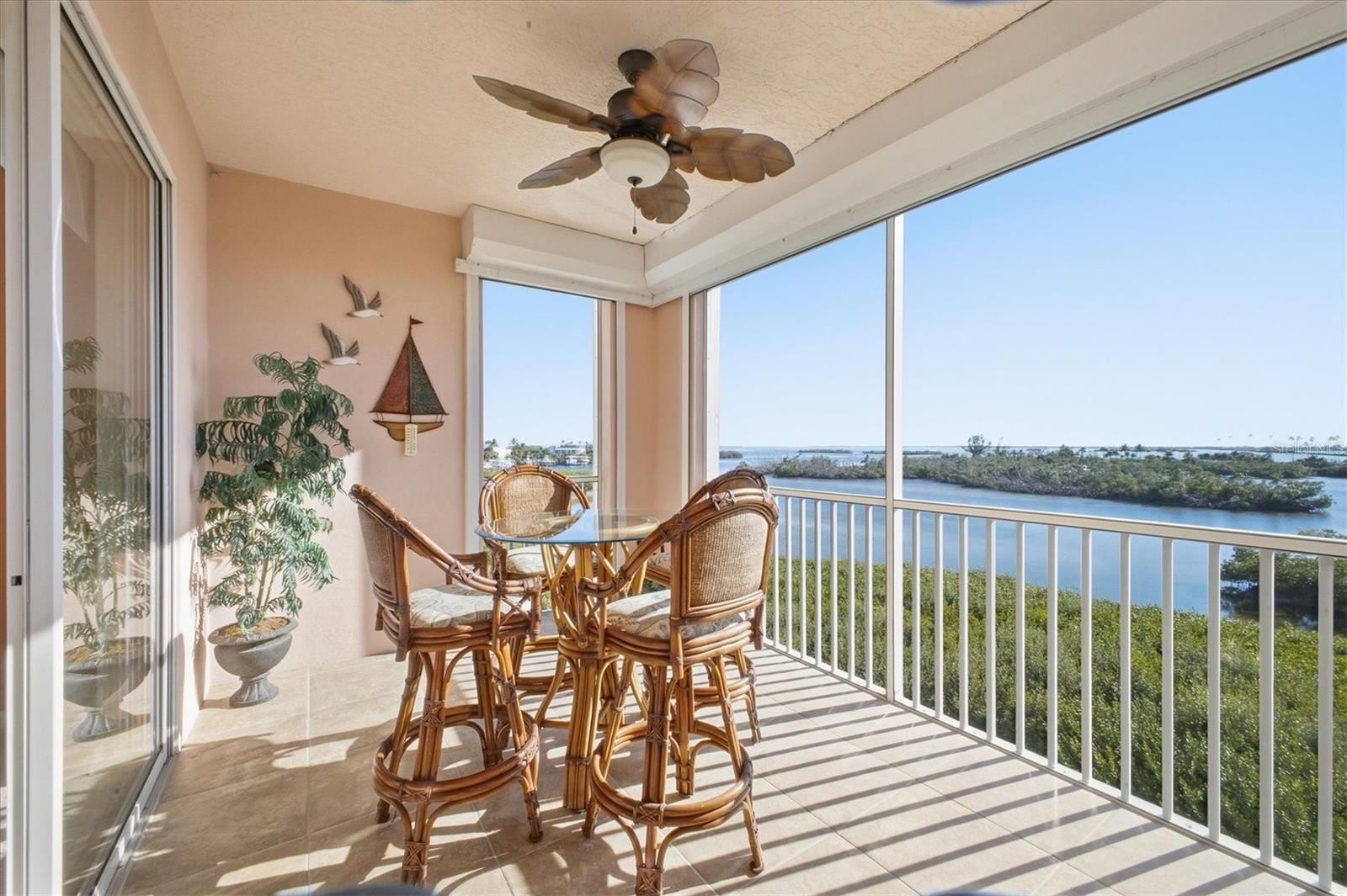 Note the freshened price point - Where Every sunset Feels Like a Private Showing---There’s something captivating about this Boca Vista Harbor residence, a place where the water glistens as if brushed with gold and every passing boat feels like part of your own story. From the fourth floor, enjoy sweeping, panoramic views of Charlotte Harbor, Gasparilla Sound, and the Intracoastal Waterway, all from the serenity of your oversized lanai, complete with remote-controlled roll-down storm shutters for effortless peace of mind. Inside, sophistication meets comfort with a built-in Sub-Zero refrigerator, custom wood cabinetry, granite countertops, stainless steel appliances, and a wine refrigerator that together create the perfect balance of elegance and function. Thoughtful design is evident throughout, from custom built-ins and tailored closets to custom valances in the living room and master bedroom, plantation shutters on the front windows, and motorized room-darkening shades in both the living room and master suite. Hurricane-impact windows in the kitchen, front bedroom, and sidelights further enhance peace of mind. The condo sleeps six comfortably, with a queen pull-out couch in the living room offering flexibility for guests. Offered partially furnished, it’s ready to welcome you with ease. There is a single car garage with shelving for additional storage located ground level under the building. Beyond the residence, Boca Vista Harbor delivers the resort-style amenities that make it so desirable... a sparkling heated pool and spa, clubhouse, tennis and pickleball courts, and onsite boat docks available for rent or purchase. Gas and charcoal grills at poolside invite casual gatherings, while the gated community setting ensures privacy and security. The adjacent full-service marina offers slips of all sizes, making boating effortless, and ownership is not required to enjoy life on the water—with boat rentals available at the neighboring marina, you can set sail on a whim and experience the coastal lifestyle at its finest. The location is as exceptional as the home itself, just moments from Gasparilla Marina, Boca Grande, state parks, and world-class golf. Deeded boat slips with lifts are available for those who crave direct access to open water and the best fishing in Southwest Florida. This is more than a home—it’s a lifestyle that embodies ease, beauty, and the quiet luxury of living well with intention.