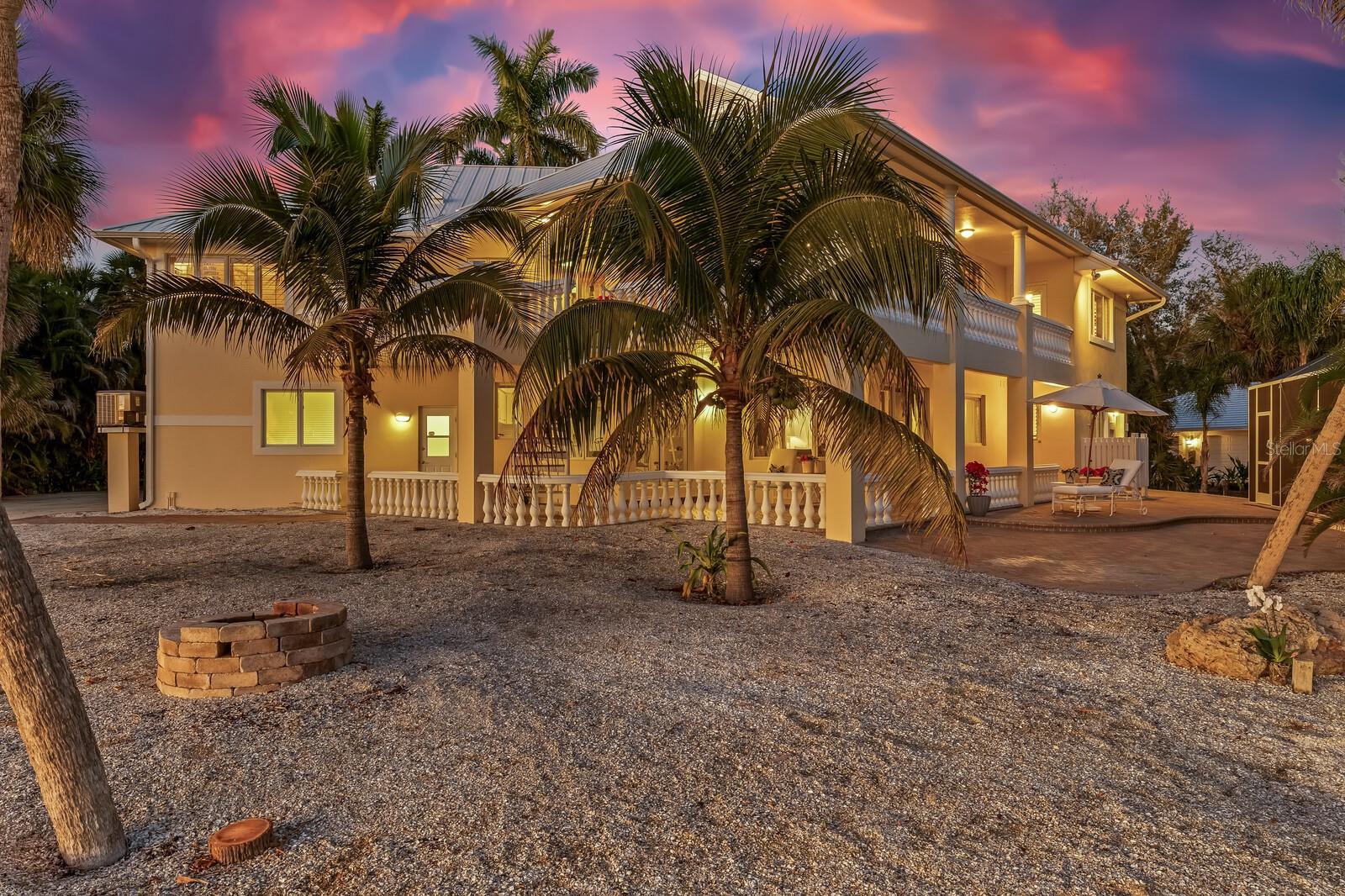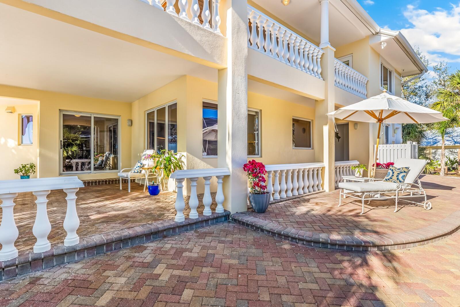 Behind a gated, palm-lined drive, this custom Cape Haze estate unfolds across two expansive parcels totaling 2.62 acres, offering an uncommon sense of scale, privacy, and direct waterfront access on Lemon Bay. Built by J & J Homes for the builder himself, the residence reflects a level of craftsmanship and material integrity rarely found in the market. The main living level is organized around a light-filled great room, where a wood-lined cathedral ceiling and custom built-ins frame uninterrupted views of the bay. Walls of glass open to a covered veranda, creating a seamless connection between interior spaces and the surrounding landscape. The kitchen is both refined and functional, appointed with custom wood cabinetry, granite countertops, under-cabinet lighting, a hand-painted sink, copper range hood, KitchenAid appliances, and a Sub-Zero refrigerator. A butler’s pantry and breakfast nook enhance everyday ease, while a formal dining room with crown molding and a sculptural niche is designed for more considered gatherings. The primary suite is positioned as a private retreat, featuring a double tray ceiling with layered crown molding, an expansive walk-in closet supplemented by two additional closets, and a spa-like bath with an extended granite vanity, gold-plated fixtures, a walk-in shower, and a Jacuzzi soaking tub. A dedicated office with leaded glass French doors and custom built-in cabinetry offers a quiet, purposeful workspace. A guest suite with water views, balcony access, and an adjacent marble-appointed bath provides comfort and privacy for visitors. A well-placed powder room and a thoughtfully designed laundry room complete the main level. Outdoors, a heated screened pool and spa overlook Lemon Bay, accompanied by a convenient half bath. The property’s 530 feet of concrete seawall supports exceptional boating infrastructure, including a 16,000-pound lift, a separate 10,000-pound covered lift, Trex dock, fishing station with water and electric, and a dedicated launch for kayaks and paddleboards. Deep-water access to the Intracoastal Waterway is immediate, with Don Pedro Island State Park just across the lagoon. Additional features include zoned HVAC, tankless water heater, new electrical panel, an attached side-entry three-plus-car garage, and a 1,500+ square foot air-conditioned detached garage and workshop with epoxy flooring. A composed and enduring waterfront estate, defined by craftsmanship, privacy, and a rare depth of waterfront presence.