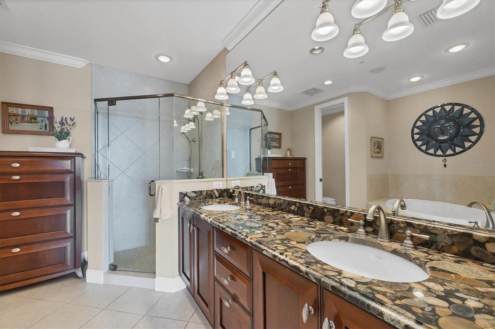 This exceptional corner property, located on the third floor, offers a luxurious living experience with breathtaking views of the Intracoastal Waterway. Designed by a professional interior designer during its original construction, the home spans nearly 2,000 sq.ft. under air, featuring 3 bedrooms, 2.5 baths, a large 400 sq.ft. screened lanai, and a charming terrace accessible from both guest bedrooms. With a southern and western exposure, the residence is bathed in natural light from the dozens of impact-resistant Andersen casement windows and glass sliders that showcase panoramic water views. Inside, the home boasts soaring 10-foot ceilings, 8-foot solid core doors, and an expansive open-concept dining and living room area that seamlessly flows into the kitchen. The fully integrated design enhances the open feeling, allowing views and light to pour throughout the space. The kitchen is equipped with top-tier features, including custom Italian LUBE cabinetry, level 5 stone countertops, high-end appliances such as a Bosch dishwasher, newer KitchenAid refrigerator, and electric roll-down storm shutters on the lanai. Additional luxury elements include crown molding, 18" tile floors, custom plantation shutters, and sophisticated drapery throughout. The spacious primary suite is a serene retreat, featuring a large bedroom, walk-in closet, and a luxurious bath with a custom-built linen chest and stunning lake rock stone countertops. The unit is also equipped with a high-end fitness center and exclusive amenities such as two resort-style pools, a spa, a waterfront clubhouse, a fenced dog park, fishing pier, day dockage, pickleball and tennis courts, and beautifully landscaped grounds spanning 23 acres with paver sidewalks. Residents enjoy close proximity to a full-service marina, excellent shopping and dining options, historic Boca Grande, pristine beaches, golf courses, and immediate access to world-class fishing and boating. A truly unparalleled opportunity for luxury living in a vibrant, tropical setting.