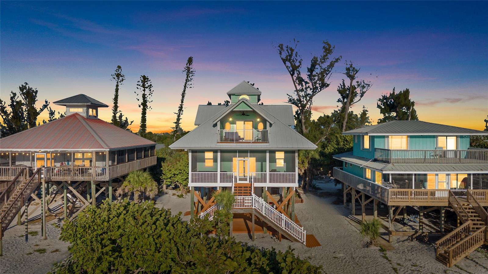This beautiful gulf front home, located on Little Gasparilla Island, features a custom coastal design, with stunning views and a relaxing atmosphere. Little Gasparilla Island, a bridgeless barrier island off the Cape Haze peninsula, is accessible only by private boat or water taxi only. LGI has a peaceful and friendly atmosphere, with no shops, restaurants, or car traffic. Residents enjoy sandy trails, and lush tropical foliage. Every detail of this home has been carefully considered, creating a lovely living space that combines comfort and style. The metal roof, Hardie board siding and trim, Hardie soffit, and Hardie ceiling in the lanai were installed in 2023, along with impact windows and doors installed throughout the home, ensuring durability and safety. A full list of updated features is available upon request. On the first floor, you'll find a guest bathroom and bedroom, a laundry room, a kitchen, a living room, a dining room, and a large screened-in lanai. The kitchen is thoughtfully designed for those who love to cook and entertain, flowing seamlessly into the dining and living areas. The new windows and sliding glass door offer breathtaking views of the gulf and allow plenty of natural light to fill the space. During spring and fall, opening the windows and doors invites refreshing tropical breezes throughout the home. The spacious screened-in front lanai and the master bedroom balcony are perfect spots to sip your morning coffee or simply relax while watching dolphins and manatees swim by during the day. In the evening, you can enjoy spectacular sunsets over the gulf. On the second floor, the primary bedroom boasts two walk-in closets and an en-suite bathroom with a tub/shower combo, and a walk-in shower, and a double vanity. Each morning starts with a breathtaking view of the water from your bed. The second bedroom, also on the second floor, includes two rooms that make the most of the roof design, serving as storage space and an additional sleeping area. The home is equipped with two central vacuum units, one upstairs and one downstairs. Beneath the home is a storage area for keeping a golf cart, tools, fishing tackle, and beach toys. You can enjoy walking the beautiful 3 ½ miles of beach in search of perfect shells and shark’s teeth, or fishing for redfish, snook, snapper, and more in the surrounding waters. This well-kept beachfront home offers a unique opportunity to enjoy the coastal lifestyle. Once you visit and experience its charm and comfort, you'll never want to leave.