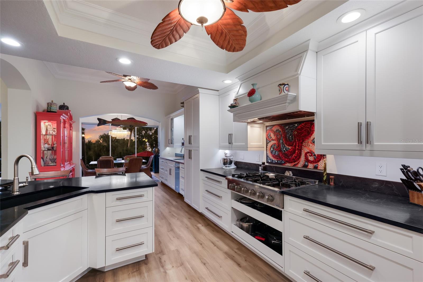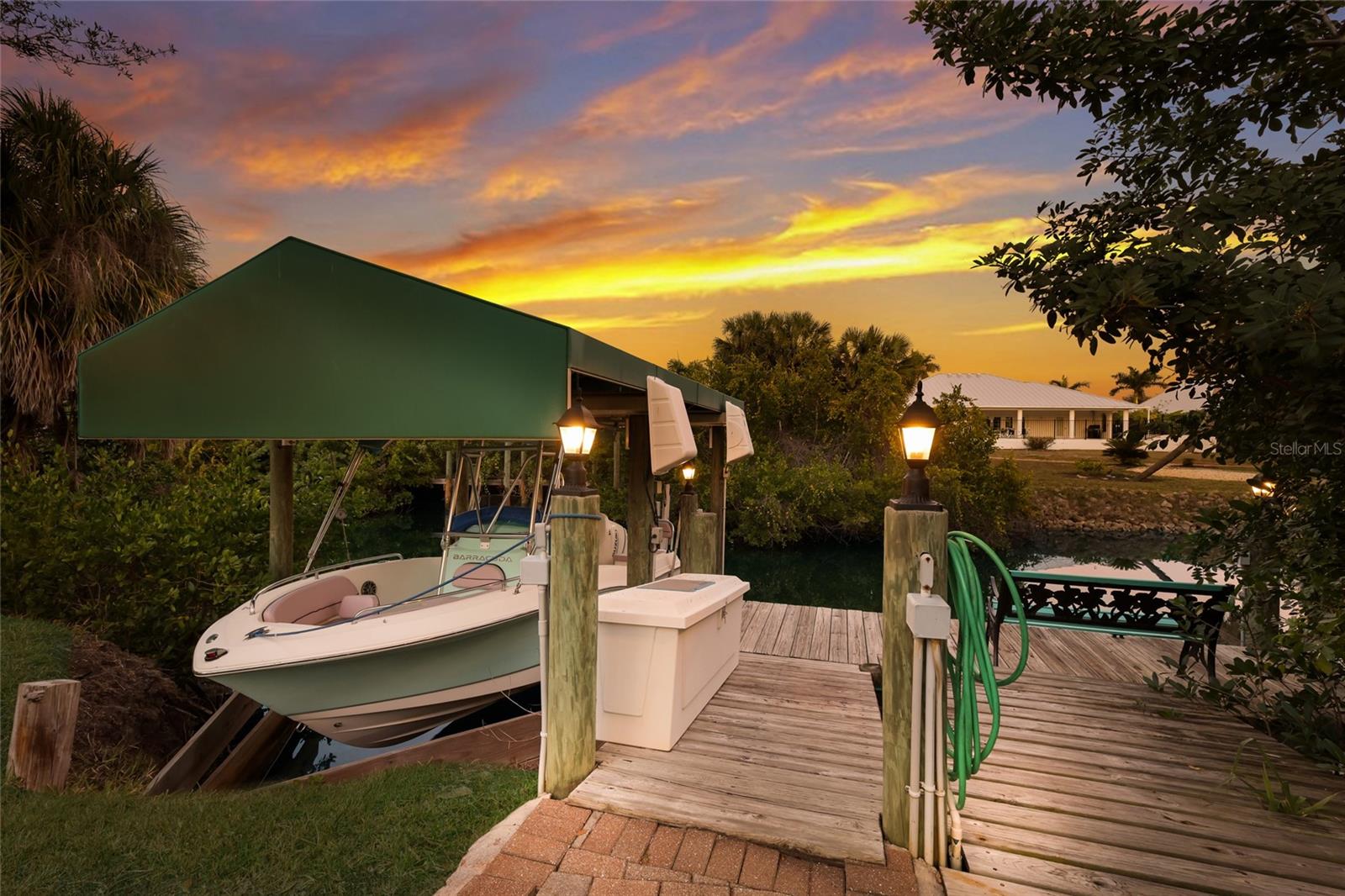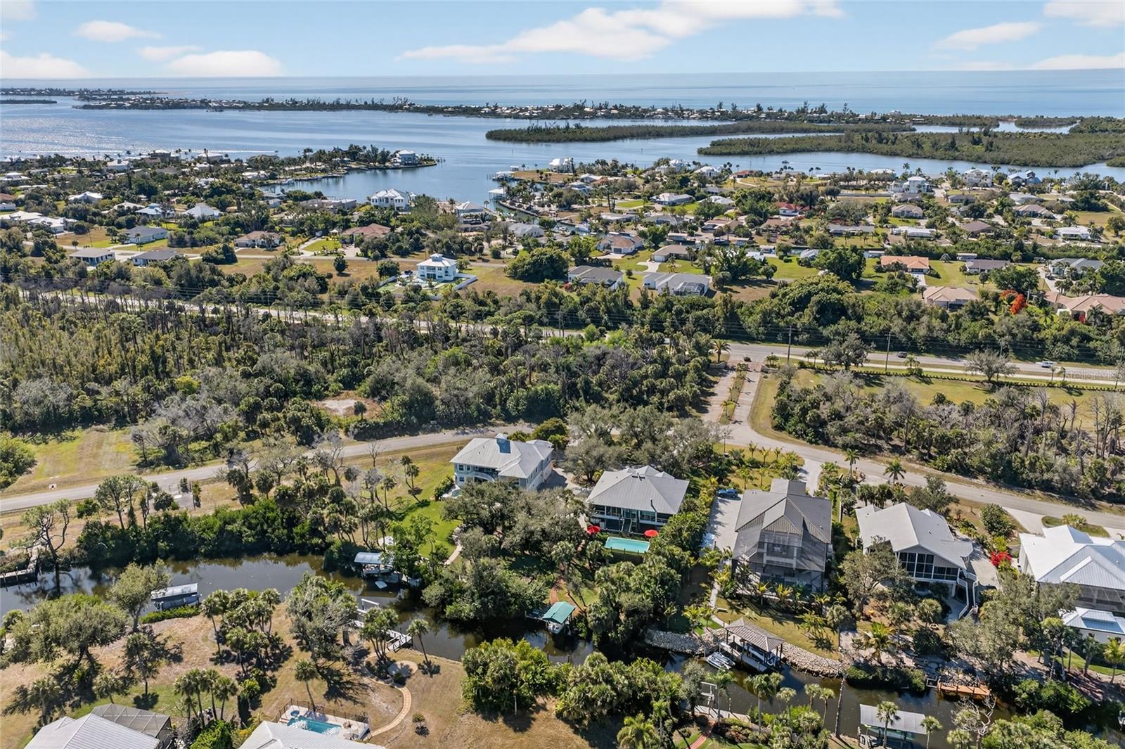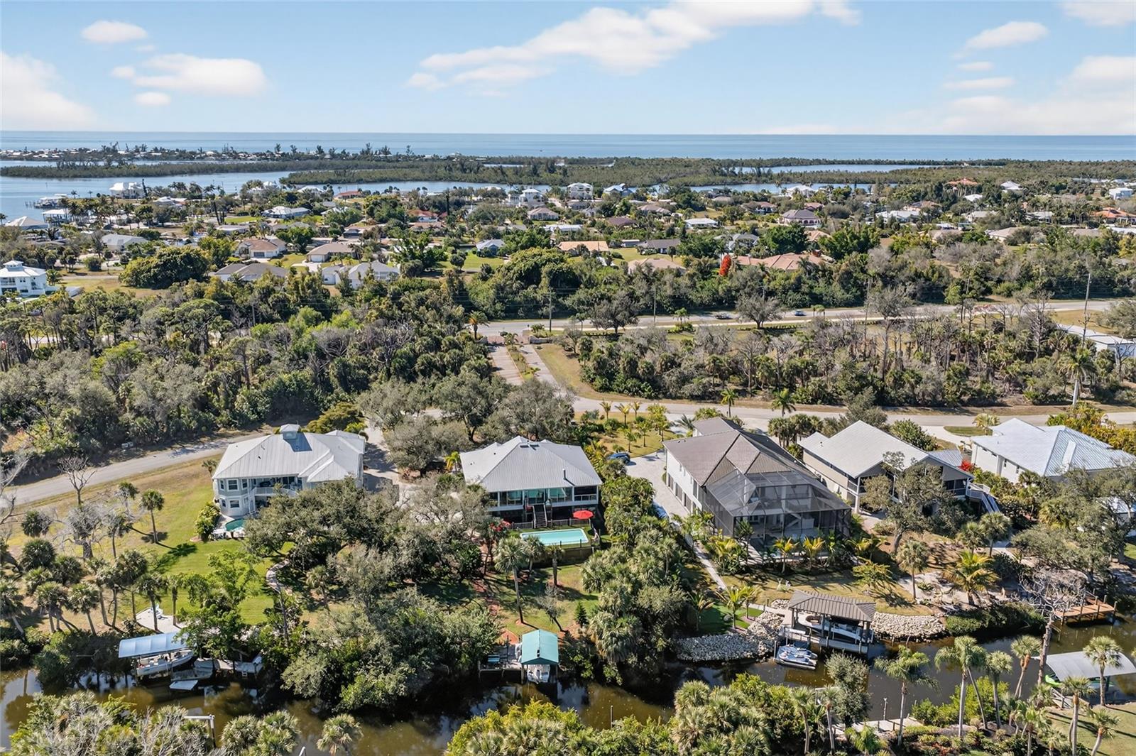 Luxury custom waterfront home in the secluded gated community of Coral Cove. A true tropical oasis, the property is situated on a large .62-acre lot with thoughtful landscape design that includes enchanting oak trees, mature palms, and refined gardens. This updated 3 bedroom, 2.5 bath, plus an office/den offers luxurious enhanced interior, boat dock and lift, stunning swimming pool, elevator, and incredible outdoor living space. The property has a sensational open floorplan with an impressive great room, magnificent gourmet kitchen, and expansive Florida Room with floor to ceiling glass that brings the gorgeous backyard scenery into the home. The great room offers towering 14' tall vaulted ceilings and built-in niches. The grand Florida room offers a vintage Malm brand gas fireplace and 2 additional screened-in side porches. The primary suite includes a sizable bedroom, built-in cabinetry, large renovated bath and walk-in closets. There's a large pantry room where the elevator is positioned to service the garage below. A generous office/den offers superb built-in cabinetry and desks. The stunning elevated pool deck area offers serene privacy and is perfect for lounging and swimming while enjoying views of the creek and tropical surroundings. Premium coastal construction quality includes Metal roof, impact resistant windows and sliders, plus automatic roll down storm shutters. Private boat dock and lift along Amberjack Creek offers access to Charlotte Harbor and the Gulf. Enjoy world-class fishing and boating excursions to countless fun destinations. A massive lower-level totaling 2,300 sq.ft. that includes a 2+ car garage, room for a golf cart, air-conditioned workshop and large storage area. The home and neighborhood offer an outstanding location with proximity to State Parks, marinas, private and public golf clubs, historic Boca Grande, excellent restaurants, miles of pristine sandy beaches, and just walking distance to essential shopping.