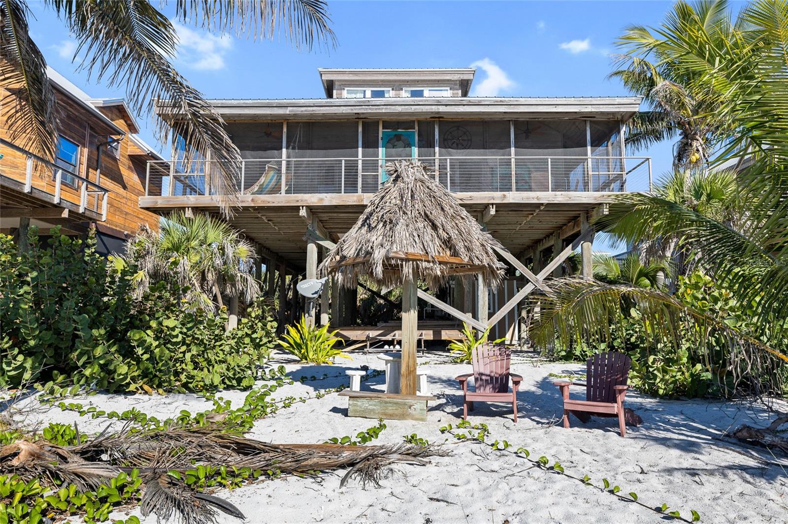 This charming beachfront home radiates Old Florida charm and is located on Little Gasparilla Island. LGI is a bridgeless barrier island situated off the coast of the Cape Haze Peninsula accessible only by private boat or water taxi, and it offers a peaceful escape in just a short 10-minute ride across the bay. If you’re seeking a quiet getaway, Little Gasparilla Island is the perfect destination. As soon as you arrive, you’ll feel the stress of the mainland melt away. The home features warm wood walls and floors throughout, creating a cozy and comfortable atmosphere. The spacious, screened-in front porch overlooks the Gulf, providing an ideal spot to unwind. Here, you can watch shore birds meander along the surf, spot dolphins and manatees swimming by, or simply enjoy a restful nap in the hammock, and at the end of the day watch the gorgeous sunsets. The kitchen is equipped with granite countertops, ample cabinetry for storage, and a large pantry. You’ll enjoy beautiful views of the water from the kitchen, dining room, living room, and the loft bedroom upstairs. The screened-in back porch is perfect for savoring your morning coffee while watching the sunrise glow through the trees. Both porches offer unique vantage points to enjoy the natural beauty surrounding the home. Little Gasparilla Island doesn’t have any grocery stores, restaurants, or shops, but has 3 ½ miles of uncrowded beach. Spend your days wandering the shoreline collecting seashells and shark’s teeth, swimming, or relaxing with a good book in the sun. The surrounding waters are excellent for fishing, with opportunities to catch redfish, snook, snapper, trout, and more. Come experience this lovely home and discover what it’s like to live on island time, surrounded by natural beauty and tranquility.