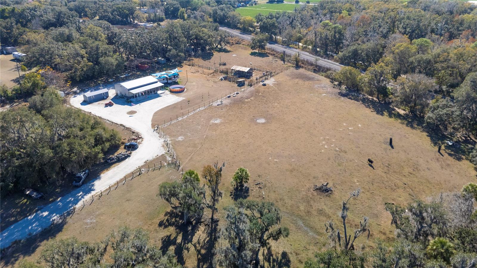 The property you are inquiring about is located in Plant City, FL, in the Fishhawk Riverhills area of Hillsborough County. This is a beautiful 13.27 acres of land that is fenced and cross-fenced. It has 2 sheds, a 50x30 metal barn built in 2024, a 12x50 front porch canopy, a swimming pool, a well, and many farm amenities that are included with the property. It has a 575 feet of driveway to the parking area, and a .3 acre parking lot that EXCLUDES the building. This is a prime location in central Florida for a potential large ranch or an additional homesite to be added in conjunction with a potential horse facility. Text or call us for more information.