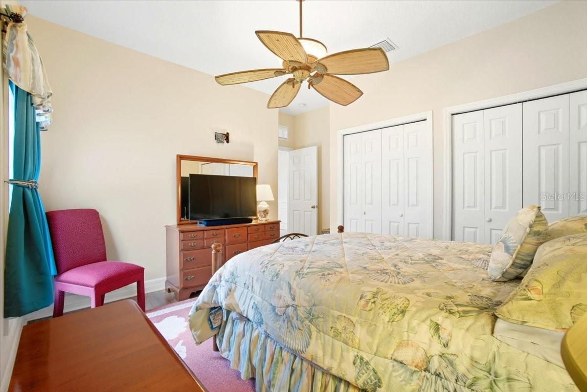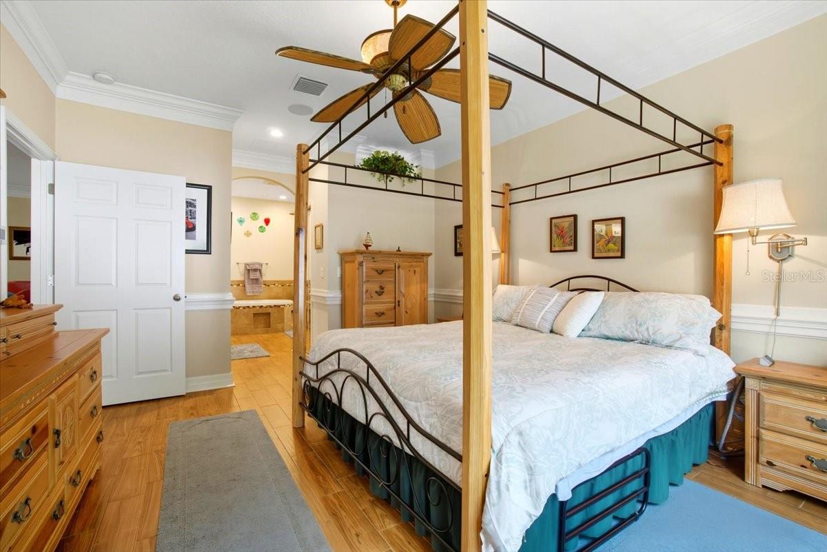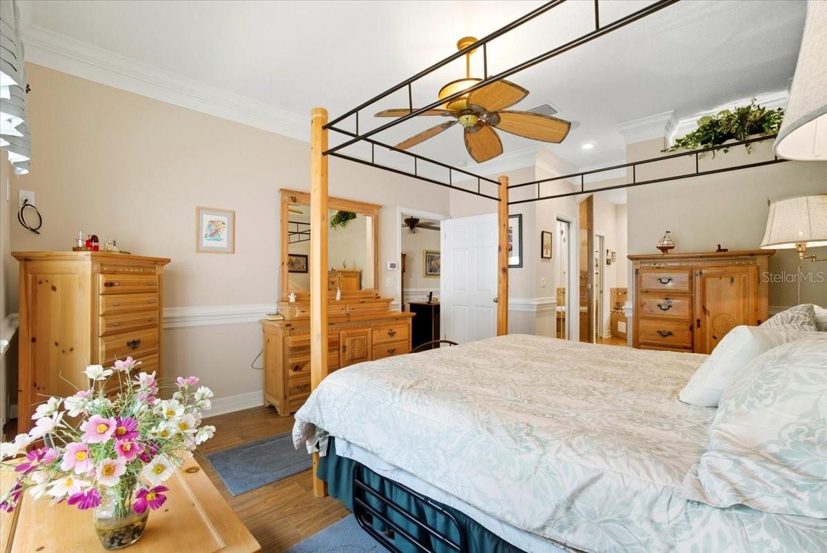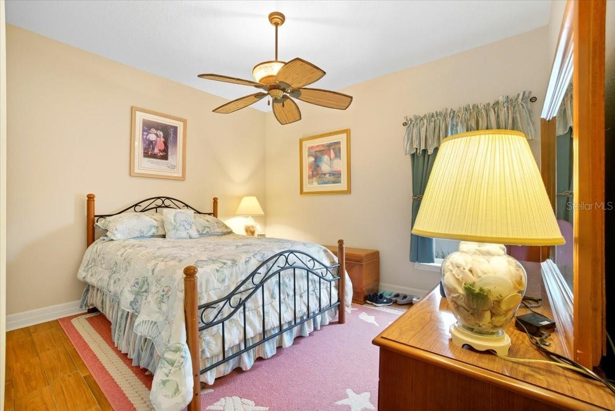 Welcome to Park Place, a small, quiet gated community where neighbors wave, HOA fees stay low, and there are no CDD fees in sight. This custom-built 2016 home was designed with care and attention to every detail—combining the charm of craftsmanship with all the comforts of modern living. From the moment you walk up to the 8-foot glass front door, you’ll feel the difference. Inside, the home opens to a warm and welcoming living space filled with natural light from solar tubes and anchored by a rare brick gas fireplace—a cozy touch that gives this home so much character. The same brick carries through to the kitchen island, tying the heart of the home together beautifully. The kitchen is both functional and stunning, featuring custom 43” cabinets, top-of-the-line stainless steel appliances, under- and over-cabinet lighting, a large walk-in pantry, and a sunny breakfast nook framed by an oversized window. The formal dining room adds flexibility—perfect as a den, home office, playroom, or even a fourth bedroom (it was part of the builder’s original plan). The primary suite feels like a private retreat, complete with dual closets and a spa-like bathroom with a soaking tub, dual vanities with a built-in makeup station, and a large walk-in shower with a built-in seat. Every detail in this home was thoughtfully chosen: porcelain tile throughout, custom lighted inlay accents, marble window sills, and Hunter Douglas top-down/bottom-up shades for both beauty and function. This natural gas home offers everyday conveniences like a tankless water heater for endless hot water, a whole-home water softener, and surround sound in the living room, primary suite, and lanai. Both the attached 2-car garage and the detached garage offer 220-amp service, attic storage, and a generator hookup—ideal for anyone who loves tinkering, working on projects, or simply having room for all the toys.