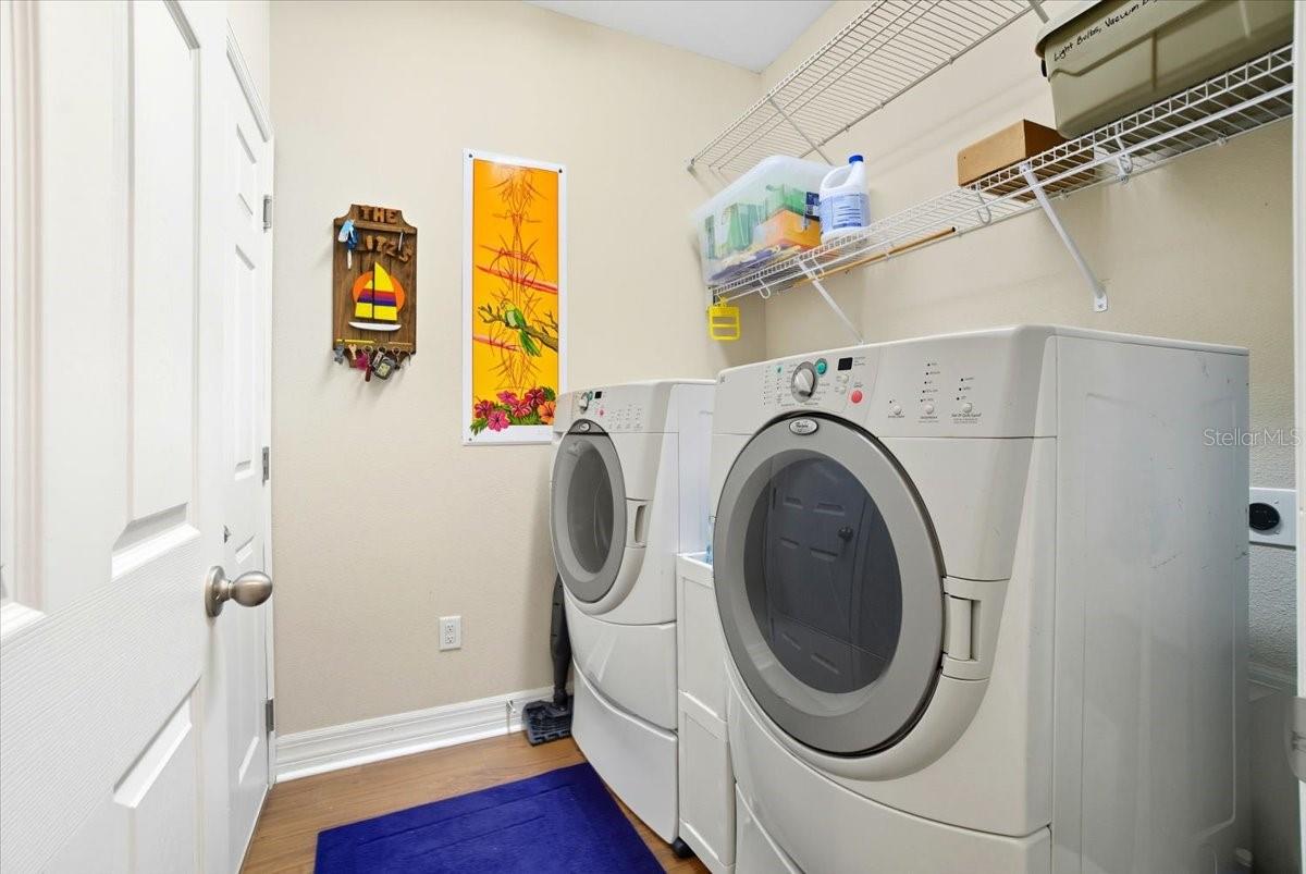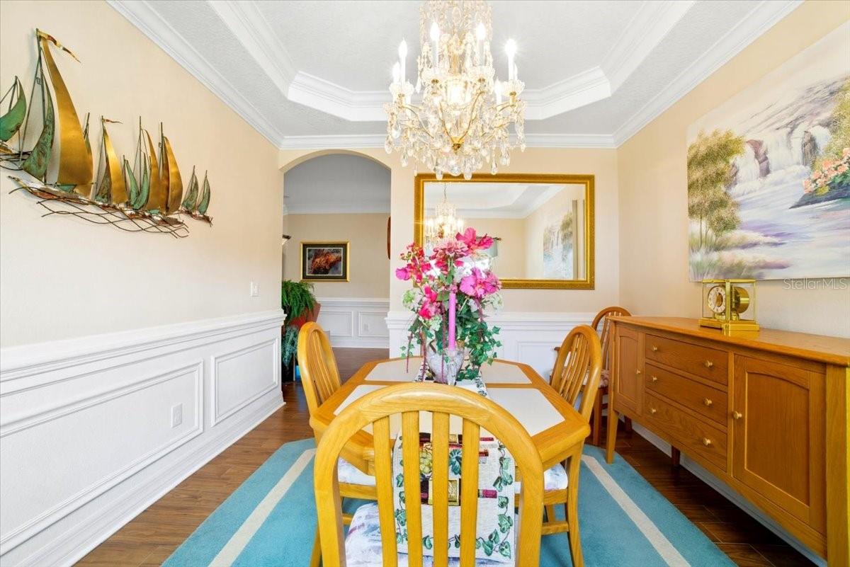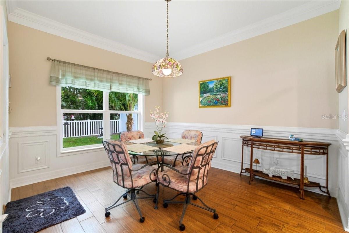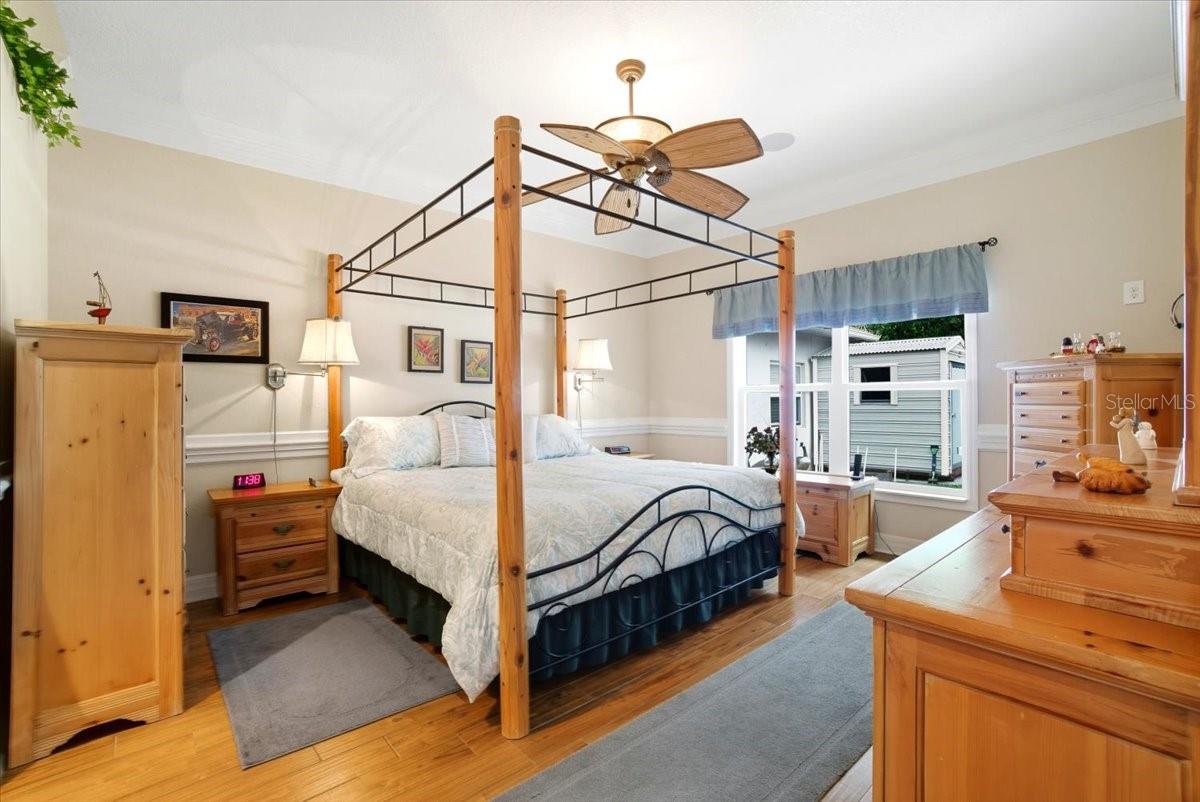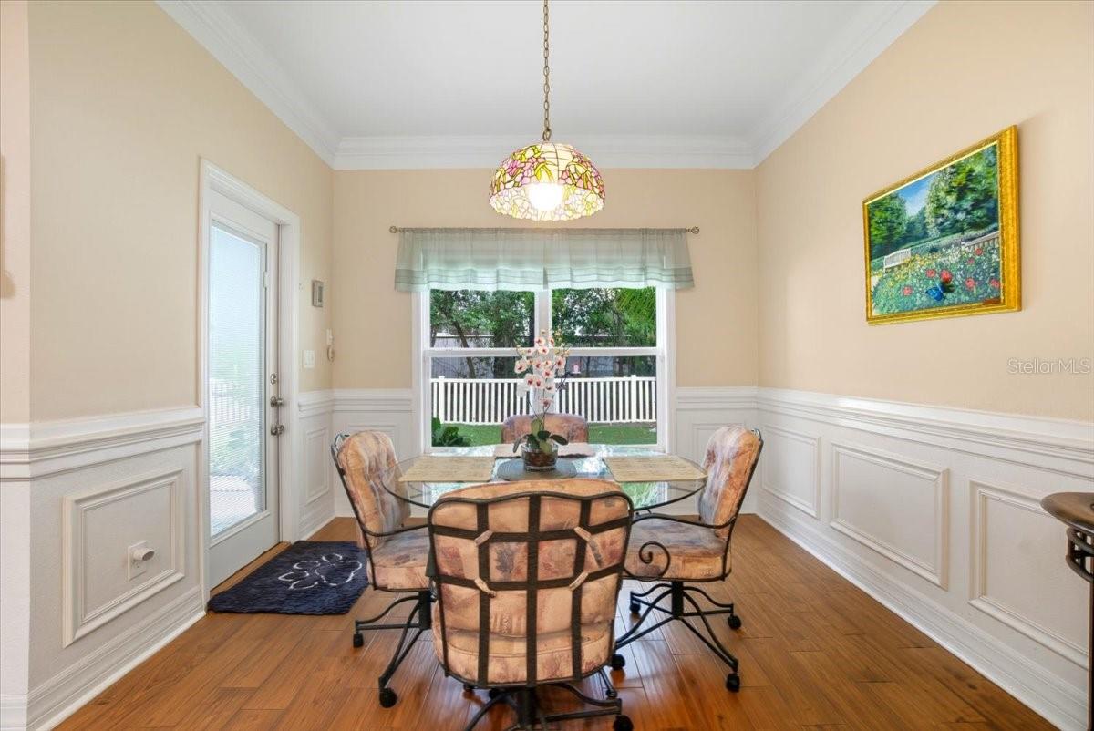 Welcome to Park Place, a small, quiet gated community where neighbors wave, HOA fees stay low, and there are no CDD fees in sight. This custom-built 2016 home was designed with care and attention to every detail—combining the charm of craftsmanship with all the comforts of modern living. From the moment you walk up to the 8-foot glass front door, you’ll feel the difference. Inside, the home opens to a warm and welcoming living space filled with natural light from solar tubes and anchored by a rare brick gas fireplace—a cozy touch that gives this home so much character. The same brick carries through to the kitchen island, tying the heart of the home together beautifully. The kitchen is both functional and stunning, featuring custom 43” cabinets, top-of-the-line stainless steel appliances, under- and over-cabinet lighting, a large walk-in pantry, and a sunny breakfast nook framed by an oversized window. The formal dining room adds flexibility—perfect as a den, home office, playroom, or even a fourth bedroom (it was part of the builder’s original plan). The primary suite feels like a private retreat, complete with dual closets and a spa-like bathroom with a soaking tub, dual vanities with a built-in makeup station, and a large walk-in shower with a built-in seat. Every detail in this home was thoughtfully chosen: porcelain tile throughout, custom lighted inlay accents, marble window sills, and Hunter Douglas top-down/bottom-up shades for both beauty and function. This natural gas home offers everyday conveniences like a tankless water heater for endless hot water, a whole-home water softener, and surround sound in the living room, primary suite, and lanai. Both the attached 2-car garage and the detached garage offer 220-amp service, attic storage, and a generator hookup—ideal for anyone who loves tinkering, working on projects, or simply having room for all the toys.