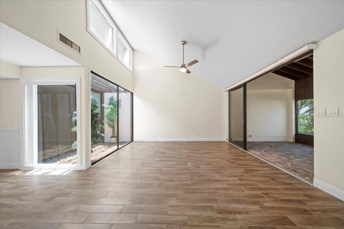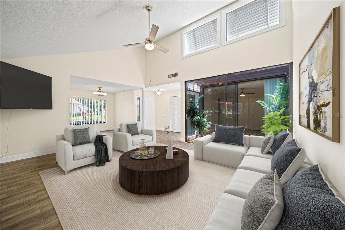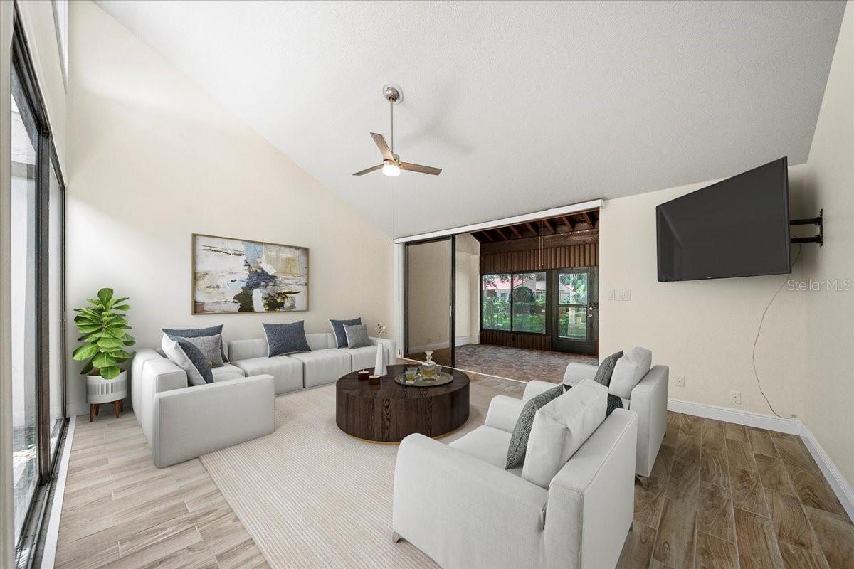 One or more photo(s) has been virtually staged. Discover the perfect blend of comfort and modern living in this beautifully updated townhome located in the desirable Walden Lake Fairway Subdivision. Featuring 3 bedrooms, 2 bathrooms, and a versatile Florida room, this move-in ready gem also includes a spacious 2-car garage, making it the ideal home for families or those looking to downsize. As you step inside, you will be captivated by the stunning wood-look tile that extends throughout the main living areas, offering both elegance and easy maintenance. The open floor plan seamlessly connects the living, dining, and kitchen areas, creating a welcoming space perfect for entertaining guests or enjoying family time. The kitchen is a culinary dream, equipped with sleek stainless steel appliances, newly installed cabinetry, and ample counter space that ensures meal prep and entertaining are a breeze. Whether you're hosting an intimate dinner or a lively gathering, this kitchen serves as the heart of your home. Retreat to the primary bedroom, which boasts an ensuite bathroom that features a brand new dual sink vanity and a beautifully tiled walk-in shower—an oasis of relaxation after a long day. The additional bedrooms are generously sized, providing comfortable accommodations for family and guests, and are conveniently located near the guest bathroom. Just off the spacious living room, the bright and airy Florida room offers a perfect spot for lounging or a bright home office, inviting the natural light and views of your surroundings. The tranquility of your backyard is highlighted by its proximity to one of the community pools, just steps away, perfect for those sunny Florida days. Location is key, and this townhome excels in that aspect as well. You’ll find yourself close to various retail shops, fabulous restaurants, and convenient access to I-4, making commuting or weekend outings effortless. Don’t miss out on this exceptional opportunity to own a fully updated townhome in a vibrant community.
