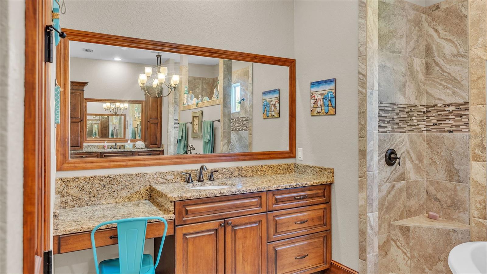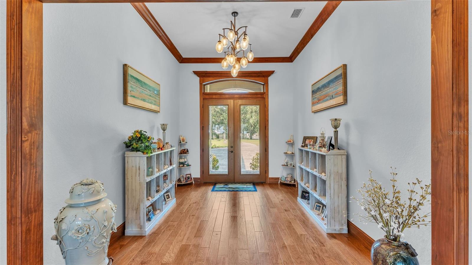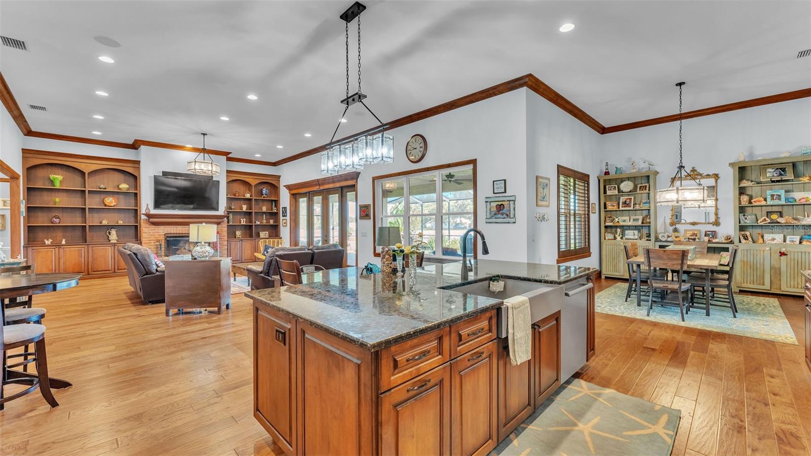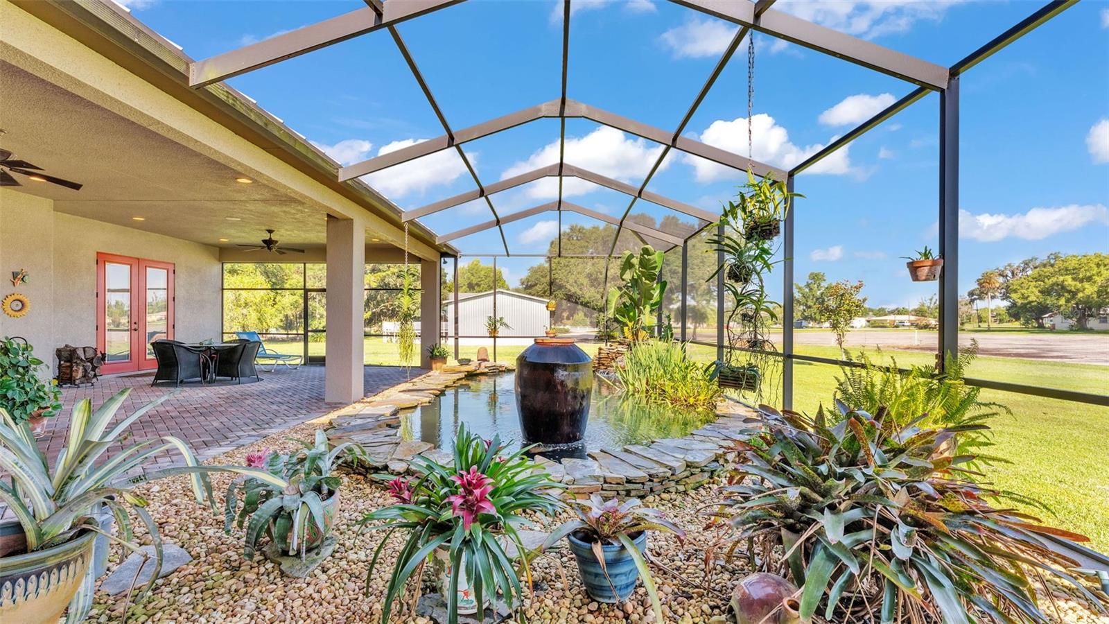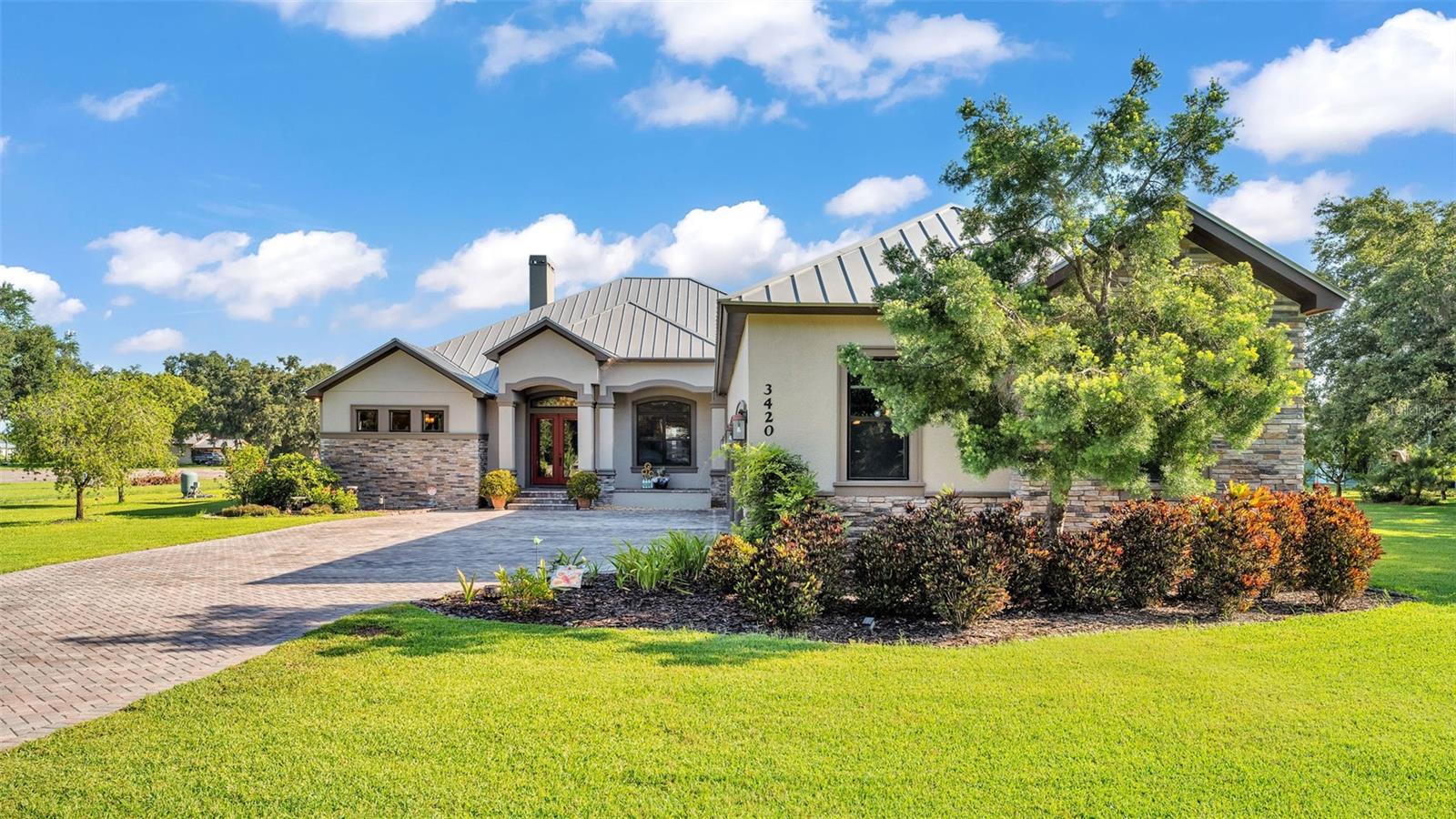 Discover the epitome of luxury living in this stunning custom-built home, completed in 2016 by LK&T Construction. Situated on over an acre of beautifully manicured land, this 5-bedroom, 2.5-bathroom residence features an office and an impressive 6-car garage, offering ample space for both comfort and convenience. Upon entering, you are greeted by a flowing open concept layout enhanced by exquisite engineered hardwood flooring and elegant crown molding throughout. This inviting design promotes both functionality and style, making it an ideal space for entertaining guests or enjoying quiet family moments. Step into the heart of the home: a spacious kitchen equipped with top-of-the-line Thermador stainless steel appliances, including a gas-burning stove. The space boasts a stunning backsplash, luxurious granite countertops, abundant cabinetry, and generous counter space, complemented by a walk-in pantry and a cozy eat-in nook—perfect for casual dining. The expansive living room features soaring high ceilings, a charming wood-burning fireplace, and custom built-in shelving, creating a warm and welcoming atmosphere perfect for relaxation and gatherings. Retreat to the sumptuous primary bedroom, offering a private oasis complete with an ensuite bathroom that highlights dual walk-in closets, separate vanities, a standalone soaking tub, and an expansive tiled walk-in shower—a perfect escape at the end of the day. On the opposite side of the home, you will find two well-appointed bedrooms that share a full-size bathroom, providing privacy for family or guests. Two additional bedrooms, equally spacious and also featuring walk-in closets, offer comfort and style for all occupants. A separate space at the entrance of the home is perfect for a home office or game room, providing flexibility for your lifestyle needs. Enjoy outdoor living at its finest with a large screened-in pavered patio that overlooks a tranquil koi pond—an idyllic setting for every season, whether you're hosting gatherings or enjoying quiet moments in nature. This home is equipped with a whole-home Generac generator and a water softener for added comfort and peace of mind. The durable metal roof enhances both aesthetics and durability, ensuring long-lasting quality. Conveniently located with quick access to I-4, shopping, and dining, this estate offers the perfect balance of privacy and accessibility. Don't miss out on this exceptional opportunity to own a custom-built estate that combines luxury, elegance, and modern living. Schedule your private tour today and experience all that this remarkable property has to offer!