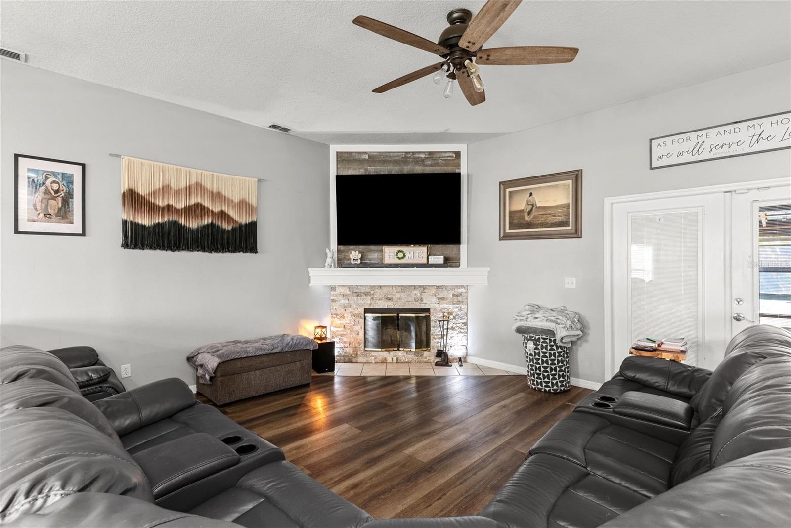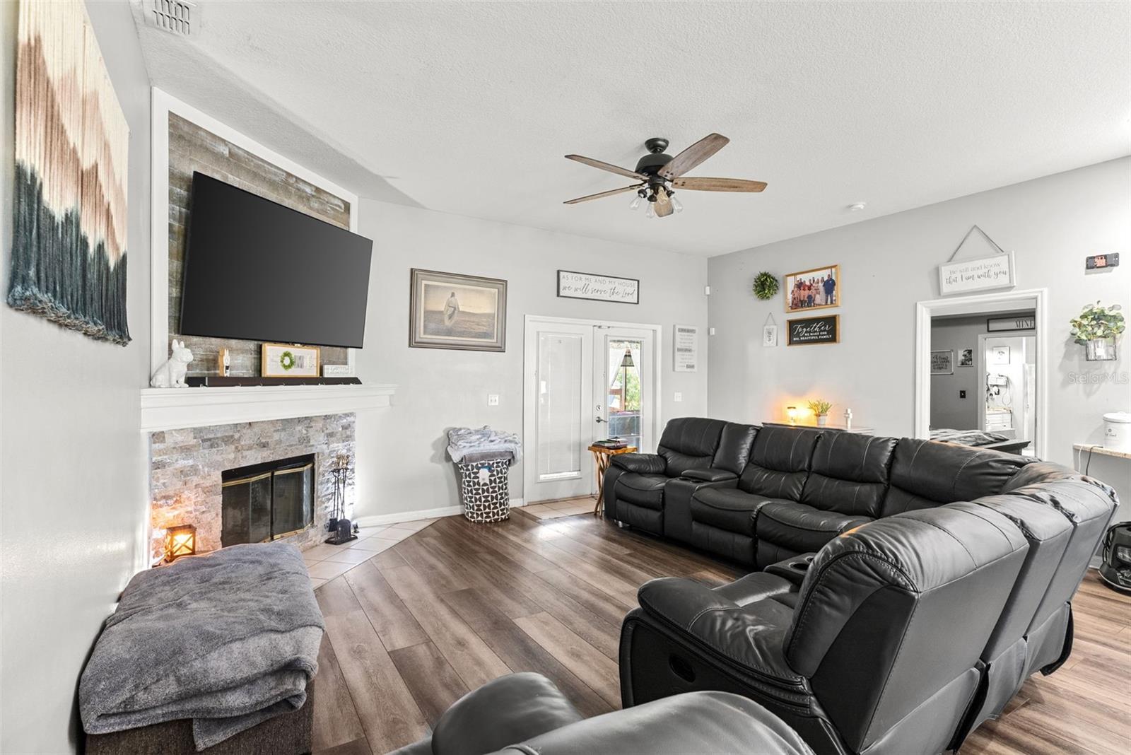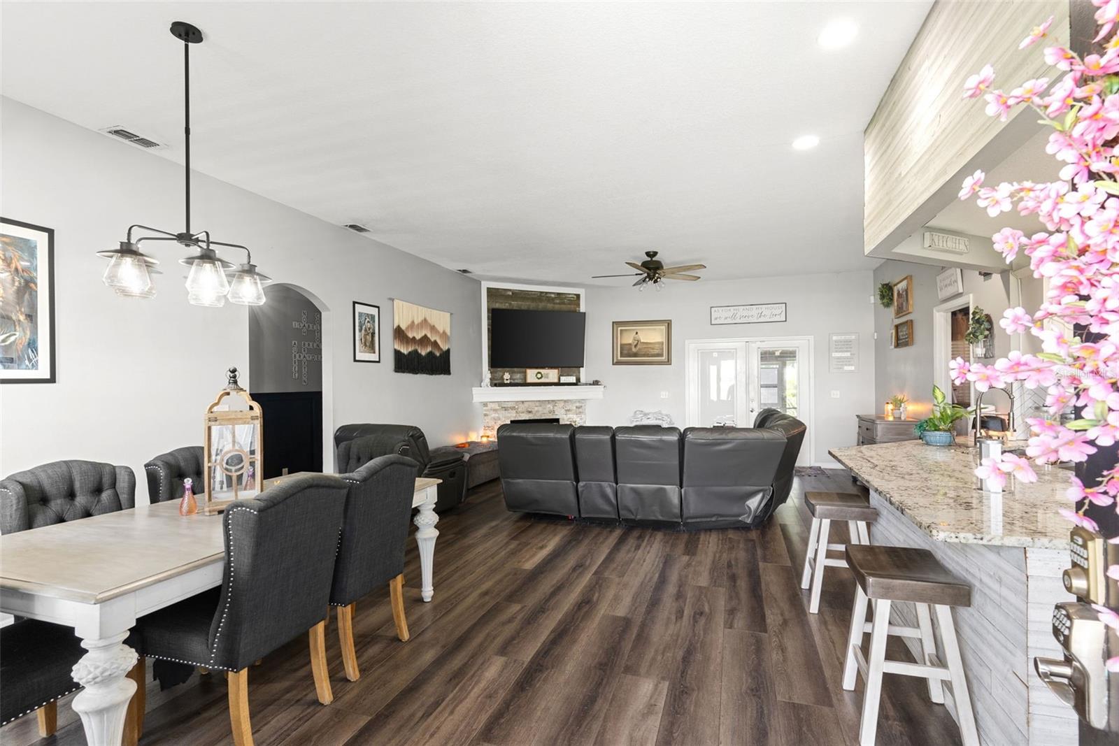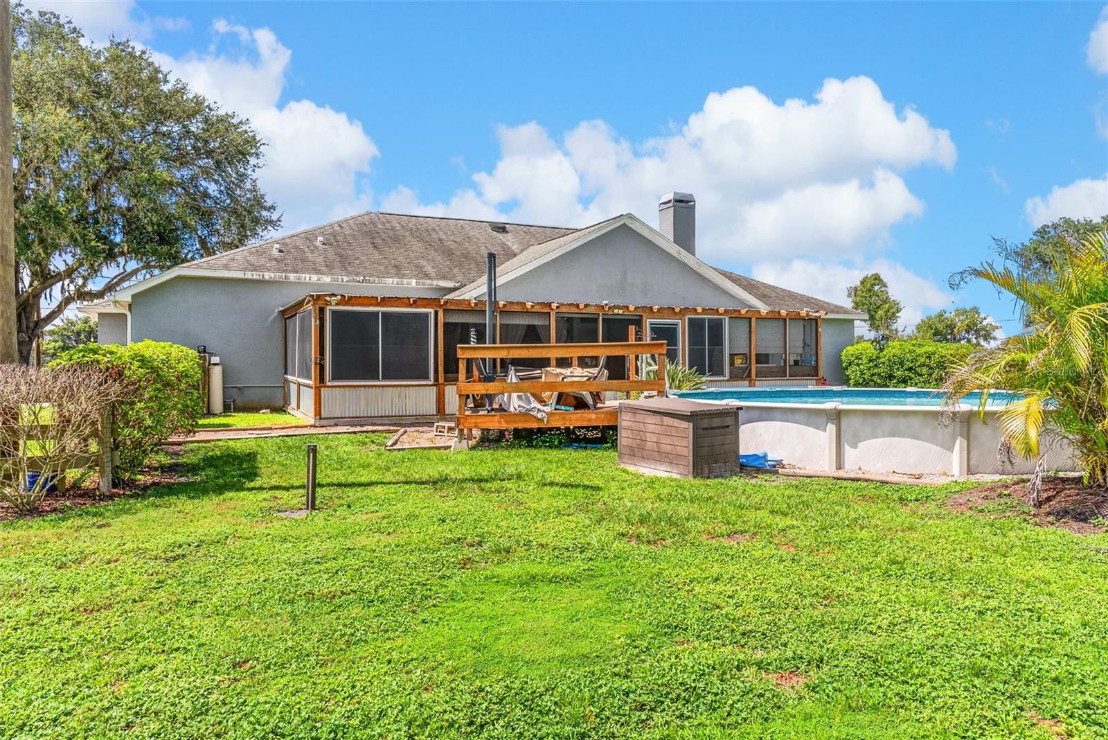 Welcome to your dream retreat nestled in the peaceful heart of Plant City! This beautifully updated 4-bedroom, 2-bathroom home sits on over an acre of land, offering the perfect blend of country living and contemporary style. Step inside to a spacious open-concept layout featuring elegant vinyl plank and tile flooring throughout. The split-bedroom design provides privacy and functionality, while the warm, inviting living room boasts a real wood-burning fireplace and French doors that open to a large screened lanai—perfect for quiet evenings or weekend gatherings. The stunning kitchen is a chef’s delight, complete with stainless steel appliances, custom Therma-foil cabinetry, mosaic tile backsplash, crown molding, and recessed lighting. Enjoy meals at the breakfast bar or host in the adjacent dining area filled with natural light. Your private owner’s suite is a true sanctuary, featuring a tray ceiling, dual vanities, a garden soaking tub, and a luxurious walk-in shower with dual shower heads. Three additional bedrooms and a full bath are thoughtfully placed on the opposite side of the home, perfect for family or guests. Step outside and fall in love with the expansive fenced yard, mature landscaping, and peaceful surroundings. The property includes a covered screened lanai, a storage shed, and plenty of room for gardening, play, or future projects. With no HOA, this is true freedom to live how you want. With a sizable lot, modern systems, and thoughtful outdoor structures, this property presents a rare combination of flexibility, comfort, and equity potential.