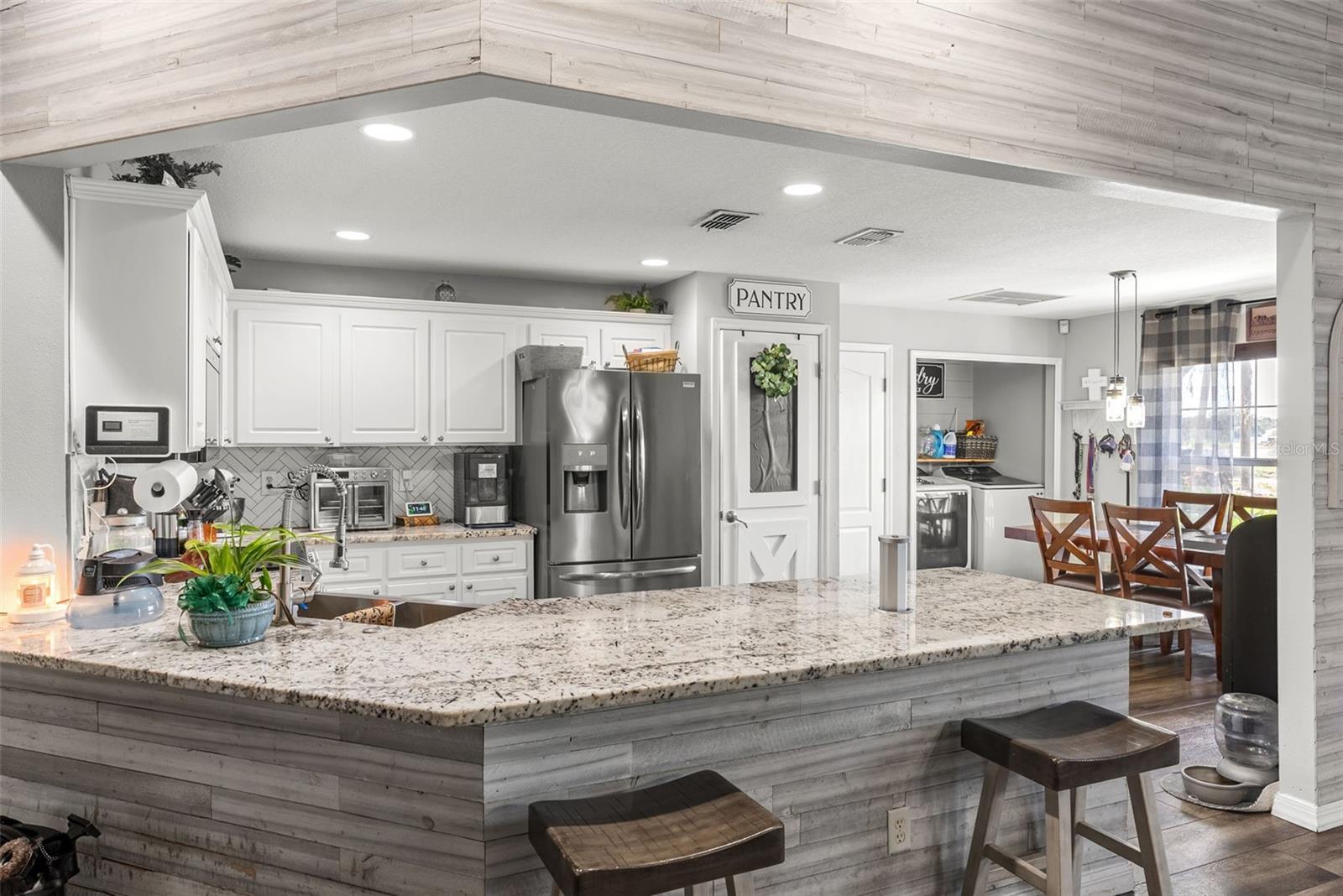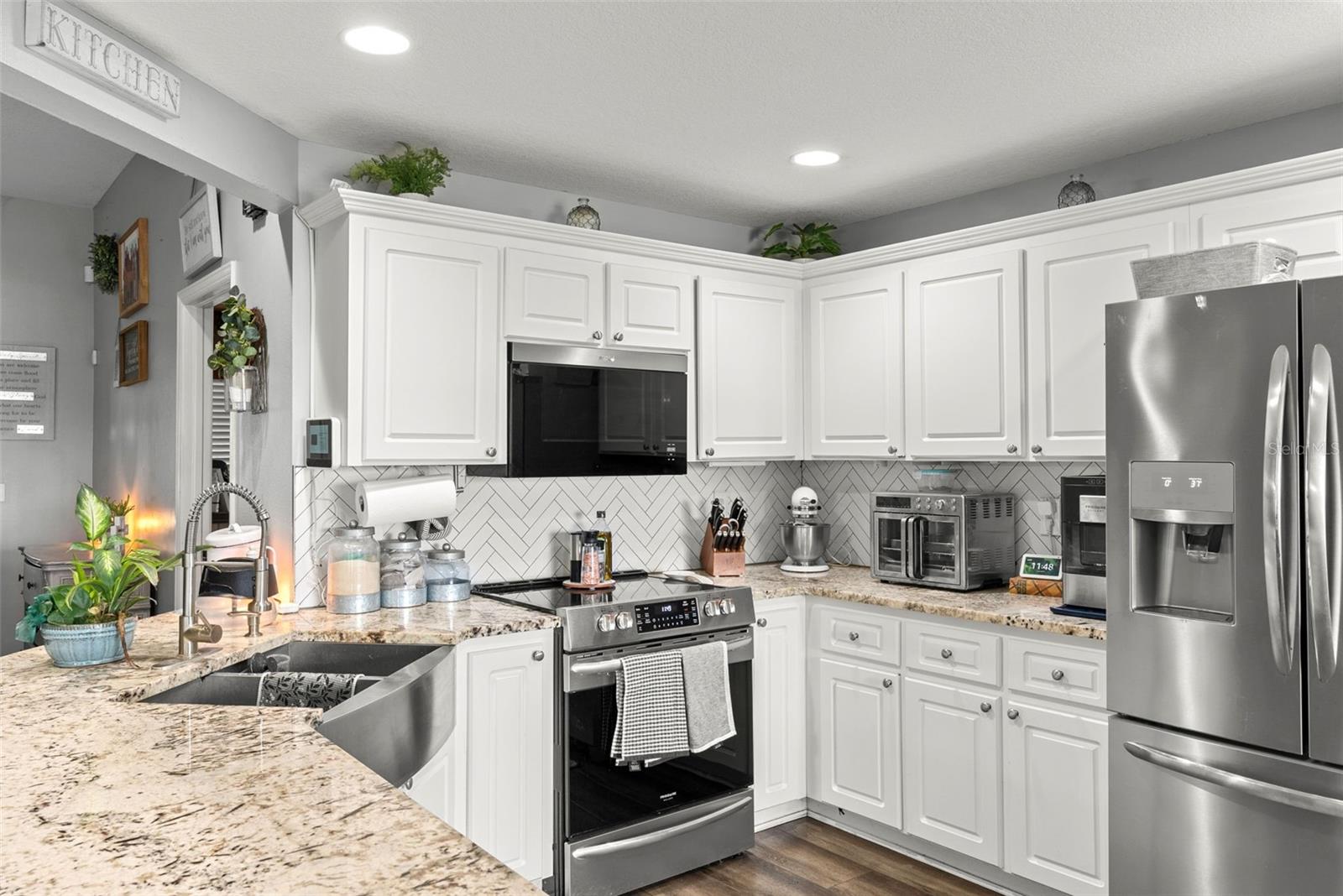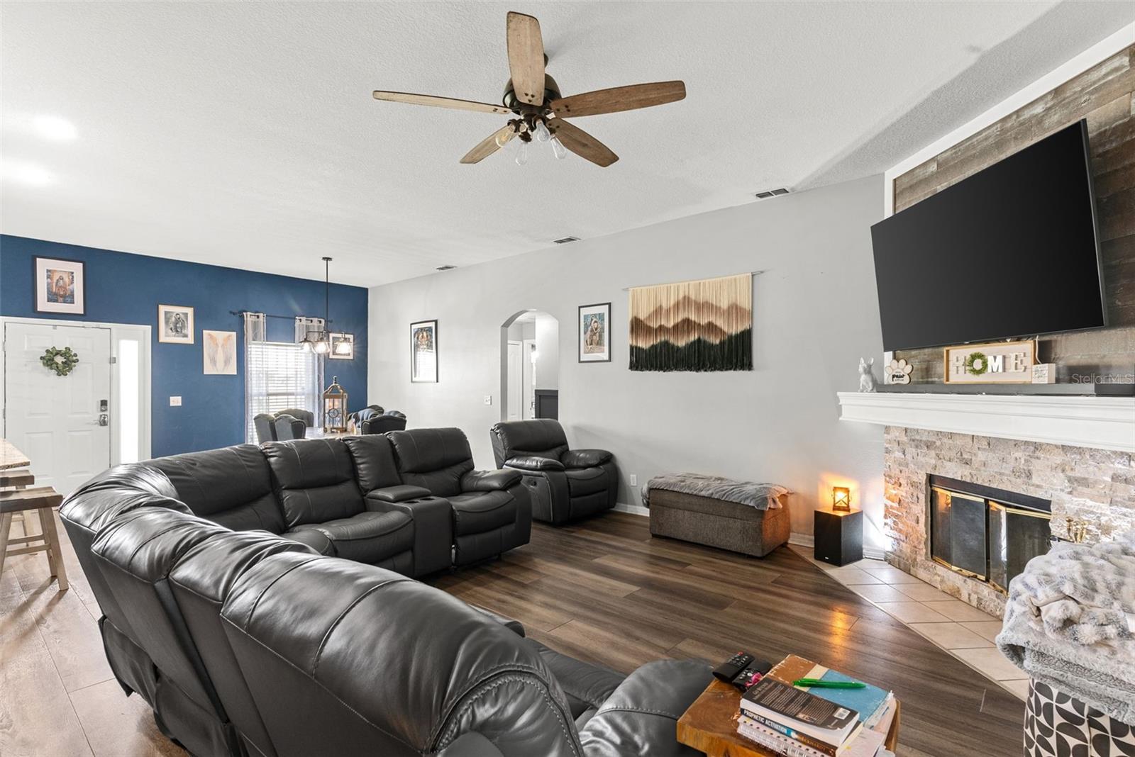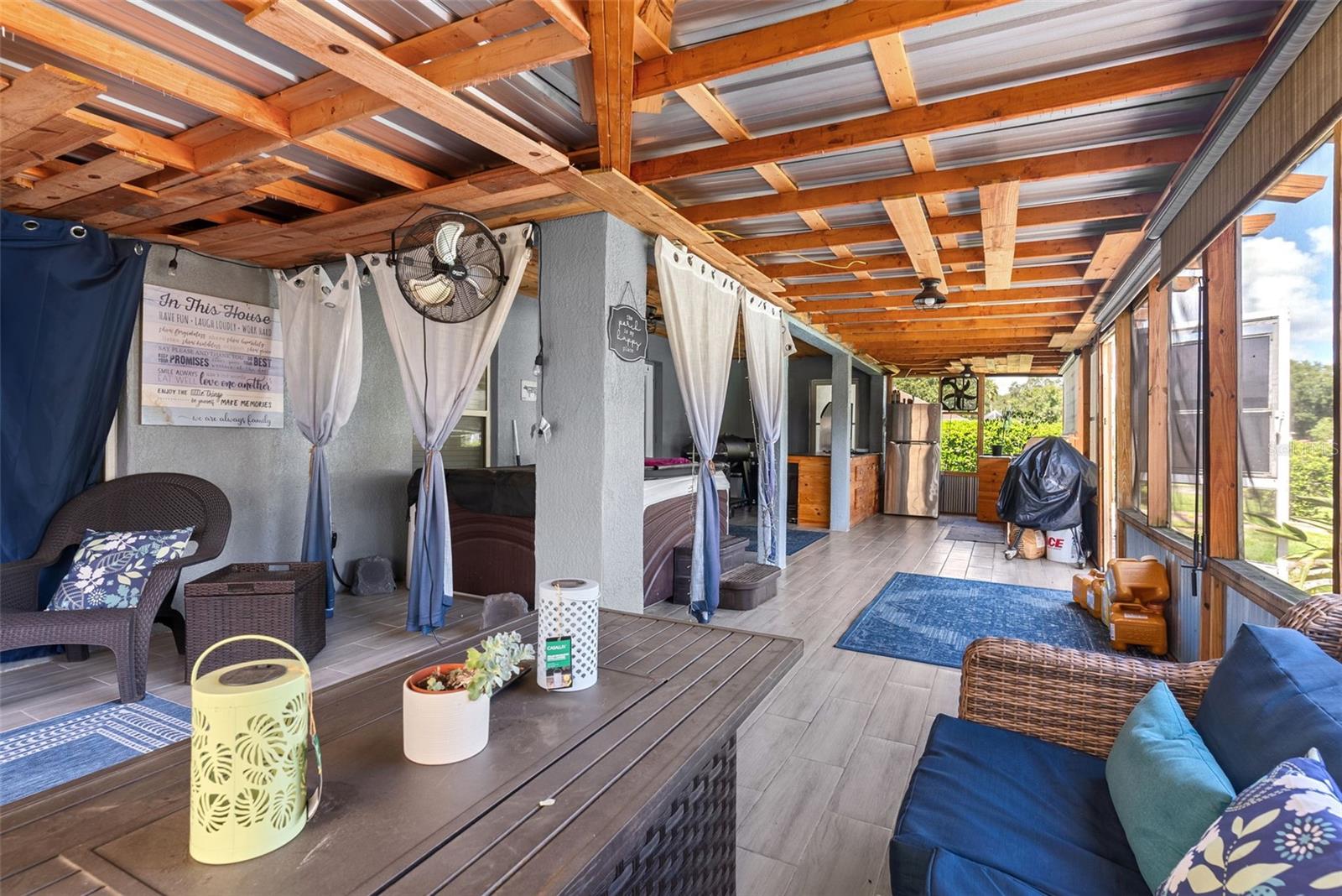 Welcome to your dream retreat nestled in the peaceful heart of Plant City! This beautifully updated 4-bedroom, 2-bathroom home sits on over an acre of land, offering the perfect blend of country living and contemporary style. Step inside to a spacious open-concept layout featuring elegant vinyl plank and tile flooring throughout. The split-bedroom design provides privacy and functionality, while the warm, inviting living room boasts a real wood-burning fireplace and French doors that open to a large screened lanai—perfect for quiet evenings or weekend gatherings. The stunning kitchen is a chef’s delight, complete with stainless steel appliances, custom Therma-foil cabinetry, mosaic tile backsplash, crown molding, and recessed lighting. Enjoy meals at the breakfast bar or host in the adjacent dining area filled with natural light. Your private owner’s suite is a true sanctuary, featuring a tray ceiling, dual vanities, a garden soaking tub, and a luxurious walk-in shower with dual shower heads. Three additional bedrooms and a full bath are thoughtfully placed on the opposite side of the home, perfect for family or guests. Step outside and fall in love with the expansive fenced yard, mature landscaping, and peaceful surroundings. The property includes a covered screened lanai, a storage shed, and plenty of room for gardening, play, or future projects. With no HOA, this is true freedom to live how you want. With a sizable lot, modern systems, and thoughtful outdoor structures, this property presents a rare combination of flexibility, comfort, and equity potential.