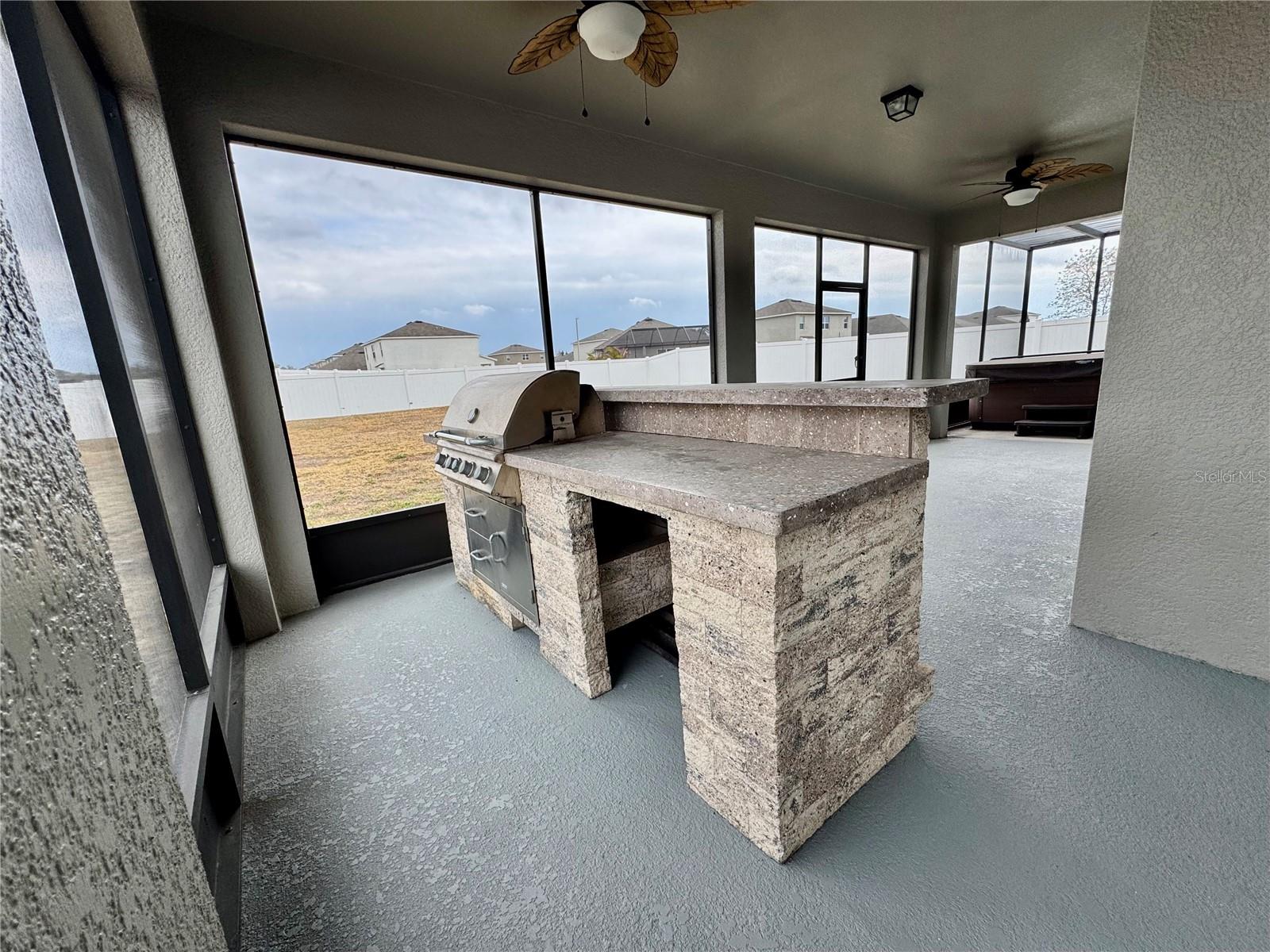 Welcome to Walden Pointe! 5 bedroom 2.5 bath home with open floor plan. Tile on main floor and new carpet upstairs. Fresh paint throughout. Exterior has also been freshly painted. Kitchen has granite counters and SS appliances. Center island with breakfast bar. Extra cabinets and counter space. Walk in pantry. Large primary bedroom with 2 walk in closets. En suite bathroom with granite counters, dual sinks, soaking tub and walk in shower. Family room sliders open to screened lanai with built in grill and above ground hot tub overlooking the fenced back yard. Perfect for entertaining!