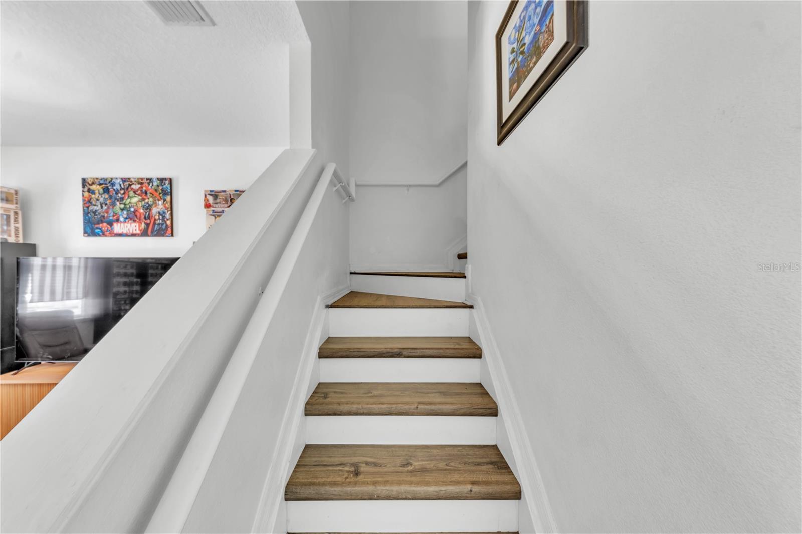 Private Pond-View Townhome in a Peaceful Gated Community. If you’ve been waiting for a townhome that offers privacy, nature views, and key updates already completed, this is the one. This spacious 3-bedroom, 2.5-bath townhome with 1,649 sq ft is perfectly positioned with no rear neighbors and a relaxing pond view, creating a peaceful backdrop rarely available in the community. Step inside to find high ceilings and an open, flexible layout designed for everyday living. The first-floor features durable wood-plank ceramic tile flooring, while the second floor showcases high-grade wood-plank laminate, giving the home a warm, updated feel throughout. The front flex space can easily serve as a formal dining area, home office, den, or playroom depending on your needs. Major improvements have already been taken care of, including a new roof installed in 2024 and fresh exterior paint completed in 2025, providing peace of mind for the next owner. Updated vintage-style lighting fixtures and modern ceiling fans add character and style to the living spaces. Located in a quiet, tree-lined gated community surrounded by lush woods, residents enjoy a serene setting while still being just minutes from shopping, dining, and everyday conveniences. Whether you're looking for a primary residence, seasonal home, or investment opportunity, this townhome offers space, privacy, and value in a desirable location.