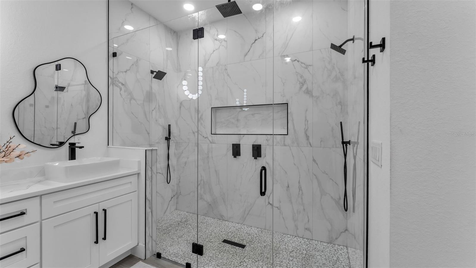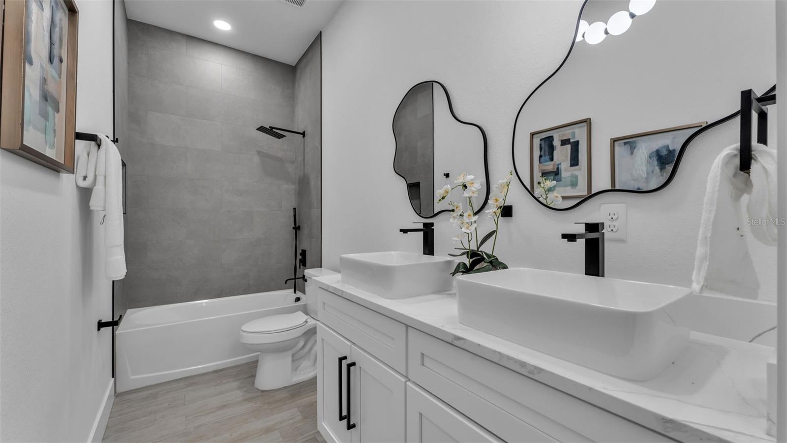Set on a corner lot in Plant City, this newly built 4-bedroom, 3-bathroom home brings together modern design, clean lines, and a fresh, move-in-ready feel. From the moment you arrive, the three-car garage, expansive driveway, and mature trees create a sense of space while the home itself reflects thoughtful, contemporary construction. Inside, the main living area feels open and comfortable, with exposed wood beams, recessed lighting, and a statement ceiling fan. A custom accent wall with panel molding and a sleek linear fireplace adds a modern focal point, while the three-panel sliding glass door leads straight to the backyard, creating a natural connection to outdoor living. Just off the foyer, a dedicated office or flex room with French door entry provides a quiet, private space for working from home, studying, or additional living needs. The kitchen reflects today’s design preferences with a large center island, quartz countertops, sleek cabinetry, and modern pendant lighting. A built-in oven, spacious refrigerator, and walk-in pantry keep everything organized, while a secondary prep area with its own sink adds extra convenience for everyday use or entertaining. The primary bedroom is designed for comfort with space for a sitting area, wide plank flooring, and views of the yard. Sliding barn-style doors lead into a well-finished en-suite bathroom with dual vessel sinks, modern fixtures, quartz counters, and a tub and shower combination with floor-to-ceiling tile and a rainfall showerhead. The suite also includes separate his and her closets along with an additional linen closet for added storage. The additional bedrooms are well-sized with clean finishes and ceiling fans, and the bathrooms continue the home’s modern style with updated vanities, vessel sinks, and tiled walk-in showers with glass enclosures. A mud space with built-in hooks and a bench adds everyday function right where you need it, while the laundry room is set up with a utility sink and space for full-size appliances. With newer construction, modern finishes, and a layout that stands out from older properties in the area. Located in Plant City with easy access to Lakeland, Tampa, and major highways, this home offers the perfect balance of privacy and convenience. Nearby parks like Ellis-Methvin Park and McIntosh Preserve provide great options for outdoor activities, while local shops, dining, and community events like the Florida Strawberry Festival are just minutes away. If you’ve been searching for a new construction home with land, modern design, and no HOA in Plant City, this one stands out.