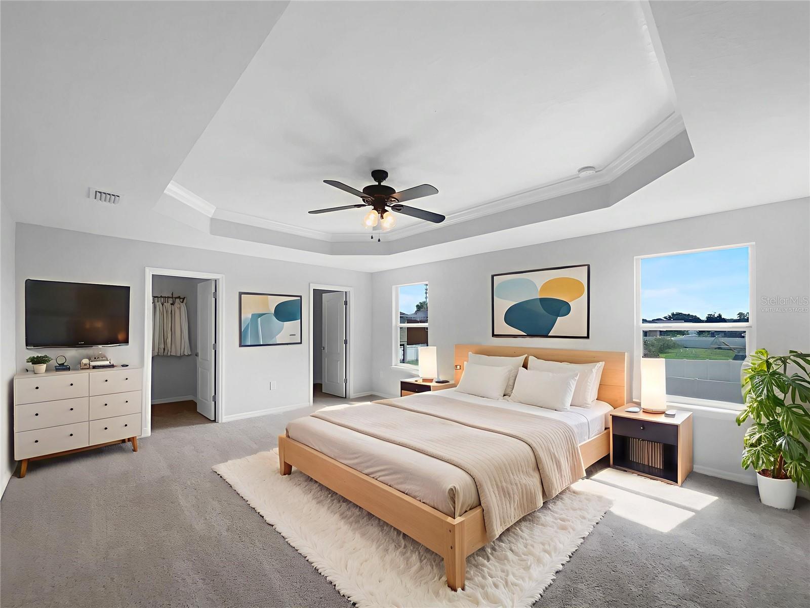 One or more photo(s) has been virtually staged. Welcome to this beautifully updated home. The interior boasts a neutral color paint scheme and fresh paint throughout. The kitchen is a chef's dream with all stainless steel appliances, and a center island. The primary bedroom features a walk-in closet and an en-suite bathroom with double sinks, a separate tub, and shower. The home also has partial flooring replacement for a fresh, modern look. Outside, enjoy a covered patio in the fenced-in backyard, perfect for entertaining or relaxing. The exterior of the home has also been freshly painted, adding to its curb appeal. This home is a must-see! Included 100-Day Home Warranty with buyer activation