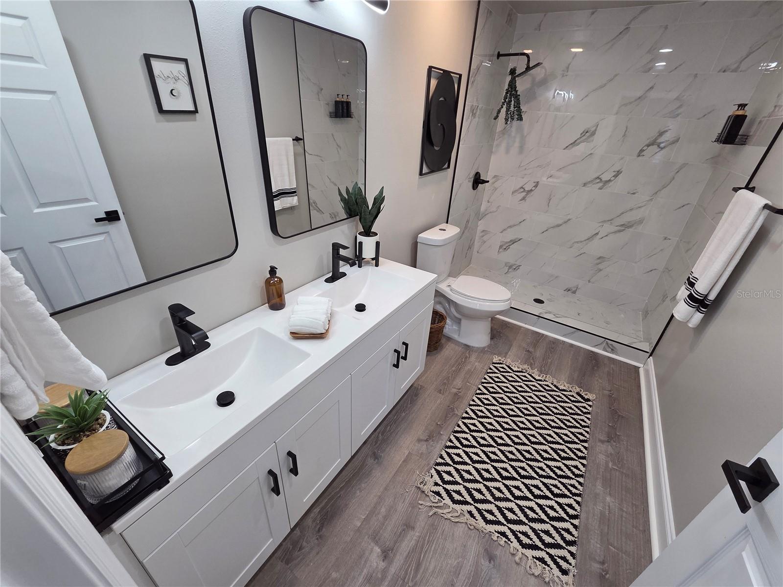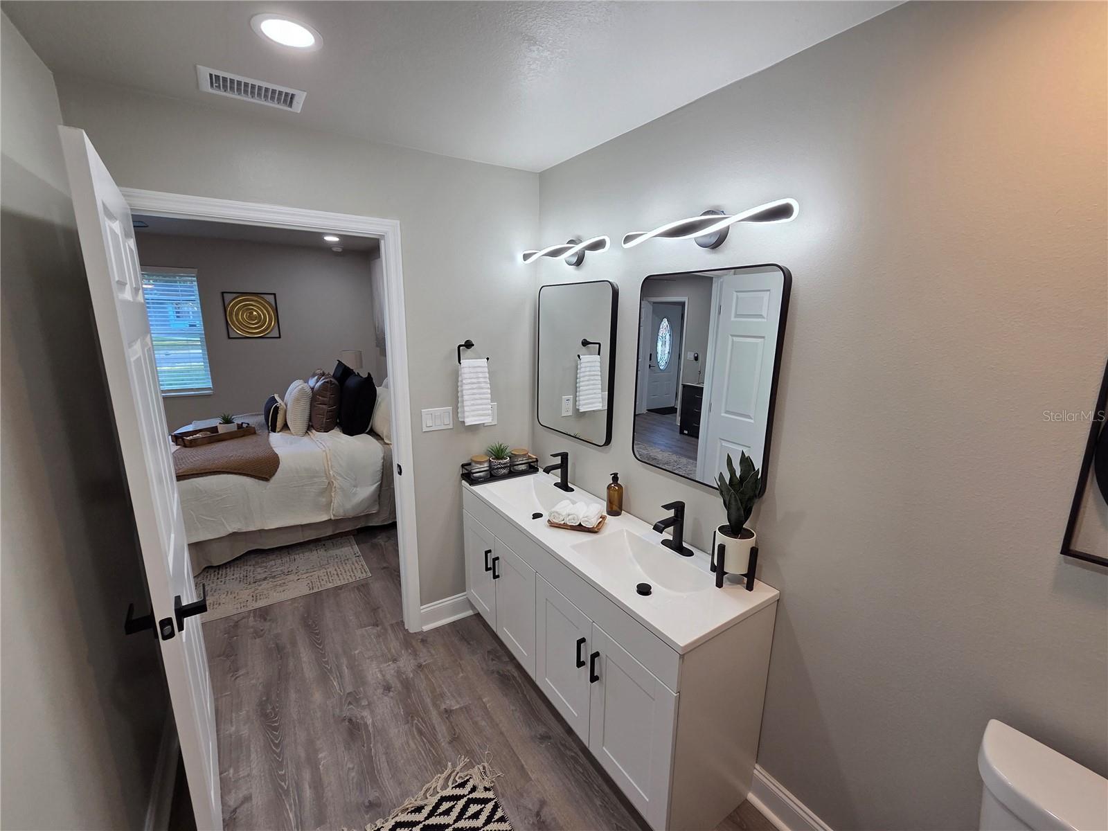 Honey, stop the car! This is the one you’ve been waiting for. Welcome to a masterpiece of modern living at 1106 Valencia Rd, where "new" is an understatement. The previous home was knocked down and the only existing parts that was used was part of the existing slab and 30% of the existing trusses. Thats it!!! It is now a 3 bathroom 2 bedroom home that has been completely rebuilt using only the finest materials. Step inside to a stunning, custom kitchen featuring sleek stainless steel appliances, barn pantry door, premium granite countertops, and a designer backsplash. The layout flows seamlessly into the sun-lit living space, offering plenty of room for entertaining. Relax and enjoy the open atmosphere where you can chat with the cook in the adjacent kitchen. The magnificent Master Suite serves as a private retreat, boasting a walk-in closet and a spa-inspired bathroom with dual sinks and a custom tile shower. Major upgrades include: Brand New: Roof, HVAC, Windows, Plumbing, Electrical, Concrete Driveway and Tankless Water Heater and more!!! Fresh Look: New interior/exterior paint, doors and trim, all new lighting, custom finishes throughout. Bonus: Interior large laundry room, a private fenced backyard and a small basketball court! In addition New landscaping including new sod mulch and more!
