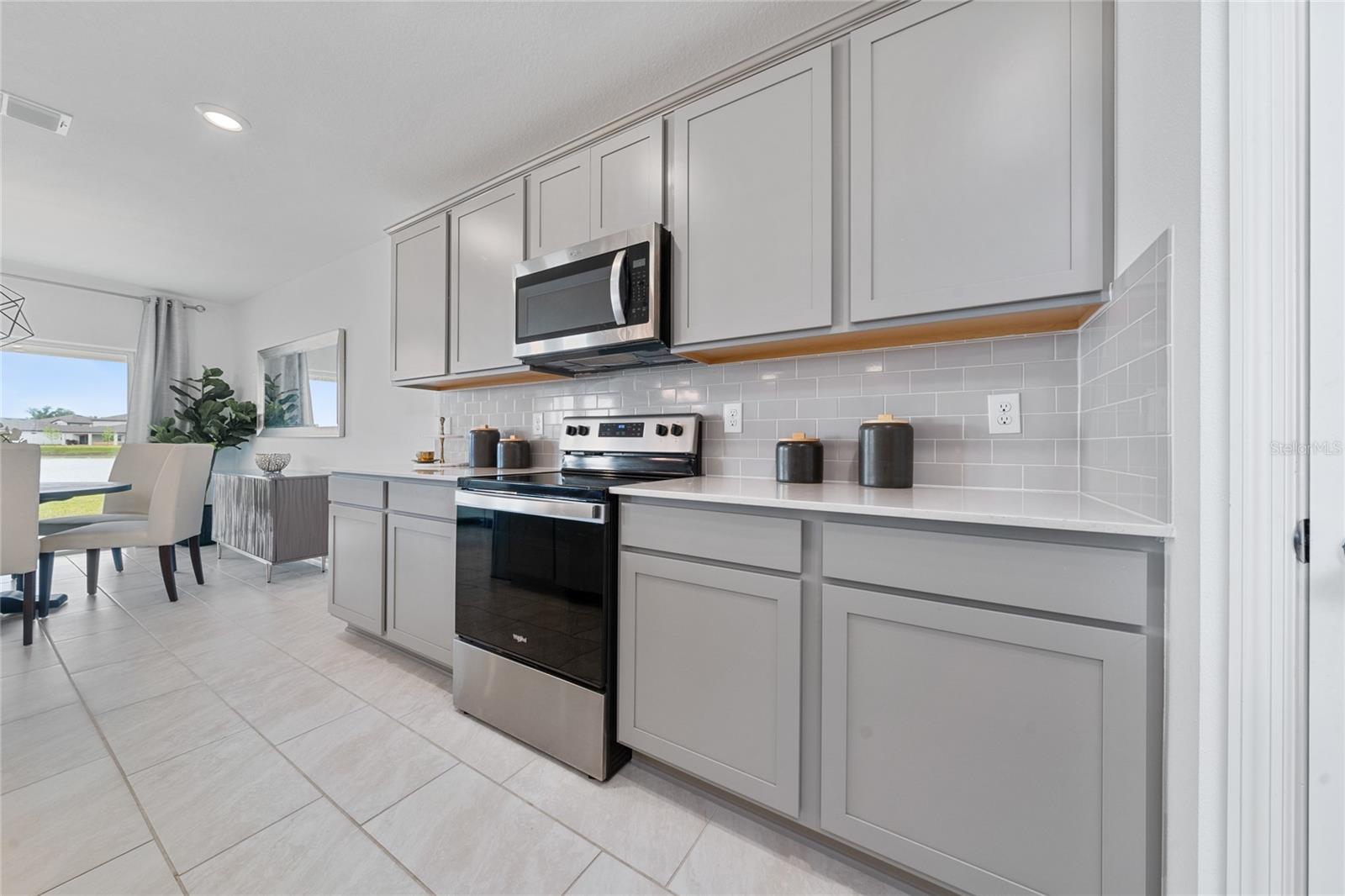 THE HOUSE OF YOUR DREAMS, you have to see this spectacular Centex Wakefield model home, unique in this community for sale. the house feature 4 Bedrooms and 3.5 Bathrooms. Community of North Park Isle! Centrally located in Plant City, minutes from I-4, North Park Isle offers easy access to the Greater Tampa Bay Area, Lakeland, and Orlando. Plus, the community’s resort-style amenities include a clubhouse, pool, playground, kayak launch and more. Set on a highly desired, water-view homesite, this home has all the space you've been looking for. The designer kitchen showcases a center island with a large single bowl sink, gray cabinets, and quartz countertops with a 3"x6" gray subway tile backsplash, Whirlpool stainless steel appliances including, dishwasher, microwave, refrigerator and range. The bathrooms have matching gray cabinets and quartz countertops, comfort height commodes, a walk-in shower, and dual sinks in the Owner's bath. There is 12”x24” floor tile in the main living areas, baths, and laundry room, and stain-resistant carpet in the bedrooms. This home makes great use of space with a versatile flex room, oversized loft, an additional 3rd full bath off the 4th bedroom, walk-in closets in the Owner’s suite, bedroom, 3 and bedroom 4, a convenient laundry room, storage under the stairs, and an upgraded covered lanai. Additional upgrades include 4 LED downlights in the gathering room,