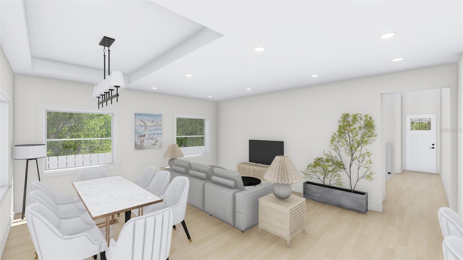 Under Construction. Sensationally Gorgeous BRAND-NEW Construction Home with Gourmet Kitchen and Office! Location: Conveniently situated in a highly coveted area just minutes from Publix and I-4. This 3+BR/2.5BA property exudes a luxurious aesthetic with trending styles and upscale finishes. The exterior, freshly landscaped to perfection, welcomes visitors with a covered front porch, a designer color scheme, and farmhouse-inspired light fixtures. The thoughtfully planned interior features neutral tones with a contemporary edge and waterproof luxury vinyl plank flooring in “Vesinet Oak,” creating consistency throughout. The home blends traditional spaces with an organically flowing layout, including a spacious living room, dedicated office, and gourmet eat-in kitchen. The chef’s paradise boasts quartz countertops, modern shaker cabinetry, a large breakfast bar island, and an adjoining dining room. Outdoor Space: Sliding glass doors lead to the covered lanai, perfect for enjoying the Floridian climate. The private backyard offers ample space for games, gardening, and grilling. Primary Bedroom: Designed for restful sleep and blissful mornings, it features sliding glass doors to the covered lanai, tray ceilings, dual walk-in closets, and a spa-like en suite with dual sinks, premium finishes, and a generously-sized step-in shower. Additional Bedrooms: Guests will appreciate the cozy accommodations of the two extra bedrooms and full hallway bathroom. The office can also serve as a fourth bedroom. Additional Features: Attached one-car garage Cul-de-sac lot Laundry room Powder room Stained concrete (porch and lanai) Multiple ceiling fans Proximity: Just a 20-mile drive to Downtown Tampa, close to shops, restaurants, schools, entertainment, and medical facilities. Live your best life with a BRAND-NEW home in Plant City!