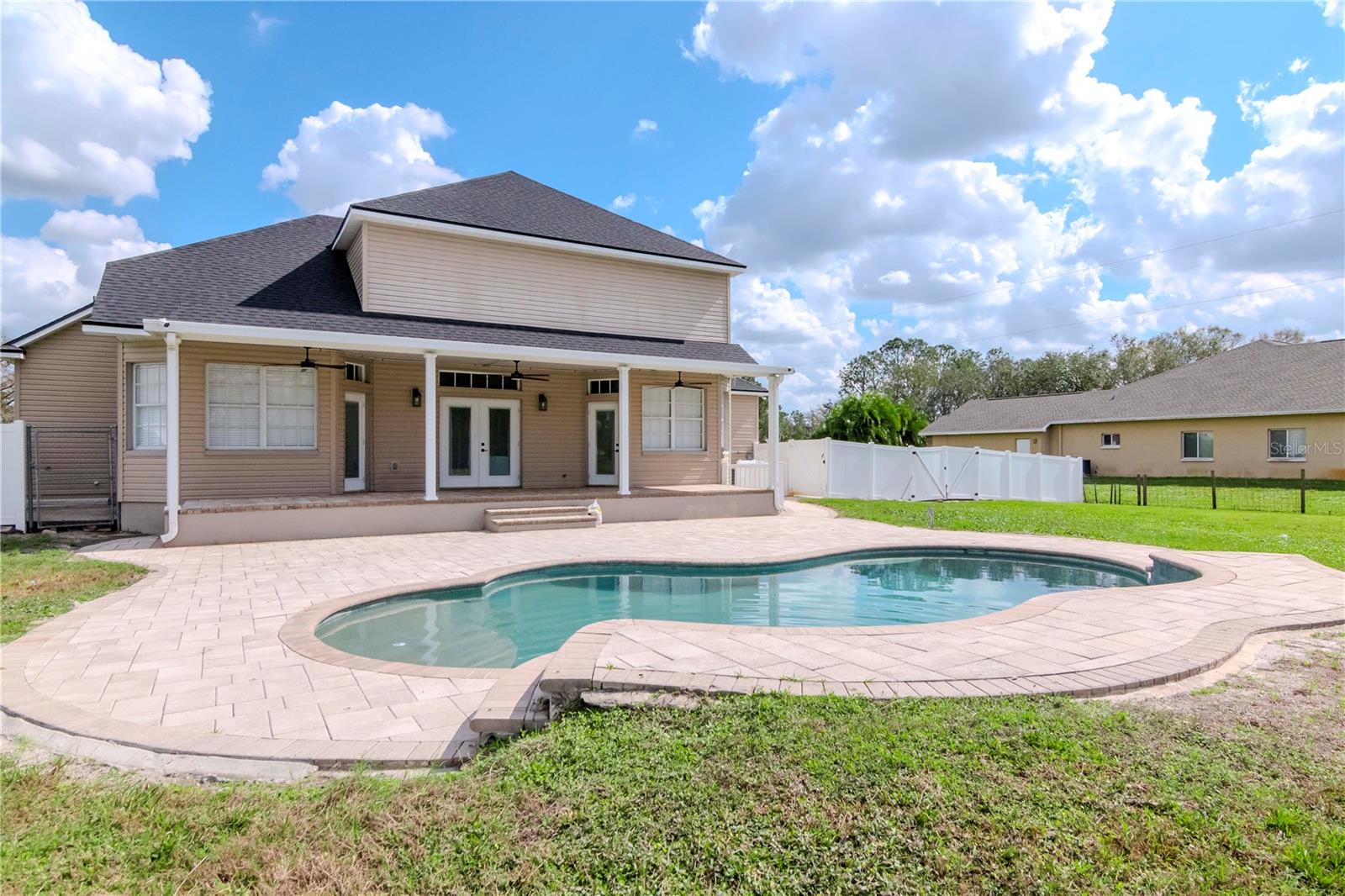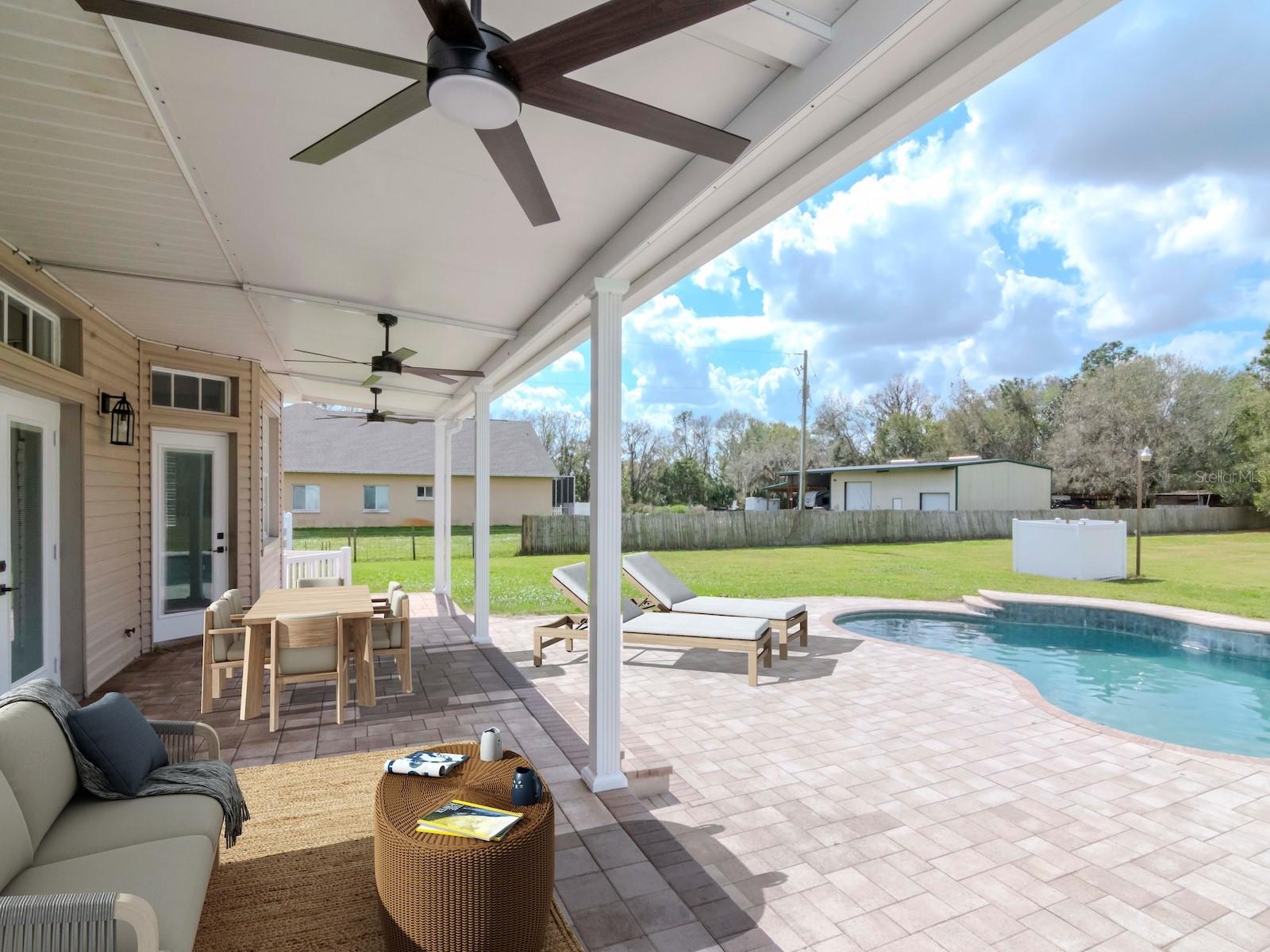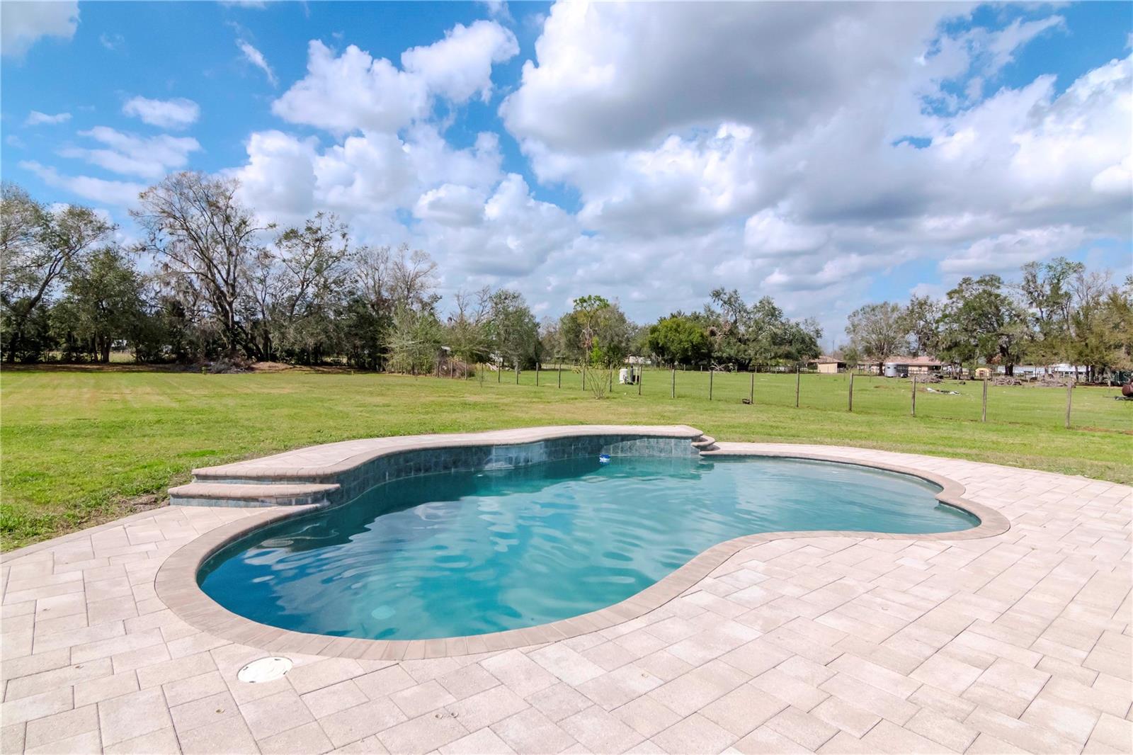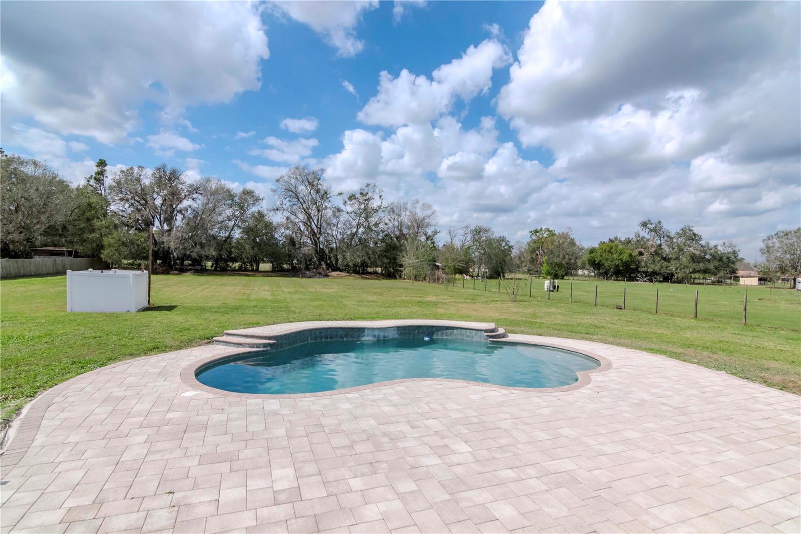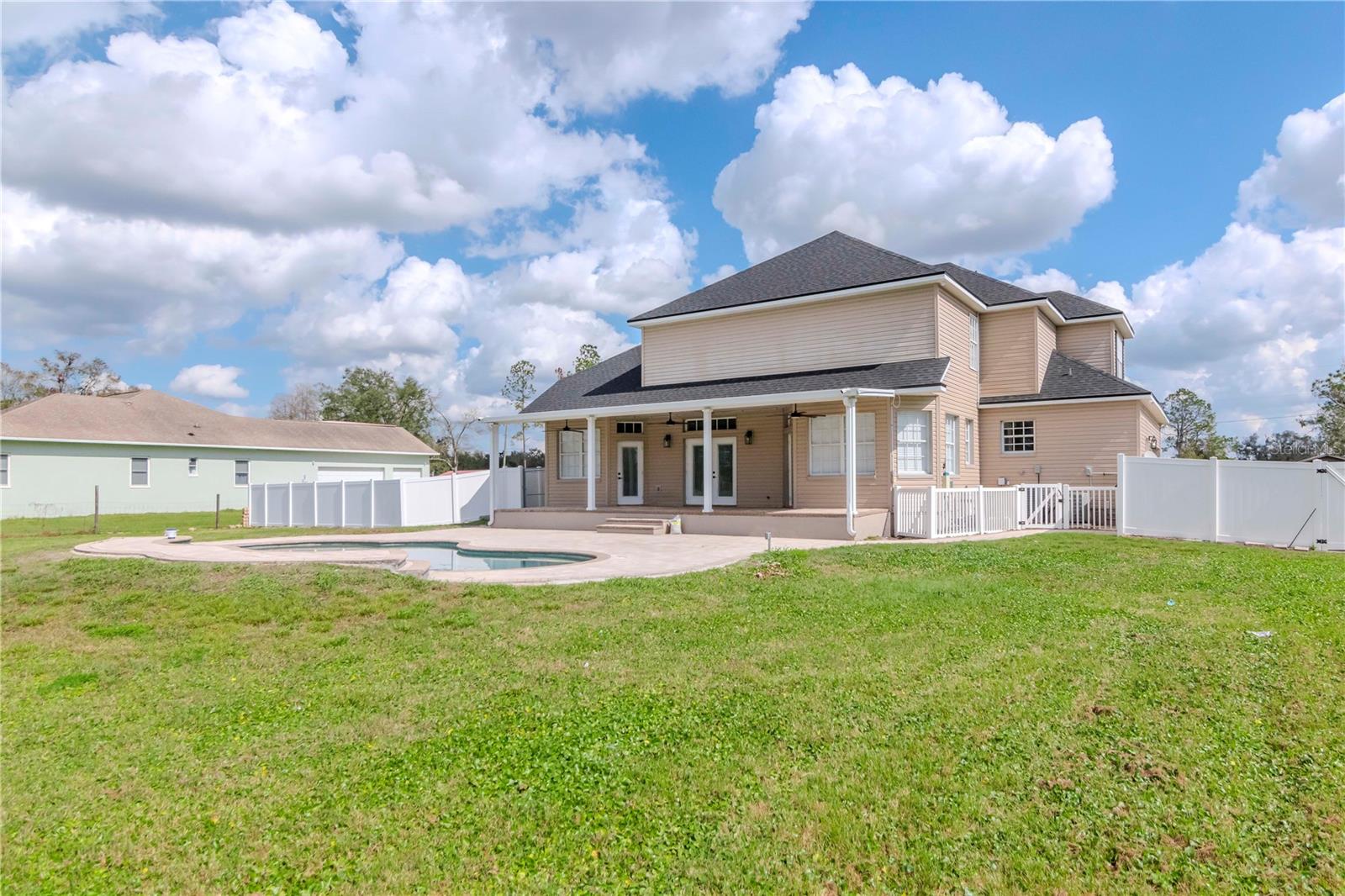 One or more photo(s) has been virtually staged. Discover this stunning 5-bedroom, 3-bathroom pool home, beautifully updated and situated on 1.4 acres, perfect for the whole family. From the moment you arrive via the spacious circular driveway, you'll appreciate the meticulous attention to detail throughout the property. Step into the welcoming foyer and immediately feel at home as you envision the endless possibilities this expansive residence offers. Enjoy multiple dining options with a formal dining room and a convenient eat-in kitchen counter, ideal for family meals, friendly gatherings, and festive celebrations. The generous family room opens seamlessly to a vast covered patio and pool deck, creating the perfect space for relaxing or entertaining. Need more room? The sprawling backyard is perfect for outdoor games and activities. When it’s just family time, the open layout between the kitchen and family room provides a cozy atmosphere for everyday living. And when you seek privacy, the five spacious bedrooms and three full bathrooms offer peaceful retreats for everyone. This is a must-see for anyone seeking a large home with ample space to entertain, play, and accommodate recreational vehicles or extra parking. Homes in the sought-after Cork community rarely become available, so don’t miss this opportunity! Call today to schedule a tour of your new home—you’ll be glad you did!