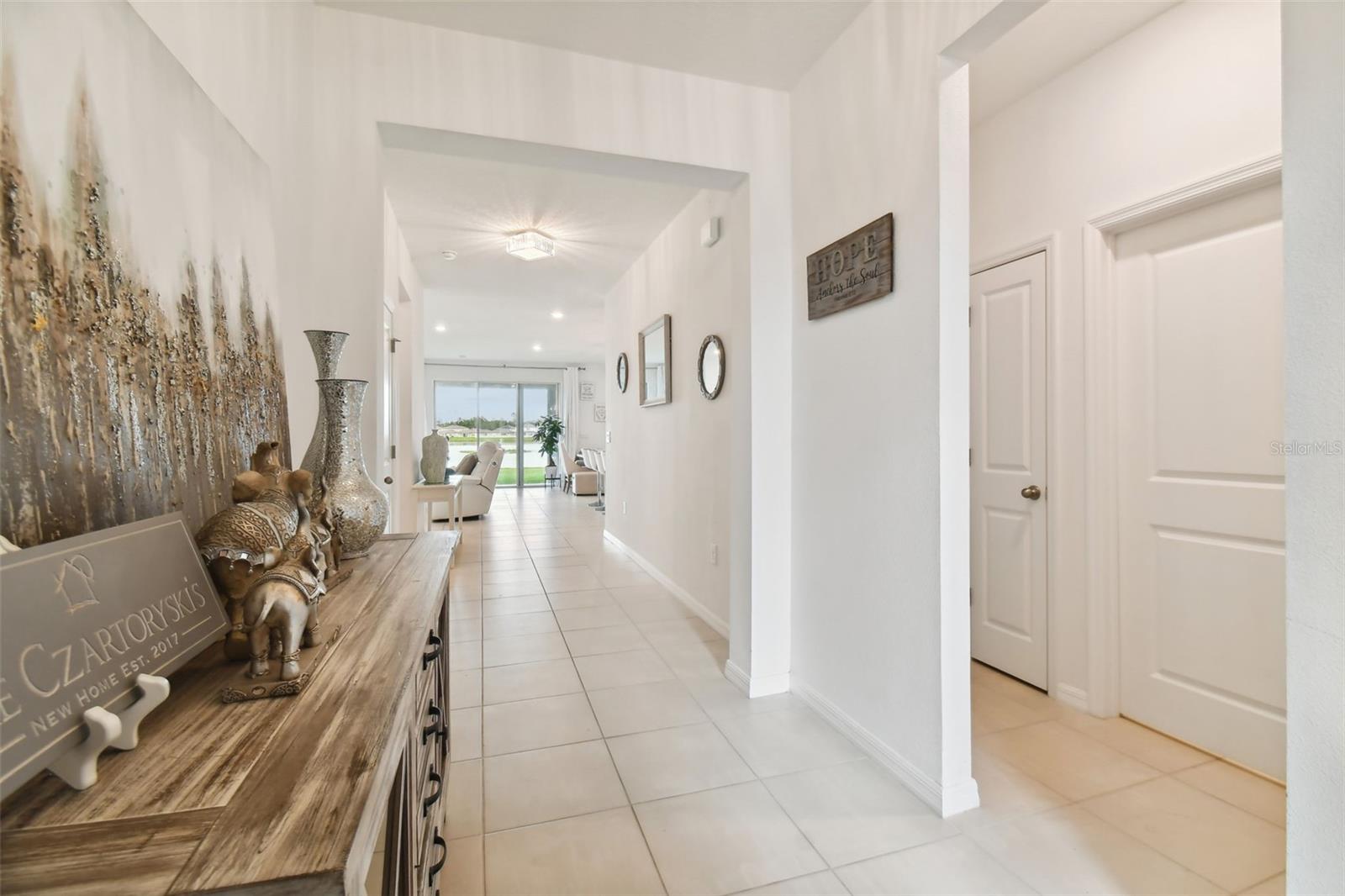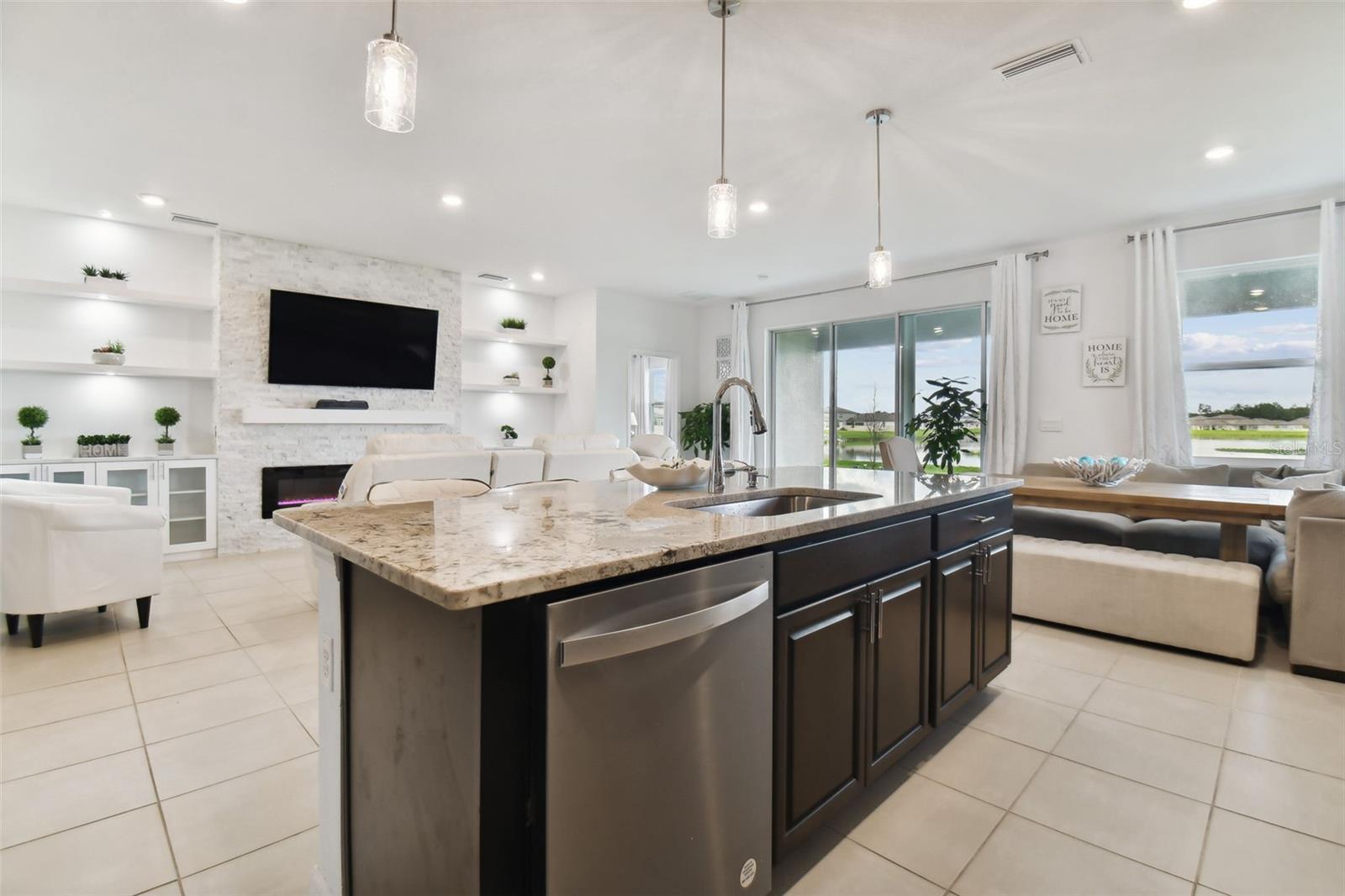 GORGOUS WATER VIEW HOME AWAITS YOU AT THIS TROPICAL OASIS!!! Here at this home, you will discover modern luxury and serene waterfront living in this stunning single-story home located in the highly desirable North Park Isles community of Plant City. Newly Built in 2022, this beautifully upgraded home offers high-end finishes, elegant touches, and a private kayak launch—plus, it includes a brand-new kayak so you can start enjoying the water right away! The popular Lantana model offers a spacious open floor plan of 4 Bedrooms 2 1/2 Baths and a 2-car garage. Step inside, and you’ll find three spacious bedrooms in the front of the home, offering comfort and privacy. The primary suite is tucked away at the rear, providing a peaceful retreat with a private en-suite bath. Enjoy your family and friends as you gather around in the main living area relaxing in front of your beautiful Stone Electric fireplace adding warmth and sophistication. Host a dinner party with your gourmet dish in your modern kitchen boasting in a stylish backsplash, wood cabinets, Granet countertop and elegant light fixtures. The primary bedroom has a beautiful water view and features a tray ceiling, and a spacious walk-in closet. Upgraded features includes a Glacier Bay water-efficient dual flush toilet, and a Kind Water Systems E-3000 Whole House Water Filter & Salt-Free Softener for cleaner, healthier water throughout the home. Epoxy-coated garage floor for a sleek and durable finish. Covered Lanai overlooking the grand water serene water view. Community amenities include a clubhouse, playground, basketball court and a resort style pool. Looking for a Prime location? North Park Isle is just a short drive to I-4, providing easy access to both Tampa and Orlando for work, entertainment, and travel. This meticulously upgraded waterfront home is move-in ready and waiting for you!