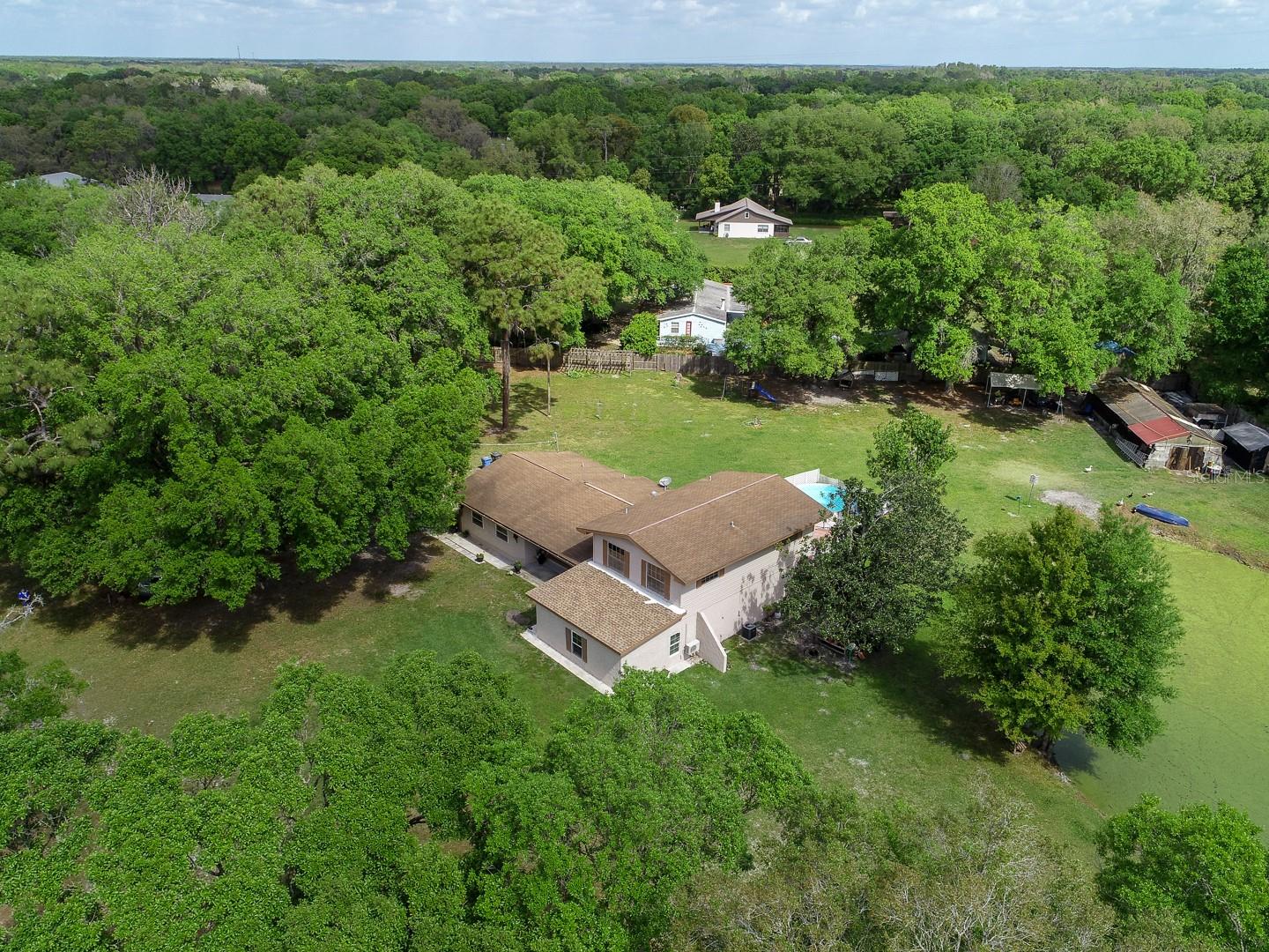 PRICE REDUCED!!! Discover the charm and elegance of this 5-bedroom, 3.5-bathroom Spanish-style home, complete with bonus room and modern upgrades, all nestled on 1.9 acres of cleared land. This corner lot property west of Plant City offers a pond, an 864 sq. ft. greenhouse, and two gated entrances, making it perfect for those seeking space, privacy, and versatility. Step inside to porcelain tile flooring throughout, accentuating the home's Spanish-inspired hardware, accents, and lighting. The downstairs master suite is a true retreat, featuring a spacious sitting/reading area, a walk-in closet, and a luxurious en-suite bathroom. A second master suite upstairs provides additional privacy and comfort. Enjoy multiple living spaces, including a formal living and dining area, step-down family room, study, and an oversized bonus room. The eat-in kitchen is well-equipped for entertaining, while the laundry room offers a separate mud/work/storage area for added convenience. The outdoor lanai overlooks the expansive backyard, providing the perfect setting for relaxation or entertaining. Bring your RVs, boats, or horses, as there's ample space and a parking pad. The fully functional greenhouse is equipped with power and water, ideal for gardening enthusiasts. Additional features include a brand-new roof, two A/C units, an electric water heater, well and septic for lower utility costs, and a solid concrete structure with professional, fully permitted upgrades. Conveniently located just minutes from McIntosh and I-4, this home offers the perfect blend of country living with easy city access. Sold AS-IS for seller convenience. Room sizes are approximate. Don’t miss this rare opportunity to own a move-in-ready Spanish-style estate in the heart of suburban Plant City!
