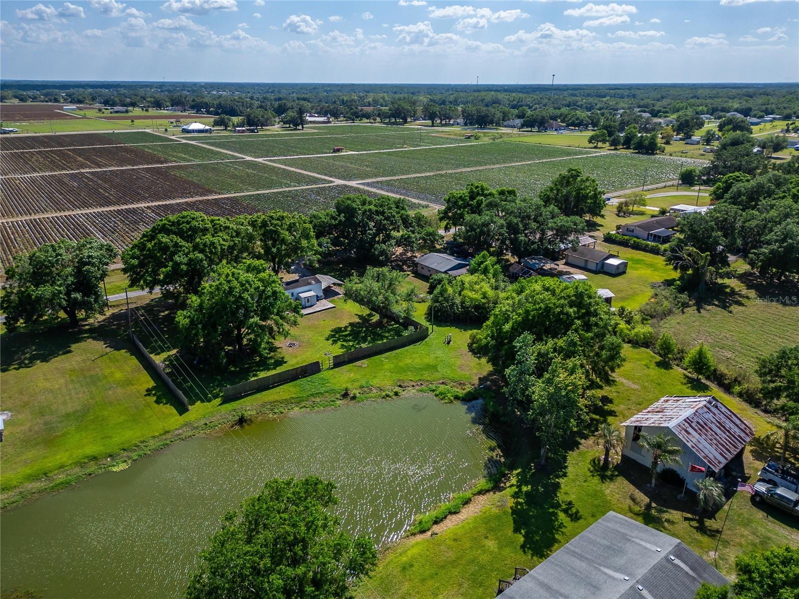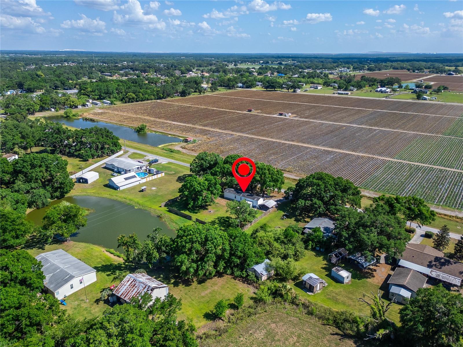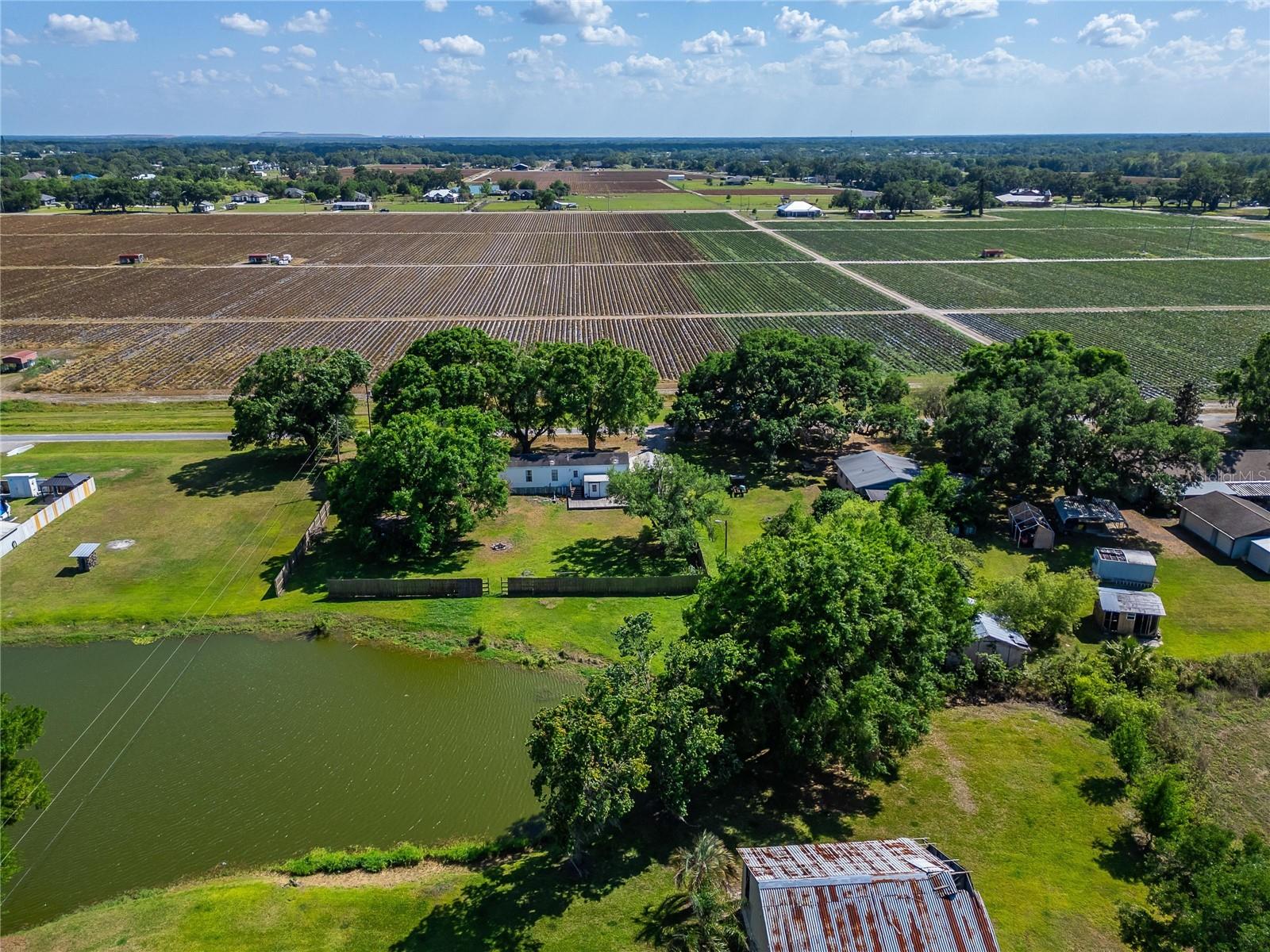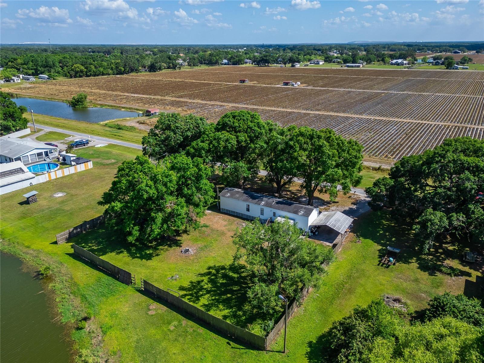PRICE ADJUSTMENT -Escape to peaceful country living with this inviting 2-bedroom, 2-bath mobile home, ideally set just over an acre. The home offers a spacious open-concept living and dining area and a split-bedroom floor plan that provides added privacy. Just off the kitchen, you'll find a convenient indoor laundry area and a back door leading to a deck ideal for relaxing or enjoying your morning coffee. From the generous backyard, take in serene pond views, and enjoy the charm of a strawberry field from the oak-shaded front yard. The property also features two storage sheds and a 2 car carport, offering plenty of space for your tools, toys, or hobbies. Located just minutes from I-4, you'll have a quick and easy commute to Tampa and Lakeland.