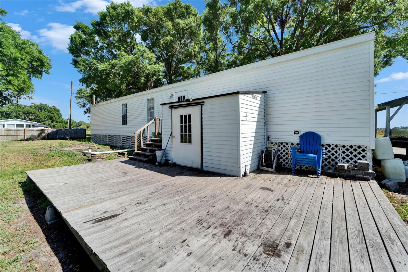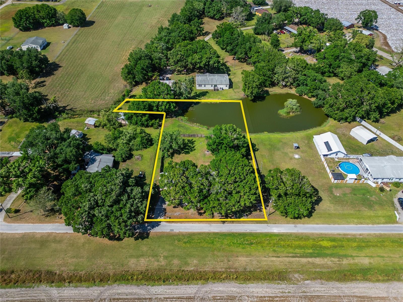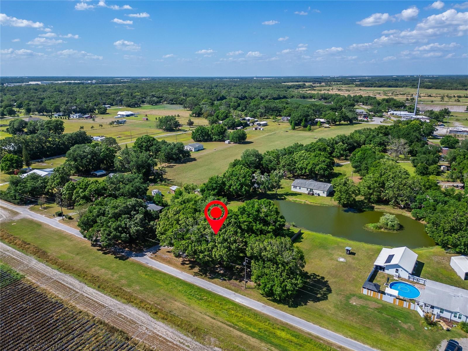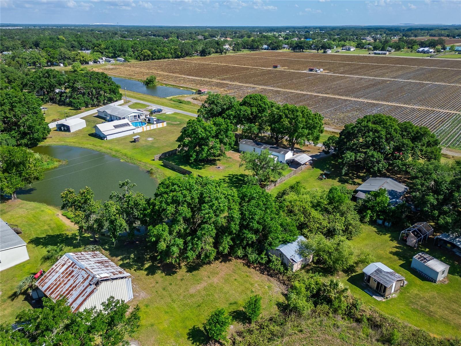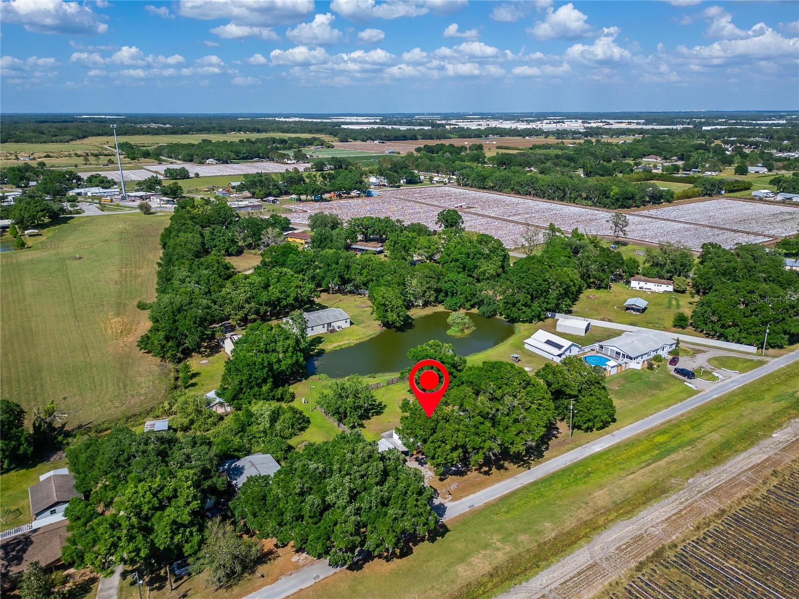 PRICE ADJUSTMENT -Escape to peaceful country living with this inviting 2-bedroom, 2-bath mobile home, ideally set just over an acre. The home offers a spacious open-concept living and dining area and a split-bedroom floor plan that provides added privacy. Just off the kitchen, you'll find a convenient indoor laundry area and a back door leading to a deck ideal for relaxing or enjoying your morning coffee. From the generous backyard, take in serene pond views, and enjoy the charm of a strawberry field from the oak-shaded front yard. The property also features two storage sheds and a 2 car carport, offering plenty of space for your tools, toys, or hobbies. Located just minutes from I-4, you'll have a quick and easy commute to Tampa and Lakeland.