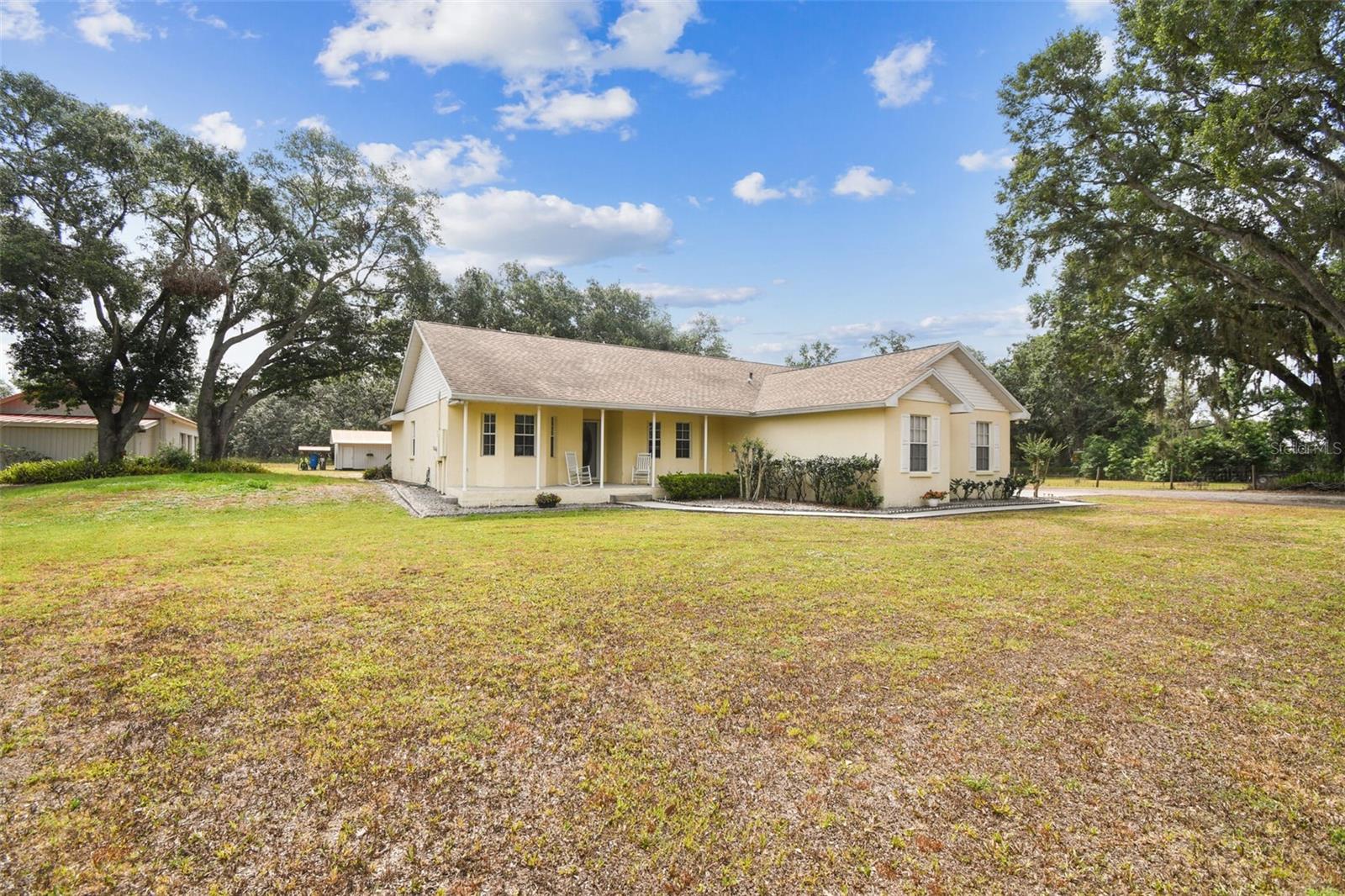 This charming property boasts three bedrooms, two bathrooms, and three additional outbuildings, making it perfectly suited for those seeking both space and versatility. Upon entering this lovely home, you are greeted by an open living room that exudes warmth and comfort. The fireplace is a centerpiece, ready to provide cozy evenings on those rare cold nights. The split floor plan offers privacy and convenience. One of the standout features of this property is the largest outbuilding, at 26 ft by 60 ft. This versatile space includes a car lift, a full kitchen, a half bath, and an office. Whether you are an auto enthusiast, a home business owner, or someone who simply needs extra space for hobbies, this outbuilding covers you. Set on just under 2 ½ acres, this property offers ample room for a variety of pursuits. Whether you envision raising animals, cultivating a lush garden, setting up a playset, or simply enjoying the expanse of nature, this land provides endless possibilities. The front part of the property is designated as wetlands, offering a serene natural habitat that enhances the beauty and tranquility of your surroundings. From the front porch, you’ll have the most stunning sunsets you have ever seen, casting vibrant colors over the strawberry fields across the street. This view is nothing short of magical and provides a daily reminder of the natural beauty that surrounds you. Despite its peaceful and private setting, the home is conveniently close to the excitement at Disney, relaxation on the beaches, or a shopping spree in the nearby outlets, and endless dining options. Less than 5 minutes to I4 and the new hospital in town! No sight unseen offers please.