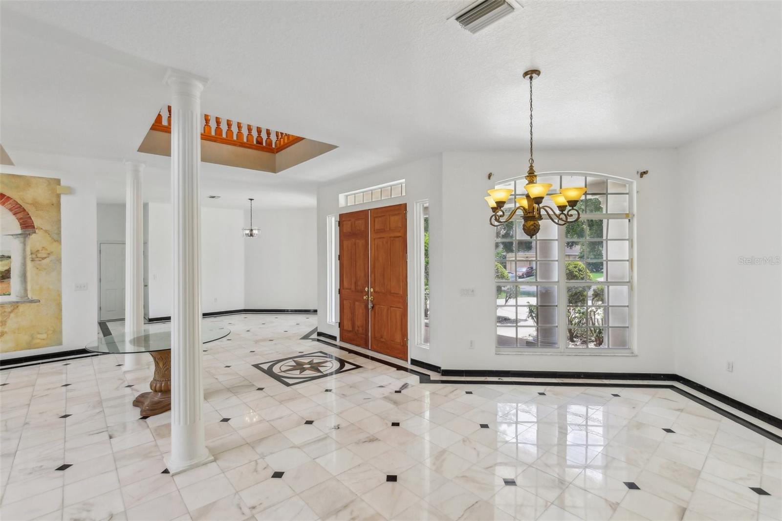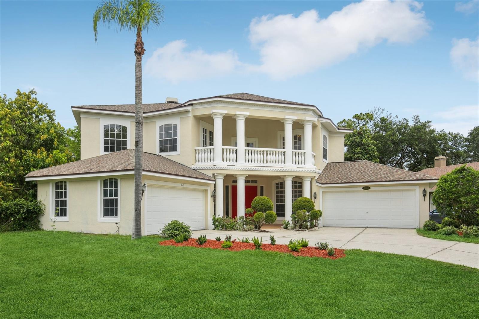 Step into timeless elegance in this stunning executive family home featuring five spacious bedrooms and four beautiful bathrooms and over 4500 sq ft of heated living space on .39 acre large corner lot with a gorgeous backyard! From the moment you enter, you’re greeted by a dramatic custom medallion entryway, soaring 22-foot ceilings, elegant columns, and handcrafted wood balusters framing a show stopping chandelier. This exceptional home was even featured in a Super Bowl commercial, a true testament to its grandeur. Designed with versatility and luxury in mind, this home is perfectly suited for large or multigenerational families. With multiple living areas, a large formal dining room, and an expansive breakfast nook that also serves as an additional dining space, the layout provides ample room for gatherings, entertaining, or quiet moments of retreat. Enjoy the rare convenience of three master suites—one located on the main floor for easy access, and two upstairs, offering ideal accommodations for parents, guests, or extended family members seeking privacy. The home showcases refined finishes throughout, including real wood flooring, custom marble flooring with intricate granite inlays, a wood burning fireplace framed by a French Louis XV marble mantle, along with a James Moder Princess chandelier, adding a luxurious touch to the main living area. The chef-inspired kitchen has granite countertops, stainless steel appliances, dual sinks, a large center island, and upgraded herringbone wood tile flooring. A sun-drenched eat-in area with expansive windows provides a picturesque view of the covered pool patio. Entertain effortlessly with a triple sliding glass doorthat opens to a covered lanai and sparkling pool—perfect for weekend barbecues or tranquil evening swims. Each bathroom is thoughtfully designed with luxury finishes like granite, marble, and travertine. The oversized downstairs master suite is a private retreat, filled with natural light and designed for relaxation. It features a spa-inspired bathroom with a jetted soaking tub, a spacious step-in shower, dual vanities, and an expansive double-sided walk-in closet. Additional features include: · A rare 4-car garage · Two spacious second-story walk-out balconies (one overlooking the front yard, the other the pool) · Mature fruit-bearing trees: avocado, mango, guava, Japanese plum, and more · New roof (2021) · Multiple A/C systems for optimized comfort and energy efficiency Situated on one of the most desirable custom estate streets in the area, this home is zoned for A-rated schools and just minutes from shopping, dining, and major roadways—perfectly located between Tampa, Orlando, and Florida’s beautiful beaches. Walden Lake is a gated community with miles of lakeside walking trails, parks & playgrounds, sports fields & dog park. The elementary school is also located inside the community and one of the best schools in the area. No CDD , low HOA for all that is offered in beautiful community. This residence offers the perfect blend of sophistication, comfort, and convenience—ideal for both everyday living and elevated entertaining.
