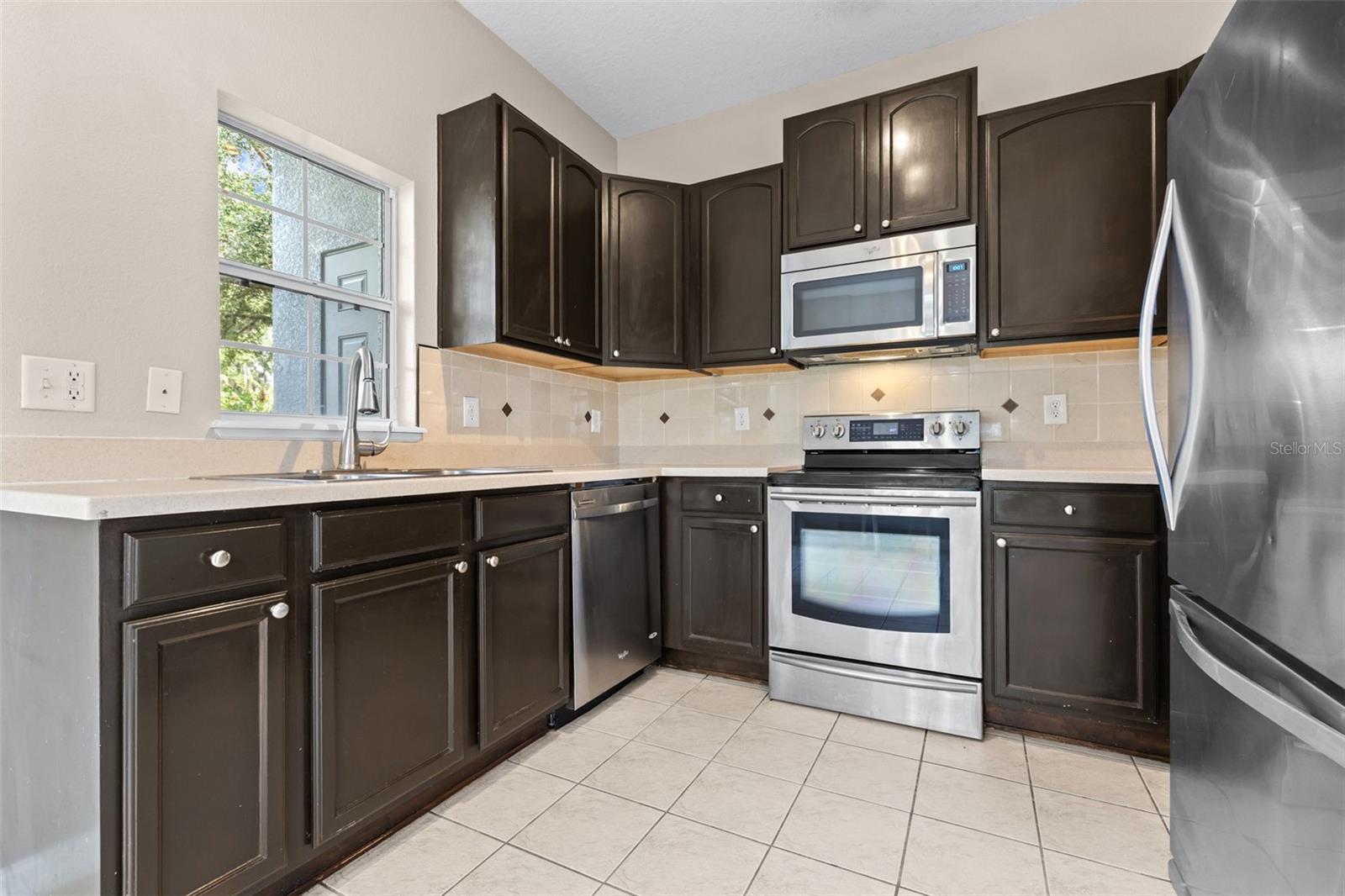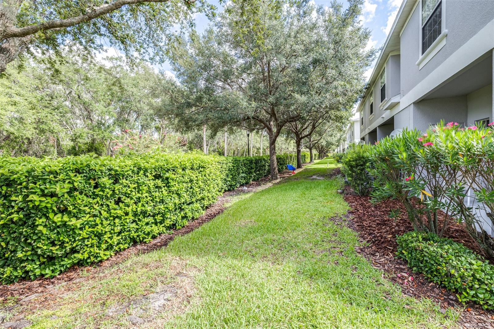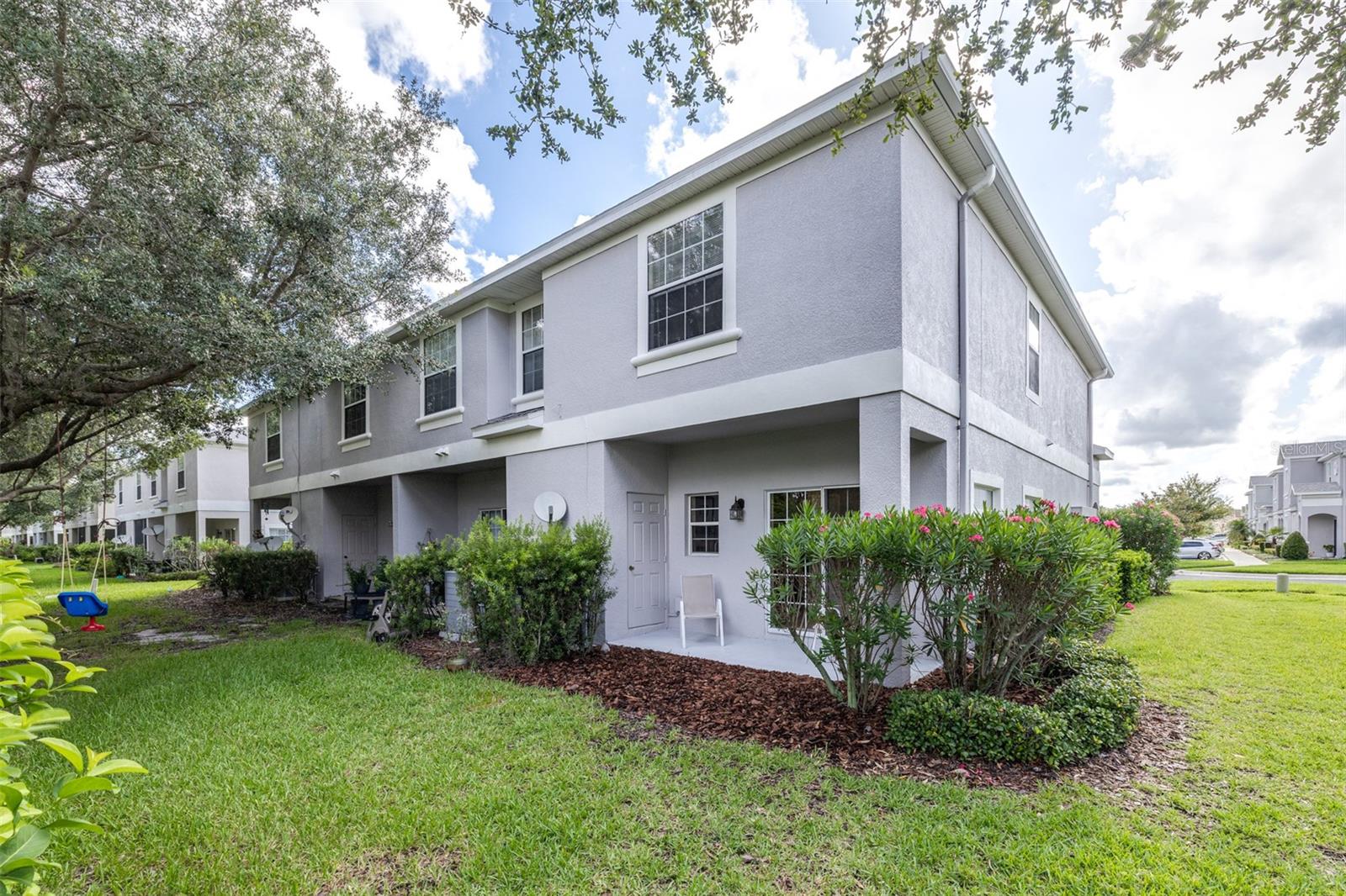 Looking for a maintenance-free home with 3 bedrooms – each with an ensuite private bathroom that comes with a home warranty? You found it! Perfect for a family or roommates, this townhome is located in an intimate, gated community tucked away, less than 5 minutes from Publix, shops, and restaurants, and just 10 minutes from I-4. A brand-new Roof, exterior paint, and HVAC system (all completed in late 2024/2025), fresh interior paint, and a keyless electronic door lock system, along with no carpet, make this a highly desirable home! This end-unit townhome is equipped with a wired alarm system. Luxury vinyl flooring or tile is found throughout. A back patio is large enough for outdoor cooking, dining, or relaxation. A storage shed off the patio provides extra space. The kitchen features a dedicated dining area, and the family room is spacious enough for gatherings. One bedroom and bathroom are downstairs. The primary bedroom and bathroom are located upstairs, along with the oversized second master suite and bathroom. Also upstairs is a landing area large enough for a desk or table, along with a laundry space that includes a full-size washer and dryer. This well-maintained community includes a pool, playground and recreation area at below-average HOA fees. Take a look and make this your next home!