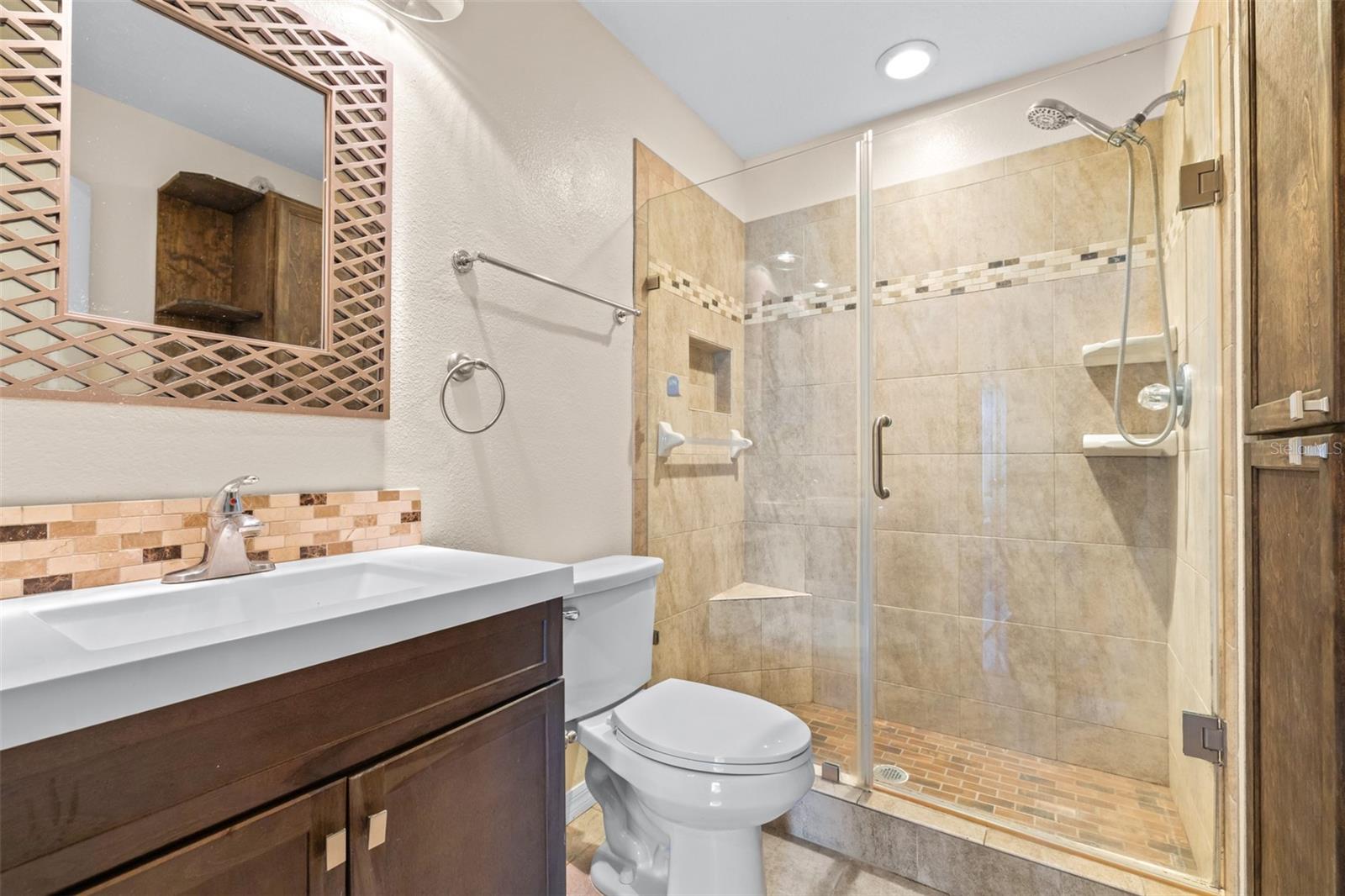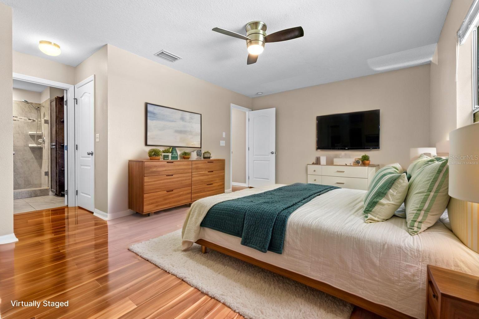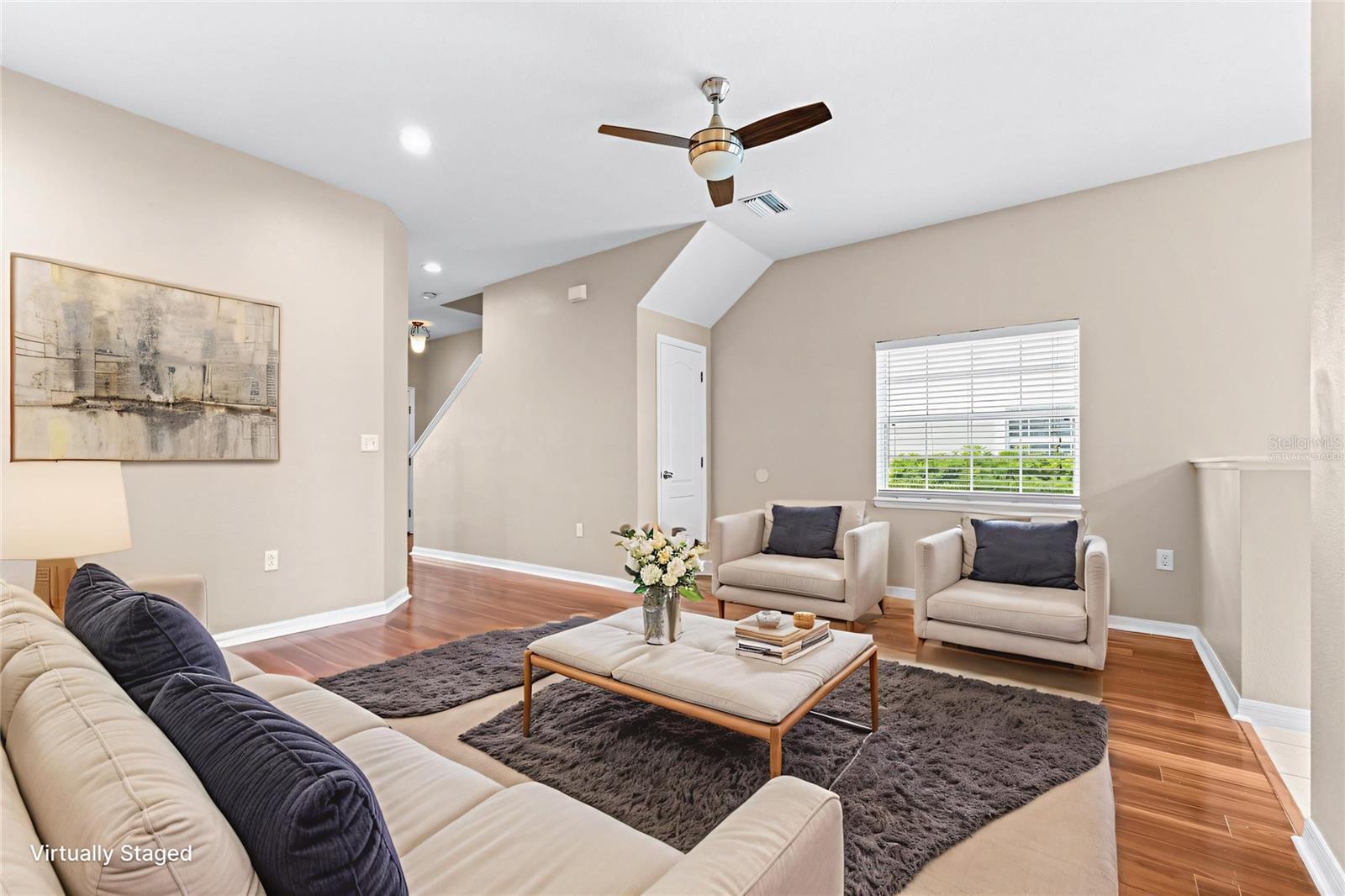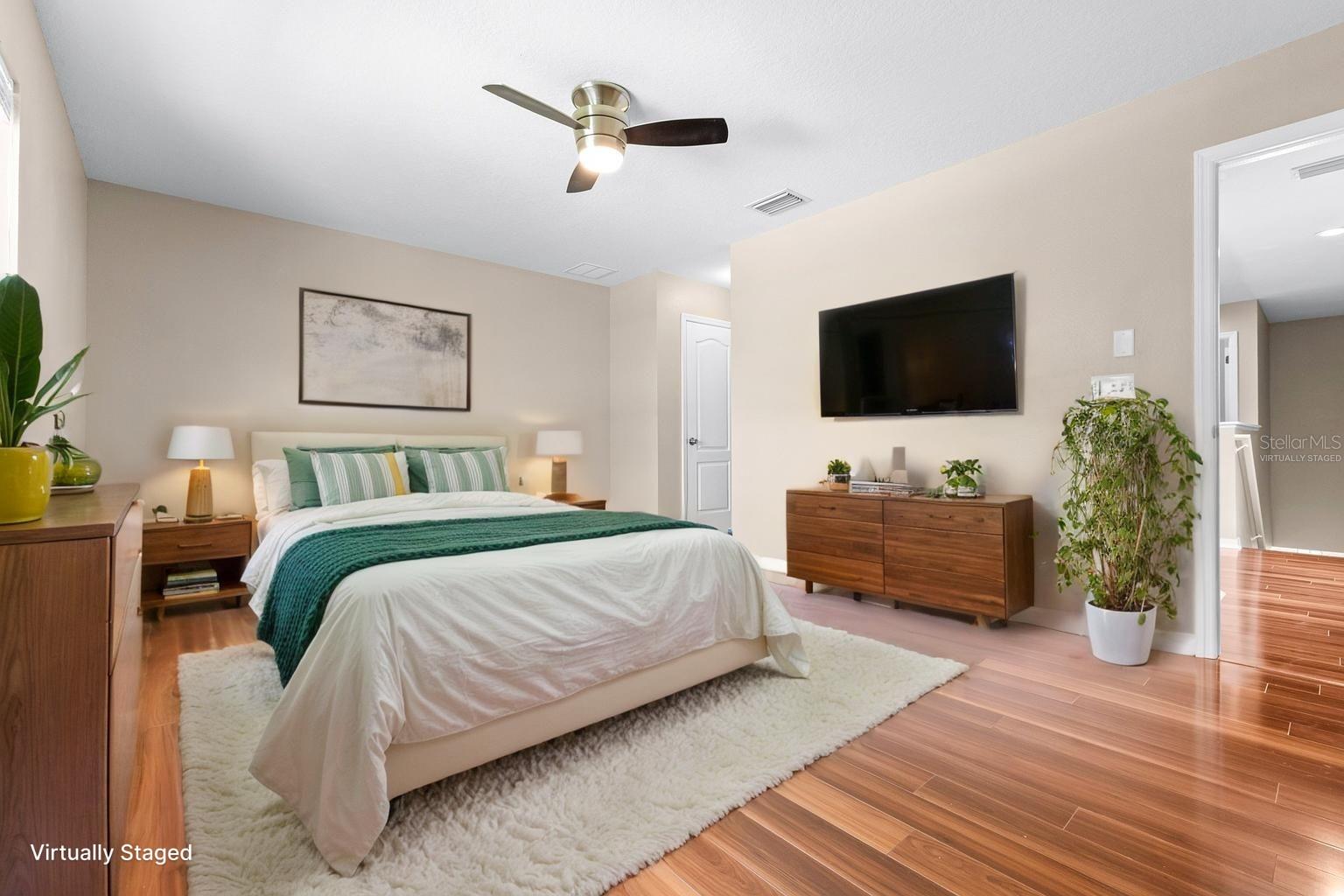 Looking for a maintenance-free home with 3 bedrooms – each with an ensuite private bathroom that comes with a home warranty? You found it! Perfect for a family or roommates, this townhome is located in an intimate, gated community tucked away, less than 5 minutes from Publix, shops, and restaurants, and just 10 minutes from I-4. A brand-new Roof, exterior paint, and HVAC system (all completed in late 2024/2025), fresh interior paint, and a keyless electronic door lock system, along with no carpet, make this a highly desirable home! This end-unit townhome is equipped with a wired alarm system. Luxury vinyl flooring or tile is found throughout. A back patio is large enough for outdoor cooking, dining, or relaxation. A storage shed off the patio provides extra space. The kitchen features a dedicated dining area, and the family room is spacious enough for gatherings. One bedroom and bathroom are downstairs. The primary bedroom and bathroom are located upstairs, along with the oversized second master suite and bathroom. Also upstairs is a landing area large enough for a desk or table, along with a laundry space that includes a full-size washer and dryer. This well-maintained community includes a pool, playground and recreation area at below-average HOA fees. Take a look and make this your next home!