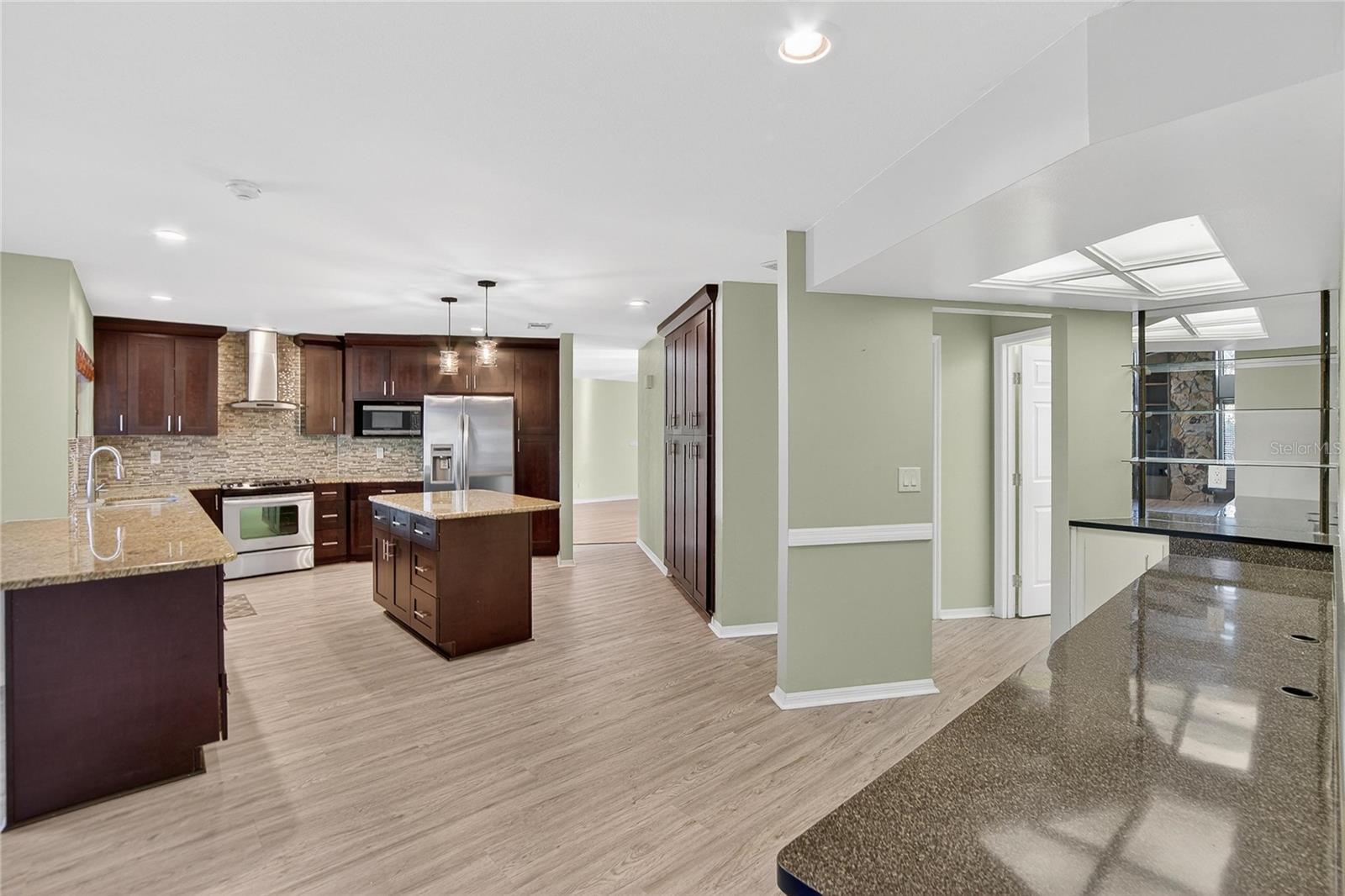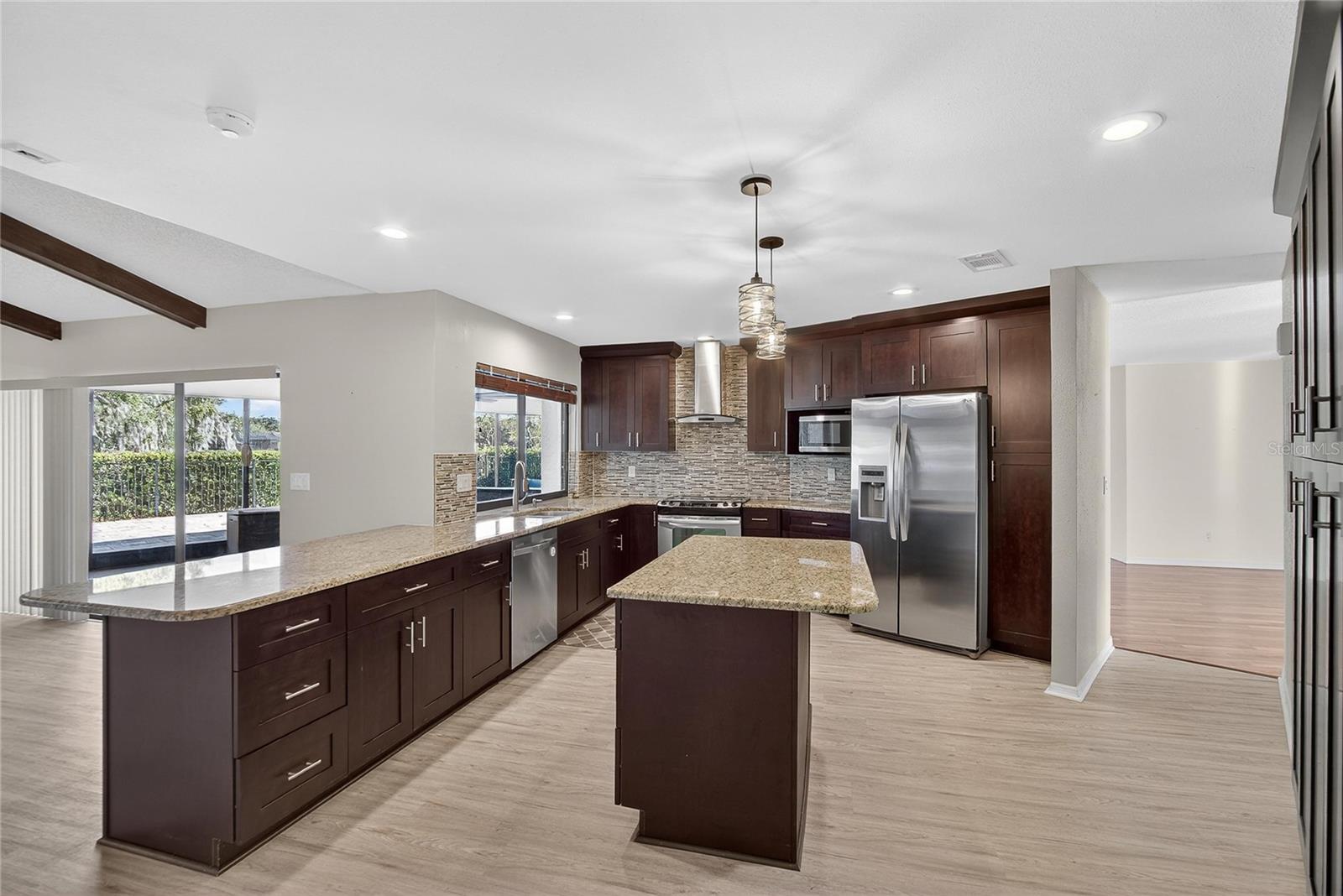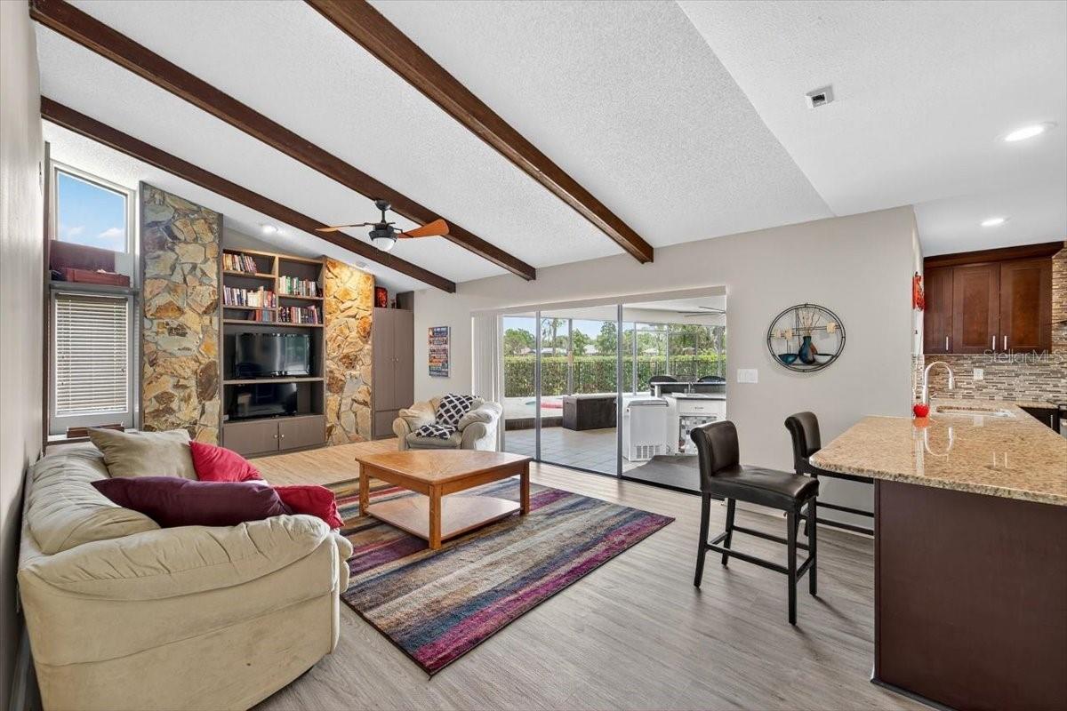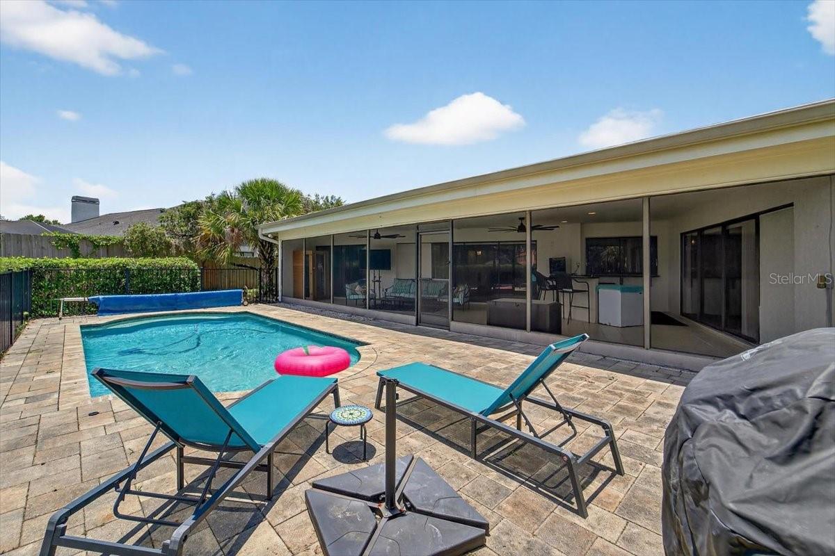BEAUTIFUL 3 BED (additional room with a closet that could be a 4th bedroom), 2.5 BATH (double master bath!), 2 CAR GARAGE, POOL HOME IN THE COMMUNITY OF WALDEN LAKE. This immaculately maintained home truly has it all. As you enter through the open foyer, the large family room encompasses the heart of the home with large pocket sliding glass doors (triple sliding glass doors) that open to the 500 sq ft screened in lanai that give a beautiful view of the pool. The primary bedroom, generous in size, features a secondary point of entry to the lanai, dual walk-in closets as well as a third closet (shoe closet) and even an attached dual full bath. One side boasts a large soaking tub, with intricate stone work surrounding and an entrance to a small secluded private lanai off the primary living space. The second part of the primary bath includes a generously sized walk-in shower, and also has access to a 12x11 multi-funational flex space. The open kitchen concept hosts a large center island, updated cabinetry and backsplash, as well as a very large floor ceiling pantry. The kitchen overlooks the formal living space that features beautiful stone work, wood beams on the vaulted ceiling and also has another set of pocket sliding glass doors that offer a third point of entry to that lanai. The split floor plan leaves the generously sized secondary bedrooms on the north of the home and they sit either side of a jack and jill full bath. Both bedrooms have full wall length 12' closets. In addition the home also features a humongous 500 sq ft laundry room, equipped with utility sink. The 40X15 covered lanai hosts an out door kitchen/bar as well as a large passthrough window from the kitchen. It also has oversized 72in fans, perfect for those hot days. The 12X24 open air pool was put in in 2017 and does have a solar pool cover. Some additional rooms and features do include a large formal dining room, a dry bar area in the kitchen and circle driveway. Some community features include walking trails, a dog park, lake with fishing opportunity, gated entrances, playground and more. This home is centrally located near major roadways that allow easy transportation to surrounding areas such as Tampa, Brandon and Lakeland.