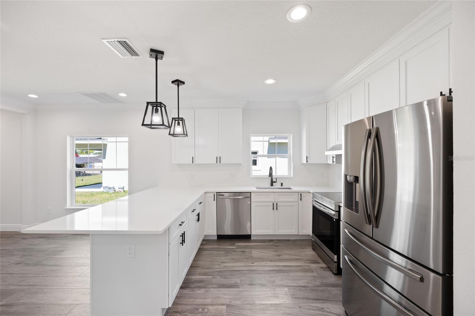 Discover modern luxury & style in this beautifully crafted 4-bedroom, 2.5-bathroom home with 1,983 sq. ft. (2588 total) of open living space in the heart of Plant City.; walking distance from of the famous Florida Strawberry Festival, just around the corner from Plant City’s Charming and vibrant downtown which offers bars, shops and restaurants and minutes away from a local winery, where you can enjoy wine tastings, live music, and local events. This New construction home offers high ceilings, crown molding and ceramic tile, planks that give the look of hardwood floors without the maintenance. The gourmet kitchen is a chef’s dream featuring quartz countertops with a deep modern farm style sink, all-wood shaker cabinets with plenty of space, stainless steel appliances. The oversized laundry room is complete with a deep wash sink & a window. The master suite is on the main level and offers a huge walk-in closet, master bath with a resort style walk-in shower & a door that opens to the large covered lanai in the back. Up the beautiful staircase are three more bedrooms each with oversized closets & ceiling fans. Enjoy Florida living at its finest your oversized covered lanai perfect for hosting & entertaining this backyard is the perfect spot for year-round enjoyment. Commuting is a breeze with close proximity to I-275, I-4, and other major highways, making downtown Lakeland or Tampa, theme parks or beaches just a short drive away. Did I mention NO HOA / NO CDD Fees & Rules – Freedom to Live your Life with No Restrictions