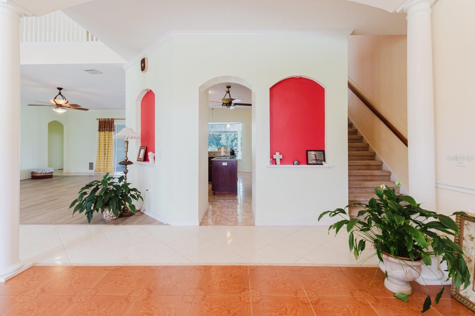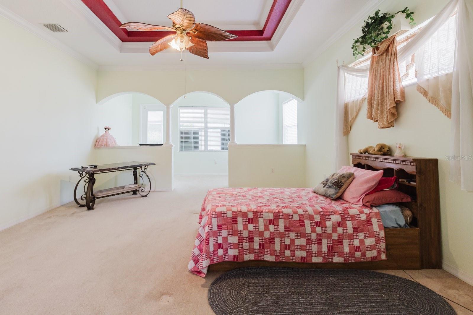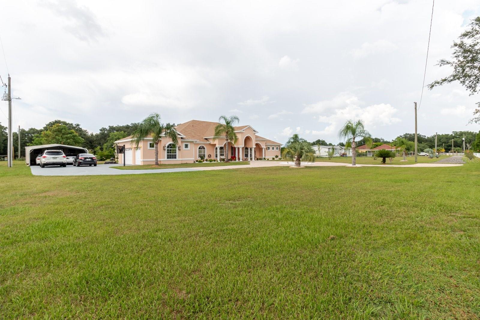 Welcome to this custom-built luxury estate on 1.43 acres with NO HOA or deed restrictions! Offering 5 bedrooms, 5 bathrooms, and over 4,428 sq. ft. of living space, this home combines elegance, comfort, and freedom. Step inside and you’ll be greeted by soaring ceilings, crown molding, custom tilework, and elegant chandeliers. The gourmet kitchen features granite countertops, custom cabinetry, and a built-in wine rack—perfect for entertaining. The spacious downstairs master suite includes custom walk-in closets, a private sitting area, and a spa-style bathroom with dual vanities, a jetted tub, and dual walk-in shower. Upstairs, enjoy a large entertainment room with a private balcony, plus an additional bedroom and full bath—ideal for guests or family. Outdoor living is just as impressive, with a screened-in covered patio, hot tub, fruit trees, and beautifully landscaped grounds. The property also features a detached garage/workshop, storage shed, 2-car carport, and a brand-new roof. Bring your toys—boats, RVs, ATVs—this property has room for it all, with no HOA restrictions! Conveniently located with easy access to both Tampa and Orlando, this home offers the perfect blend of luxury, space, and tranquility.
