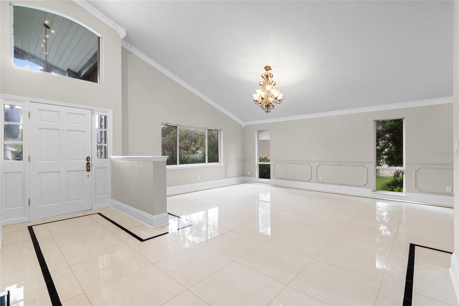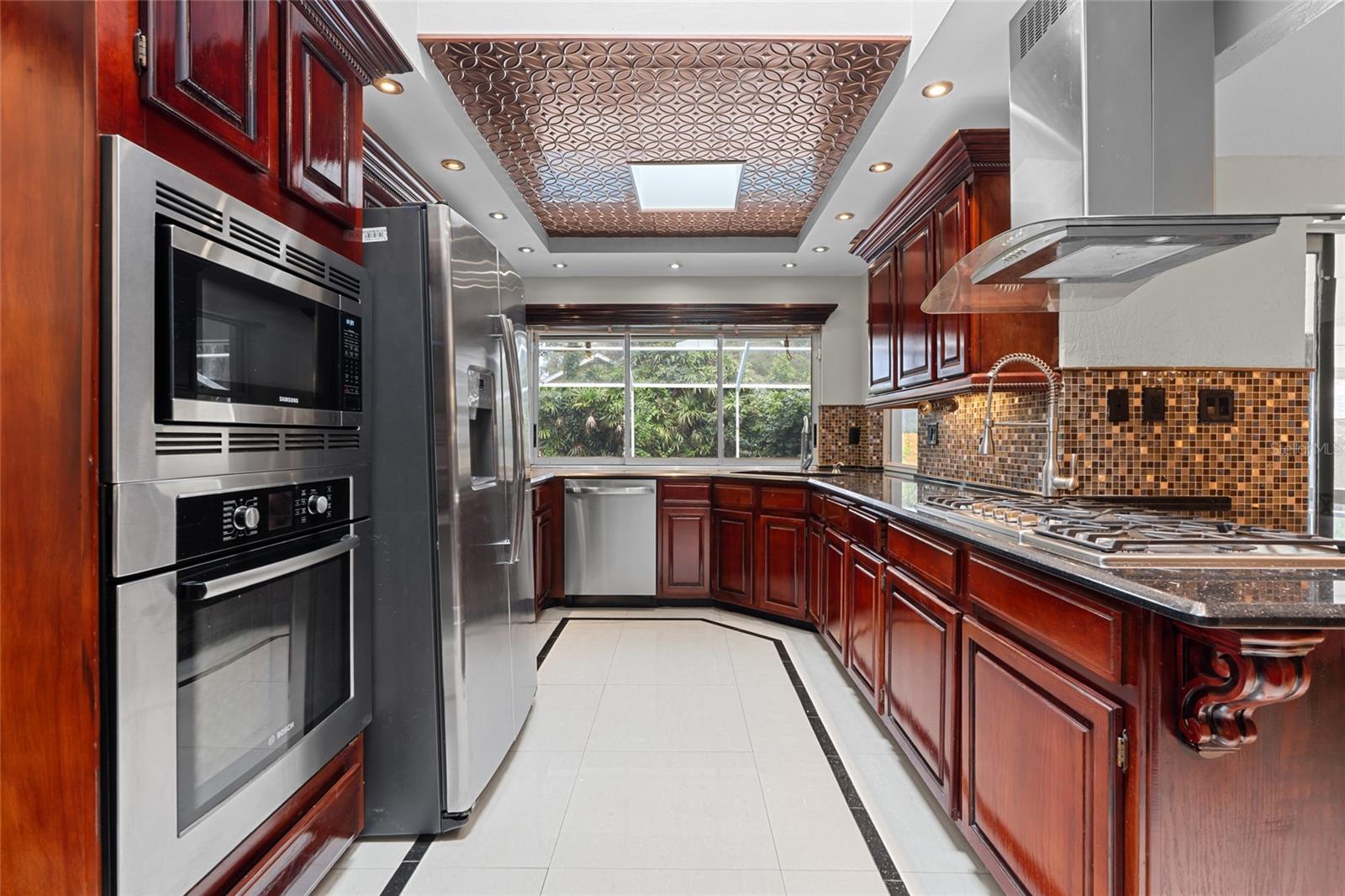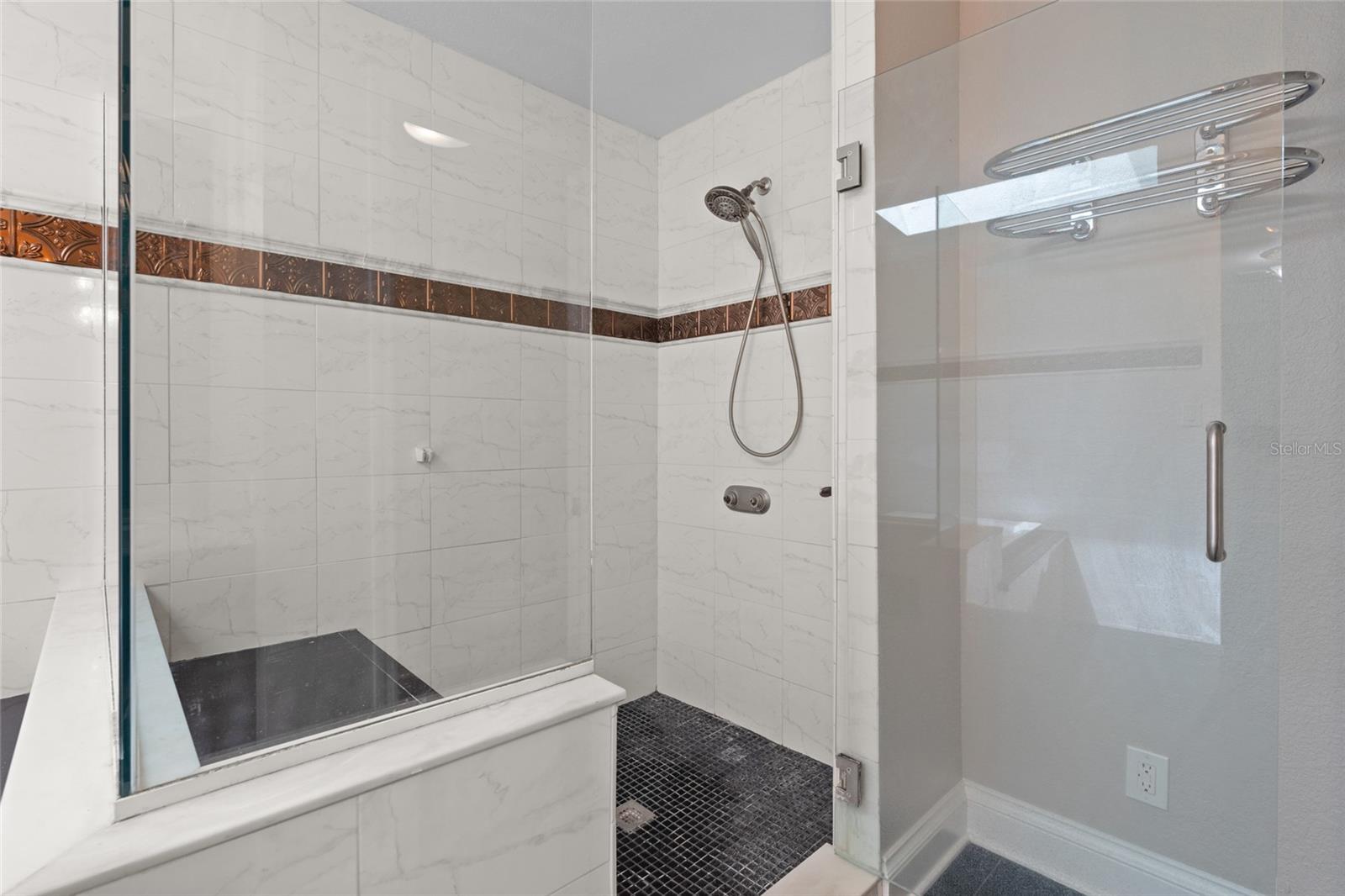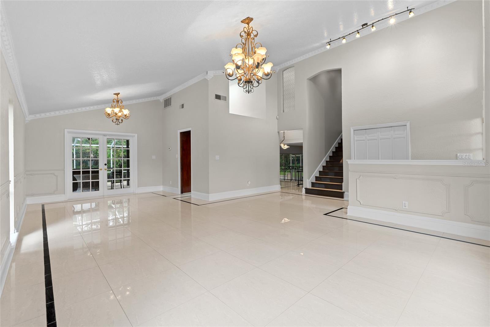 This BEAUTIFUL remodeled 3 bedroom, 3 full bath home on over a QUARTER ACRE is upgraded with gorgeous custom home accents. After stepping up the grand brick entry with high vaulted entry and entering in the foyer, the front door opens into a large, welcome and opening living area with vaulted ceilings, decorative crown molding, and custom tile flooring throughout. Through the dining area and into the kitchen, you will find an upgraded wood kitchen with stone counters, TWO built in pantry areas, a desk / work area, eat in area, and PASS THROUGH windows that flow through the window to the outdoor bar space. PERFECT for entertaining, this home even has a custom wet bar! On the other side of the kitchen you will find a second dining area that steps down into a second living area, featuring the custom wet bar, wood burning fireplace, and built in custom shelving. Off this area is one bedroom and full bathroom. Upstairs you find a HUGE primary suite with a separate office and RETRACTABLE half wall (with built in storage), outside upper deck area, a MASSIVE walk in closet with GORGEOUS built in closet organization, two vanities, a soaking tub, and a standing shower. Down the hallway you find the upstairs laundry room, and the third bedroom, with its own private bathroom, walk in closet, and office. Heading outside, the gorgeous paver patio has multiple levels with tons of room for patio furniture, a bar that connects to the kitchen via passthrough windows, a HUGE pool, and heated spa hot tub. This AMAZING custom home will not last long.
