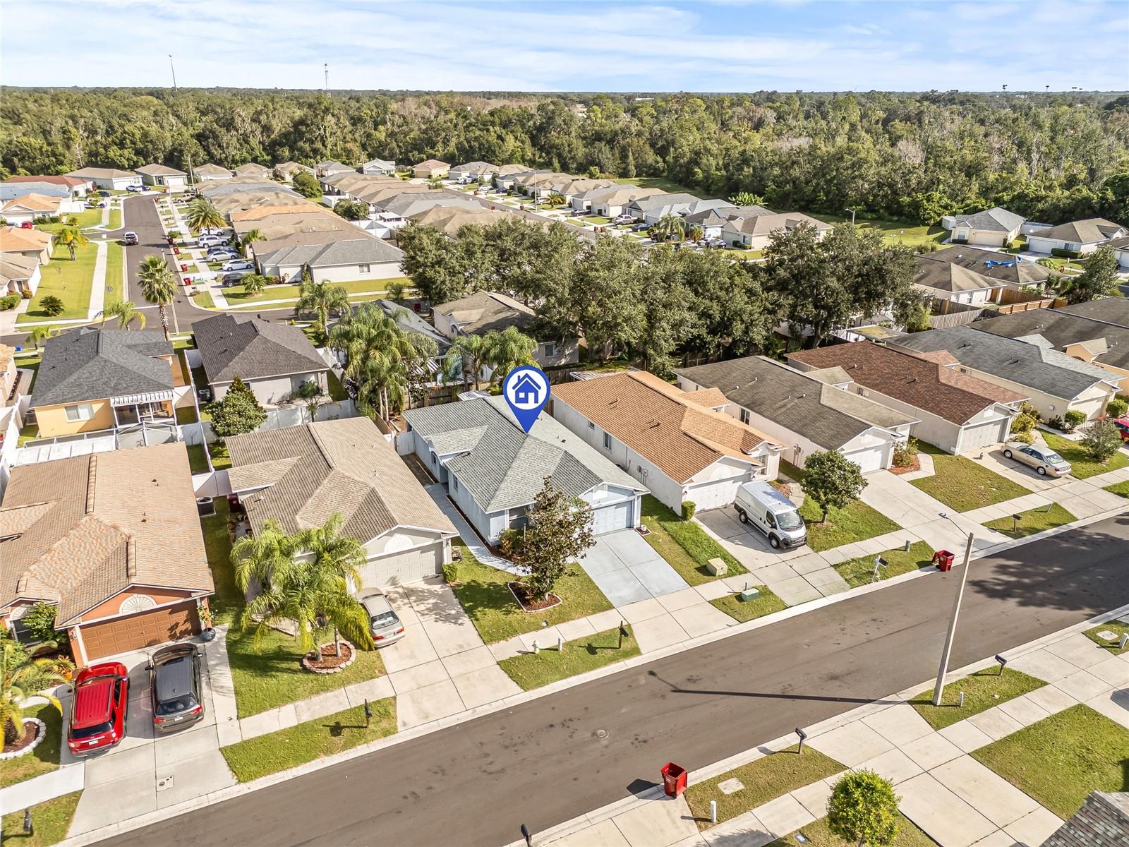 Welcome Home! This charming 3-bedroom, 2-bathroom, 2-car garage home perfectly blends comfort, convenience, and peace of mind with major updates already done for you! Enjoy a brand-new roof (installed March/April 2025) and a newer AC system (2–3 years old) move in without worrying about the big-ticket items. Inside, you’ll love the fresh interior paint, spacious kitchen with a breakfast bar, and bright, natural light throughout. The third bedroom, located near the front of the home with a bathroom nearby, makes a great guest room or private office. Step outside to your fully fenced backyard featuring a covered patio, perfect for relaxing or entertaining. There’s even a storage shed for all your tools and toys! The garage includes a remote-controlled privacy screen, ideal for enjoying the cooler evenings in comfort. With low HOA fees, no CDD, and thoughtful upgrades from the previous owner; new plumbing, updated electric panel, and a 2-year-old dishwasher, this home truly checks all the boxes. Nestled in an established neighborhood just minutes from shopping, dining, and I-4, this move-in-ready gem offers both convenience and value. Don’t miss your chance to make this house your home, schedule your showing today!
