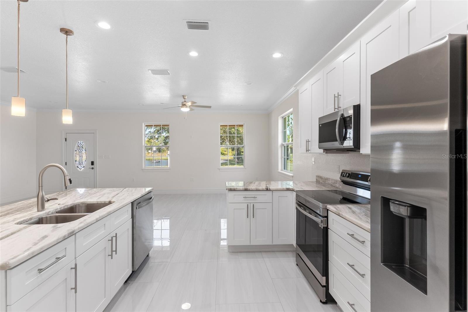 One or more photo(s) has been virtually staged. One or more photo(s) has been virtually staged. No HOA. Lake view. New construction. Corner lot. Opportunities like this don’t come around often in Plant City. This brand-new 3-bedroom, 2-bath home with 1,923 heated square feet sits on a desirable corner lot with peaceful lake views and direct access to walking and biking trails right outside your door, perfect for buyers craving space, privacy, and a connection to nature without sacrificing modern design. Inside, you’ll find crown molding throughout the main living areas and primary suite, creating a polished, upscale feel. The open-concept kitchen is designed for both everyday living and entertaining, featuring stainless steel appliances, sleek finishes, and a seamless flow into the living and dining spaces. The primary suite is a true retreat, highlighted by a spa-inspired rain shower and refined chrome and satin nickel fixtures. Every detail in this home was thoughtfully selected to balance comfort, functionality, and timeless style. Enjoy small-town charm with room to breathe, all while living in a modern, move-in-ready home, with no HOA restrictions. Schedule your private showing today and experience the lifestyle this home offers.