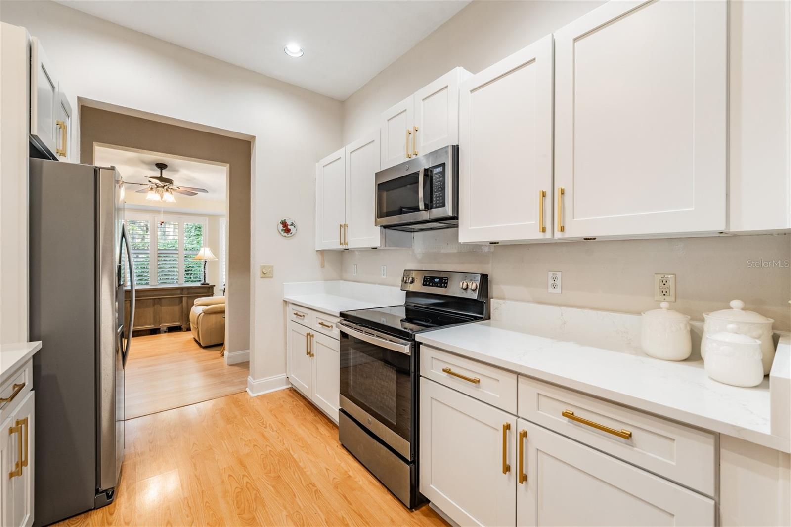 Welcome to Laurel Lake, a private gated enclave within Walden Lake offering maintenance-free living, beautifully landscaped grounds, and a peaceful wooded backdrop. This detached, single-story condo lives like a single-family home and has been extensively updated by the current owner. Since purchasing the property, the sellers have installed a new roof, added luxury vinyl plank flooring throughout the main living areas and bedrooms, fully remodeled the kitchen with white shaker cabinets, quartz countertops, stainless steel appliances, brass hardware, an upgraded faucet, and a deep farm sink, and added plantation shutters throughout the home. The kitchen renovation was just completed, and a small area under the microwave is scheduled to be painted and finished this weekend. The interior is bright and welcoming, with vaulted ceilings and natural light enhancing the open layout. The great room is spacious and flows seamlessly into the dining area and the beautifully updated kitchen. French doors lead to a versatile flex room—perfect for an office, den, or hobby space. The primary suite includes a walk-in closet, dual vanities, a soaking tub, and a separate shower, while the guest bedroom is served by a stylishly updated bath with granite counters and a walk-in tiled shower with grab bar.Additional features include inside laundry, a two-car garage, a tile roof, and no carpet anywhere in the home. Laurel Lake provides a low-maintenance lifestyle with lawn care, irrigation, private roads, exterior maintenance reserves, gated access, and professional management included. Residents also enjoy the amenities of Walden Lake, including miles of walking trails, park, playground, and lakefront pavillion. This move-in-ready, beautifully updated home offers modern finishes, peace of mind and with major improvements already completed. Homes in Laurel Lake rarely become available—don’t miss this opportunity.