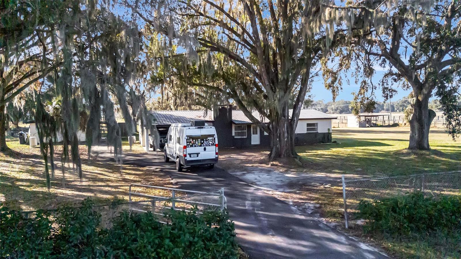 Set on just under an acre of usable, fully fenced land, this thoughtfully updated single-story home offers the rare combination of space, privacy, and modern comfort—without HOA restrictions. Ideal for buyers seeking room to spread out, store equipment, accommodate animals, or simply enjoy a quieter lifestyle, this property delivers flexibility that is increasingly hard to find. Inside, the home has been refreshed with updated flooring throughout, updated countertops, and modern appliances, creating a clean, welcoming interior that blends character with functionality. The master bath was recently renovated and includes stone-inspired tile flooring, marble in the shower, and a brand new vanity. The spacious living areas are filled with natural light and anchored by a wood-burning fireplace, offering both warmth and charm. A dedicated dining area and generously sized kitchen provide ample room for everyday living and entertaining alike. The split bedroom layout enhances privacy, while ceiling fans, neutral finishes, and thoughtful updates make the home move-in ready. Major systems are serviced by central air and heat, with the home constructed of durable block and concrete. A metal roof adds long-term value and peace of mind. Outside is where this property truly shines. The expansive lot offers endless possibilities—gardening, outdoor entertaining, recreational vehicles, boats, trailers, or future expansion. The current owners have a chicken coop and separately fenced dog yard. Mature trees provide shade and character, while multiple outbuildings and storage areas add practical functionality. A carport, extended driveway, and ample open parking accommodate multiple vehicles with ease. The property is serviced by well and septic, offering independence from utility costs. Located in an established rural-residential corridor, the home provides the perfect balance of privacy and convenience. Enjoy quick access to major roadways, shopping, dining, schools, and everyday necessities, while still benefiting from open surroundings and a relaxed pace of living. Zoned for desirable local schools and situated in a non-flood zone, this property offers peace of mind for homeowners and investors alike. Whether you’re looking for a primary residence with land, a multigenerational living option, a lifestyle property, or a long-term investment, this home presents a unique opportunity to secure space, flexibility, and value in a growing area. Properties offering this combination of acreage, condition, and location are increasingly rare—schedule your showing and experience the potential firsthand.