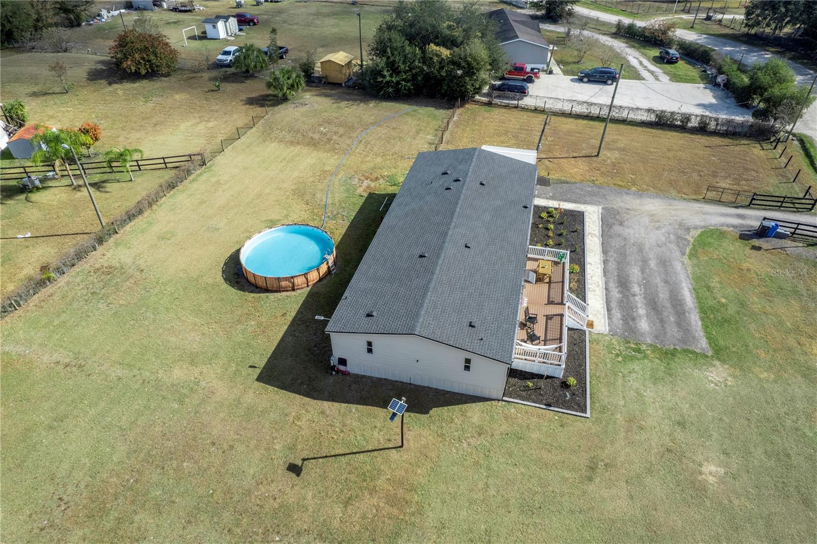 No HOA, No CDD!! Welcome to this beautifully updated 4-bedroom, 3-bath manufactured home, offering an impressive 2,176 sq. ft. of living space on a generous 0.89-acre corner lot. With room to spread out both indoors and out, this property is perfect for those seeking comfort, privacy, and modern upgrades. Step inside to find a bright, open floor plan with spacious living areas, ideal for entertaining or enjoying quiet family time. The home features stainless steel appliances, giving the kitchen a fresh and functional feel for everyday cooking or hosting gatherings. Major updates provide peace of mind, including a newer roof, AC and water heater all (2023), ensuring efficiency and durability for years to come. Outside, the fully fenced-in yard offers plenty of space for pets, gardening, or outdoor fun with 2 gated entrances to accommodate boats, RV'S or outdoor toys. Enjoy summers by the above-ground pool, perfect for relaxing and cooling off. The large corner lot adds extra privacy, convenience, and curb appeal. Move-in ready and packed with value, this home is perfect for anyone seeking space, comfort, and modern updates—all in one beautiful property. Don’t miss your chance to make it yours!